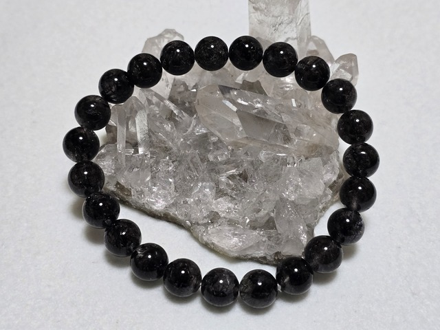 8.5㎜のブラックルチルクォーツのブレスレットです(高品質)。 内径は、約16㎝です。 ブラックルチルは数ある金運アップの石の中でも、仕事やビジネスで金運アップを図るのに適している石です。勝負に勝つという意味合いがある石になりますので、仕事を頑張り誰よりも稼ぎたいという強い気持ちに力を貸してくれるはずです。ブラックルチルを持つことで、心を乱していた余計な考えが浮かばなくなり、自分のやるべき事に集中できるようになると言われています。また集中力が高まると自分をしっかりと持つことが出来るようになるので、不安や心配事を抑え、常に冷静に物事を判断できるようになってきます。他人の意見に流されず自分の意思で行動できるように自信をつけたい方は身につけてみてはいかがでしょうか。特に営業力や交渉力を必要としているビジネスマンには強い味方になってくれる石で、ここ一番での能力を最大限に高め、営業力や交渉力をアップさせ、自分のペースで有利に話を進める事が出来るようになるかもしれません。黒色の為、男性的のようにも見えますが、最近では、夢を追う女性や仕事でその能力を発揮したいと考える多くの女性にも身につけられています。目標を達成するために今の自分より、もっと成長したいと考える、上昇志向のある方にオススメの石と言えます。