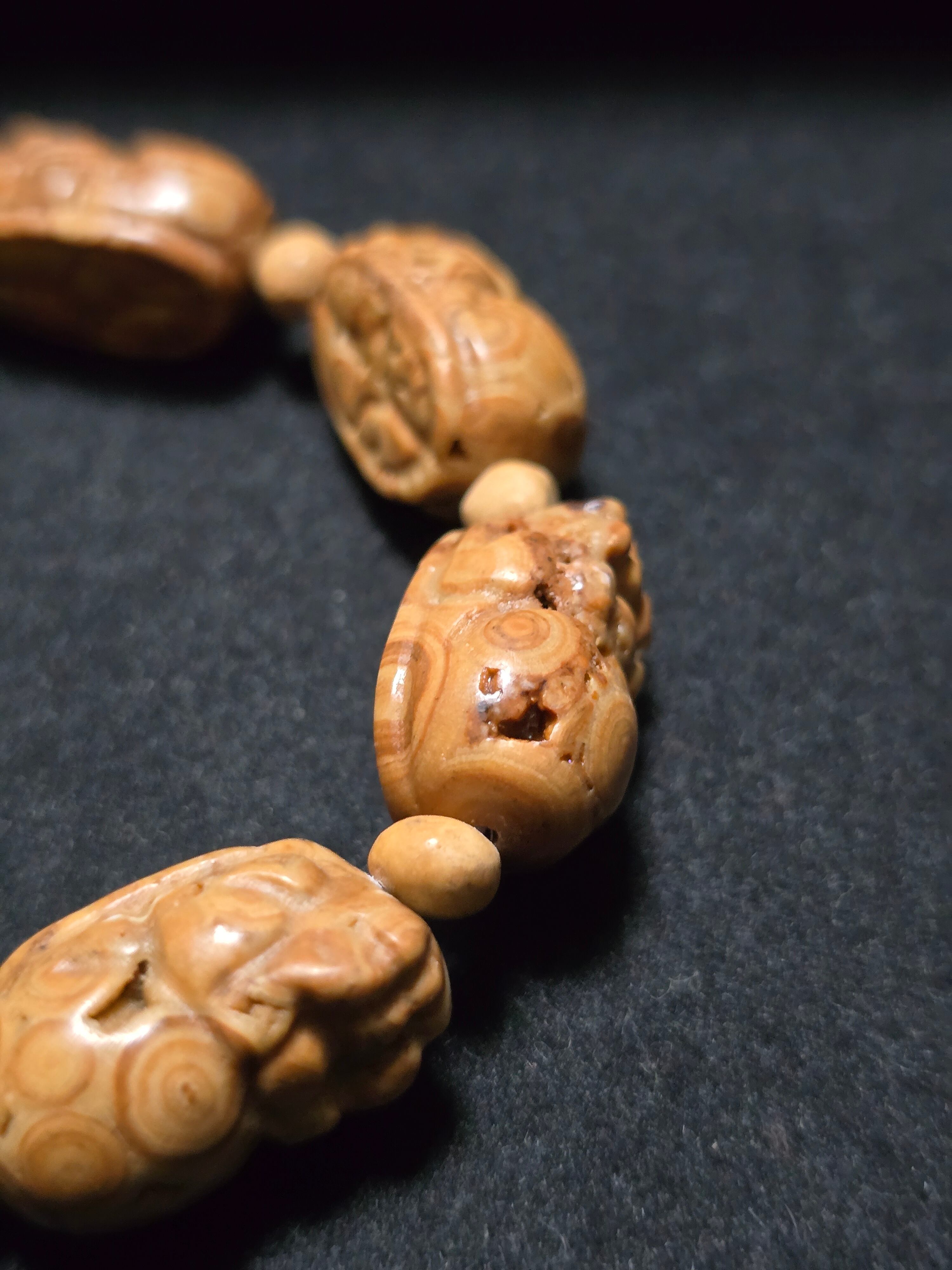 「龍が住まう神殿に繋がる入口」といわれる洞穴、 龍宮洞穴の石(龍宮舎利石 りゅうぐうしゃりいし)です。 現在は採取禁止により高値で取引されるこの石は、仏教信仰最強クラスの護符の 役割を果たします。 タイでは位の高い僧侶達が生涯行ってきた修行の集大成として龍宮洞穴で経を唱え瞑想を行い、やがて悟りの境地に至り円寂します。 円寂とは成仏するということで、修行の旅をここで終え、お釈迦様の最高位の弟子として加えられることを意味します。 円寂された僧侶たちは石像等に彫刻され、タイ仏教界において信仰の対象とされます。 寺院などに献上し祀られたり、 この 石を手に入れた家は 「絶対に手放してはいけない」と代々の家宝にしたりします。
