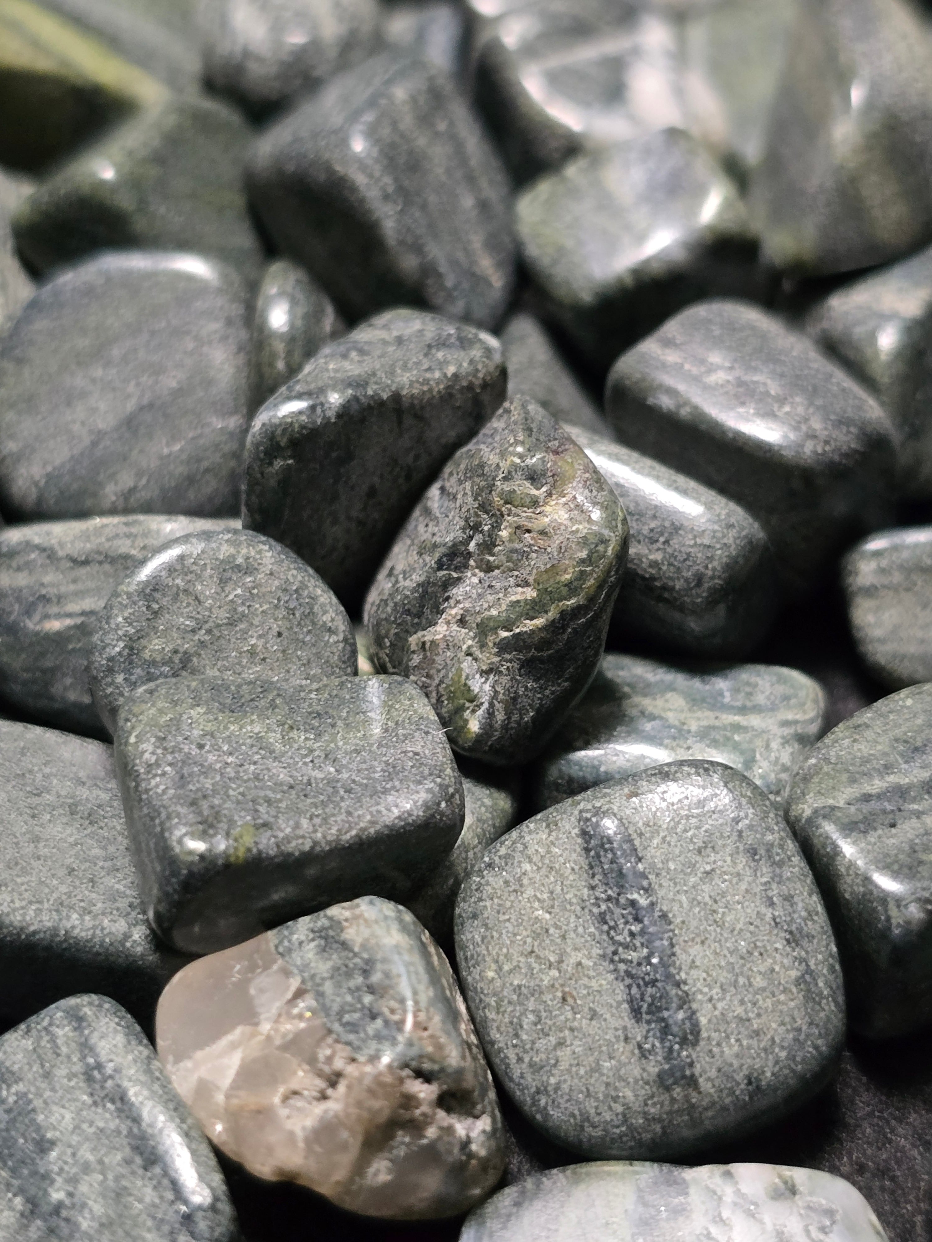 群馬県の深い谷にある石で、緑色の原石には白いさざ波の様な模様が入っているのが特徴です。春や夏など植物が茂るシーズンには、緑の石と植物の緑が川に映り込み、この渓谷は緑一色の世界になります。自然との調和をとり、持つ人に活力を与えてくれると言われ、記憶力や集中力を高めてくれる石ともされています。