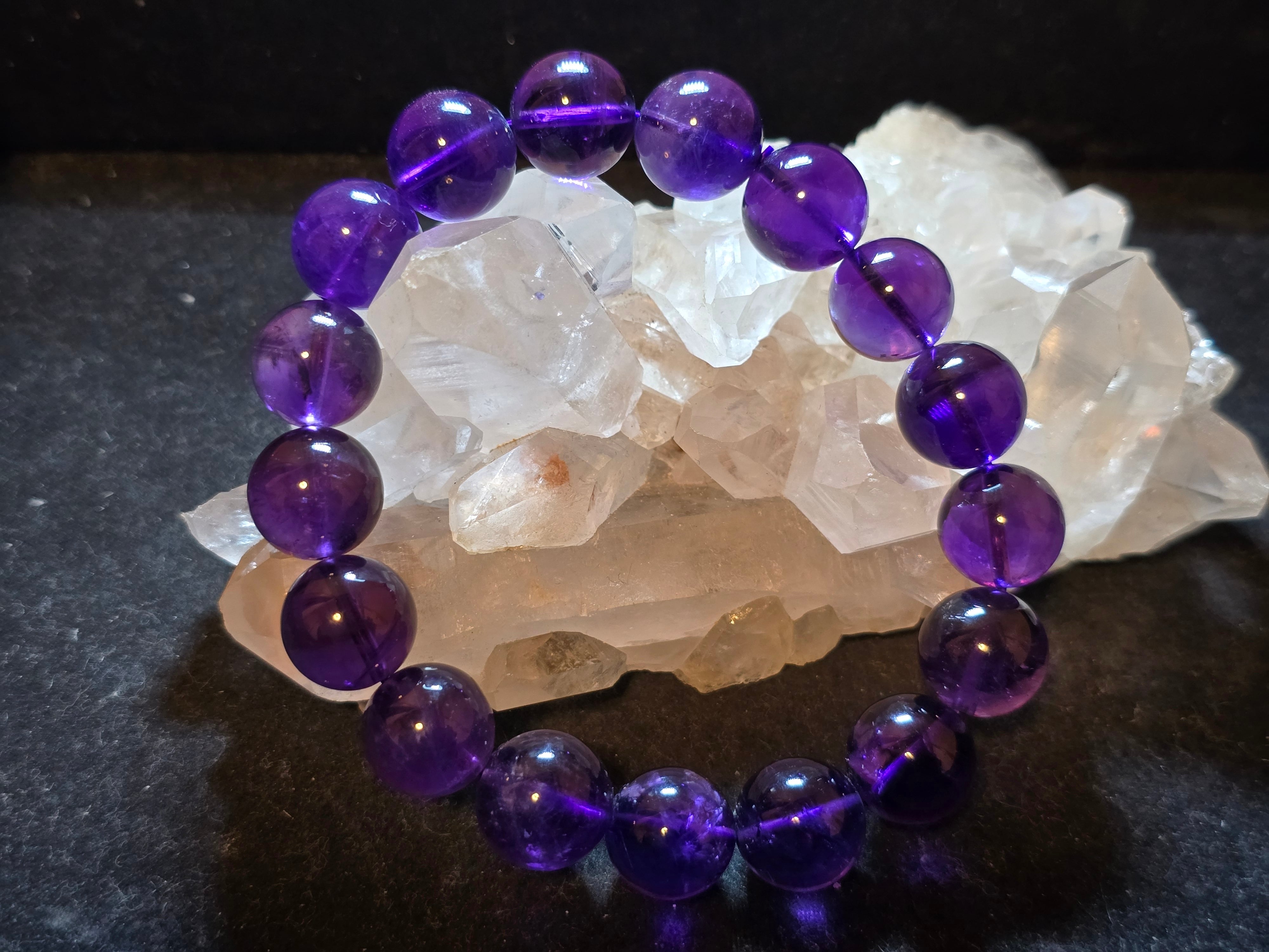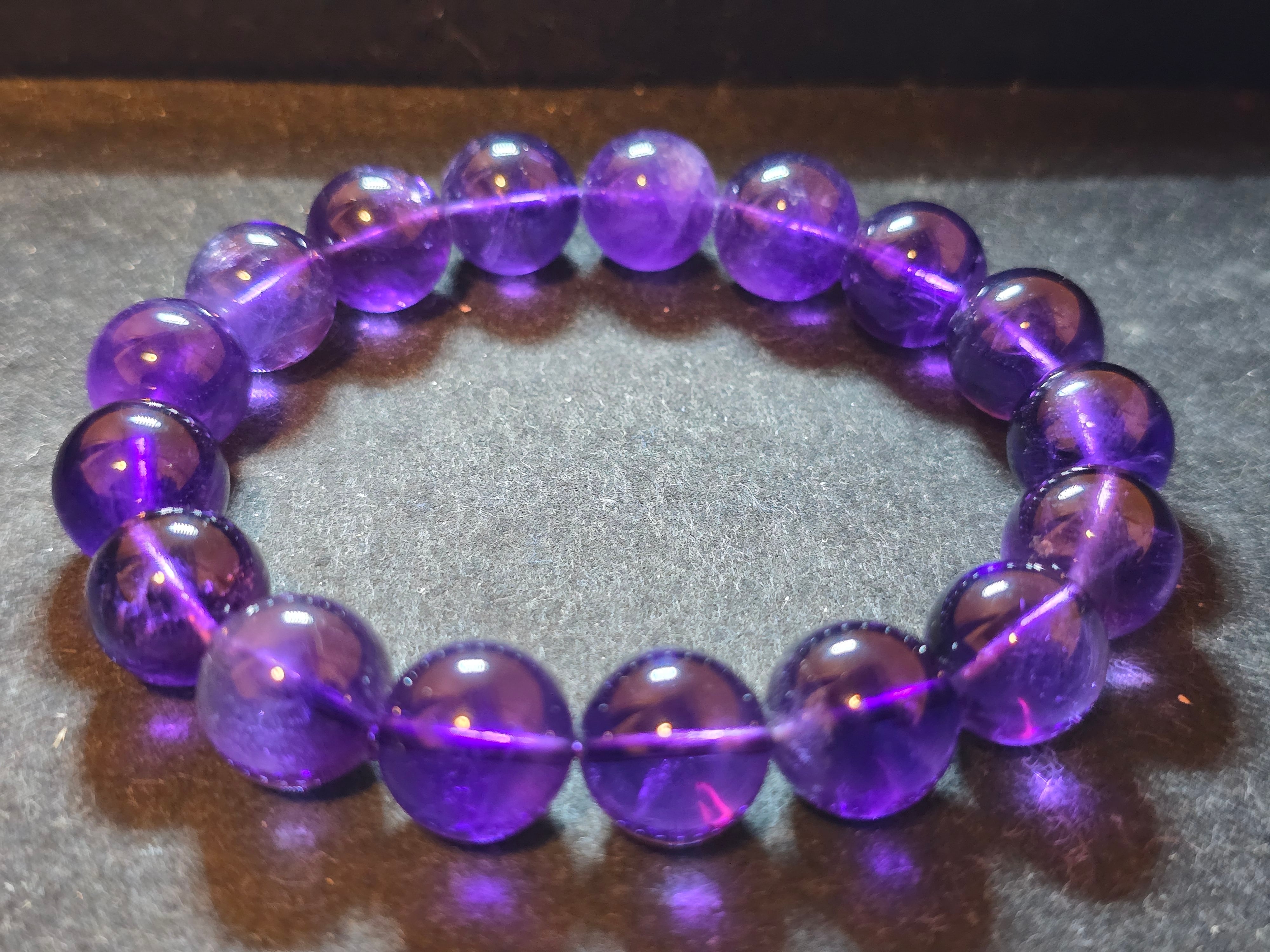 また、宗教的・霊的権威の高い色として、キリスト教の司教や位の高い僧侶、皇族などが好んで身につけたそうです。紫色は「情熱」を象徴する赤と「冷静」を象徴する青を混ぜる事によって作られます。アメジストは心に平穏をもたらし、安らぎと癒しをもたらしてくれると言われています。
