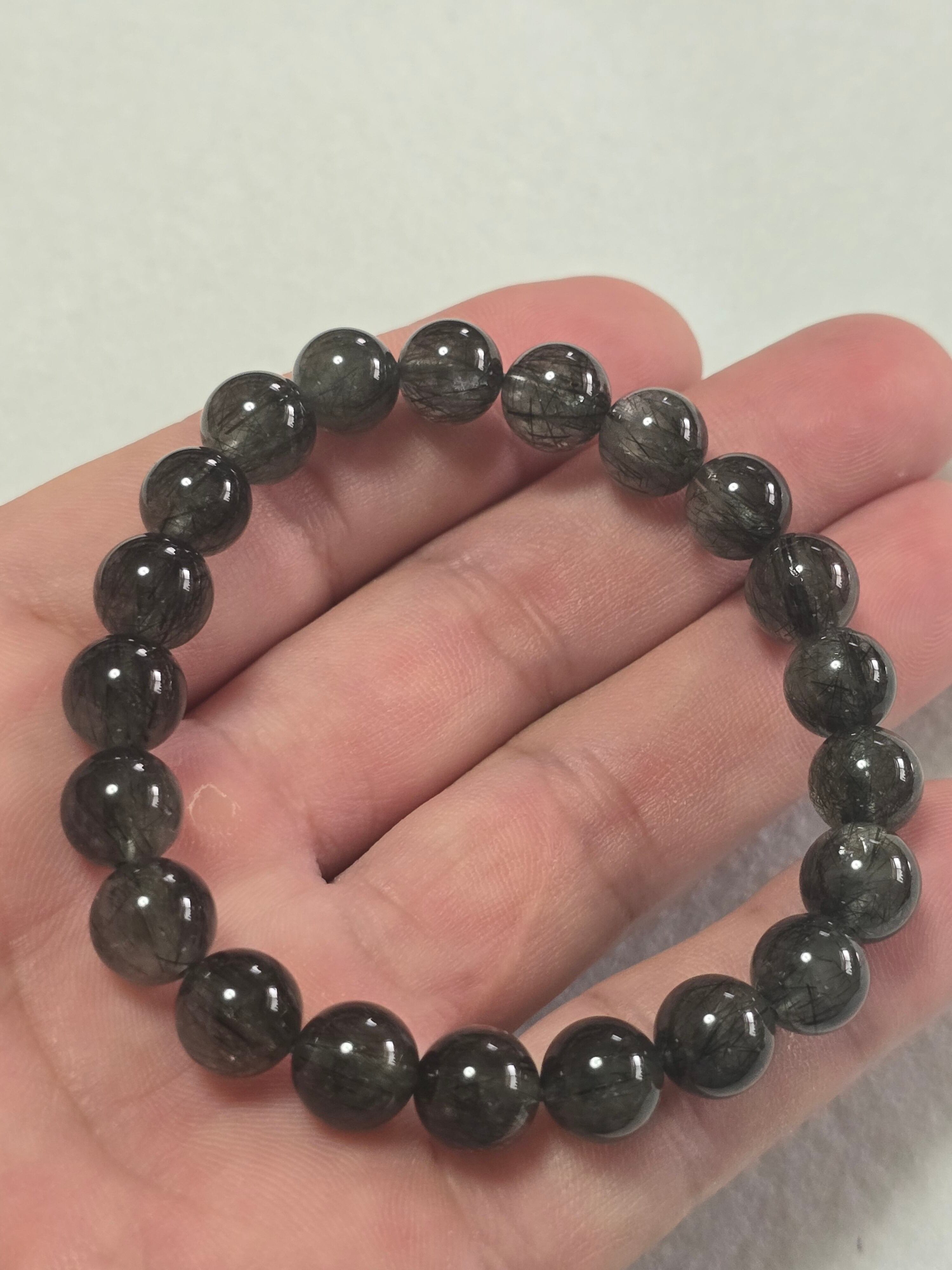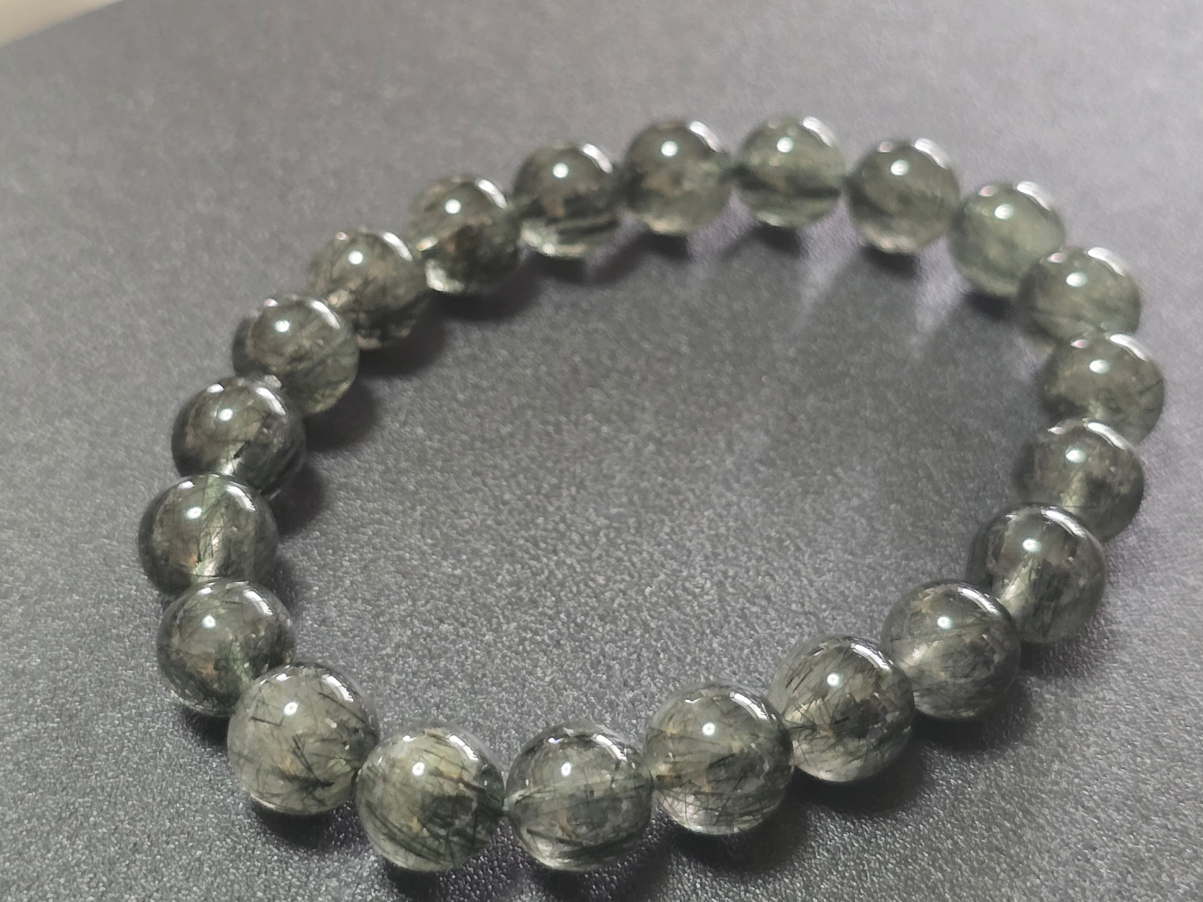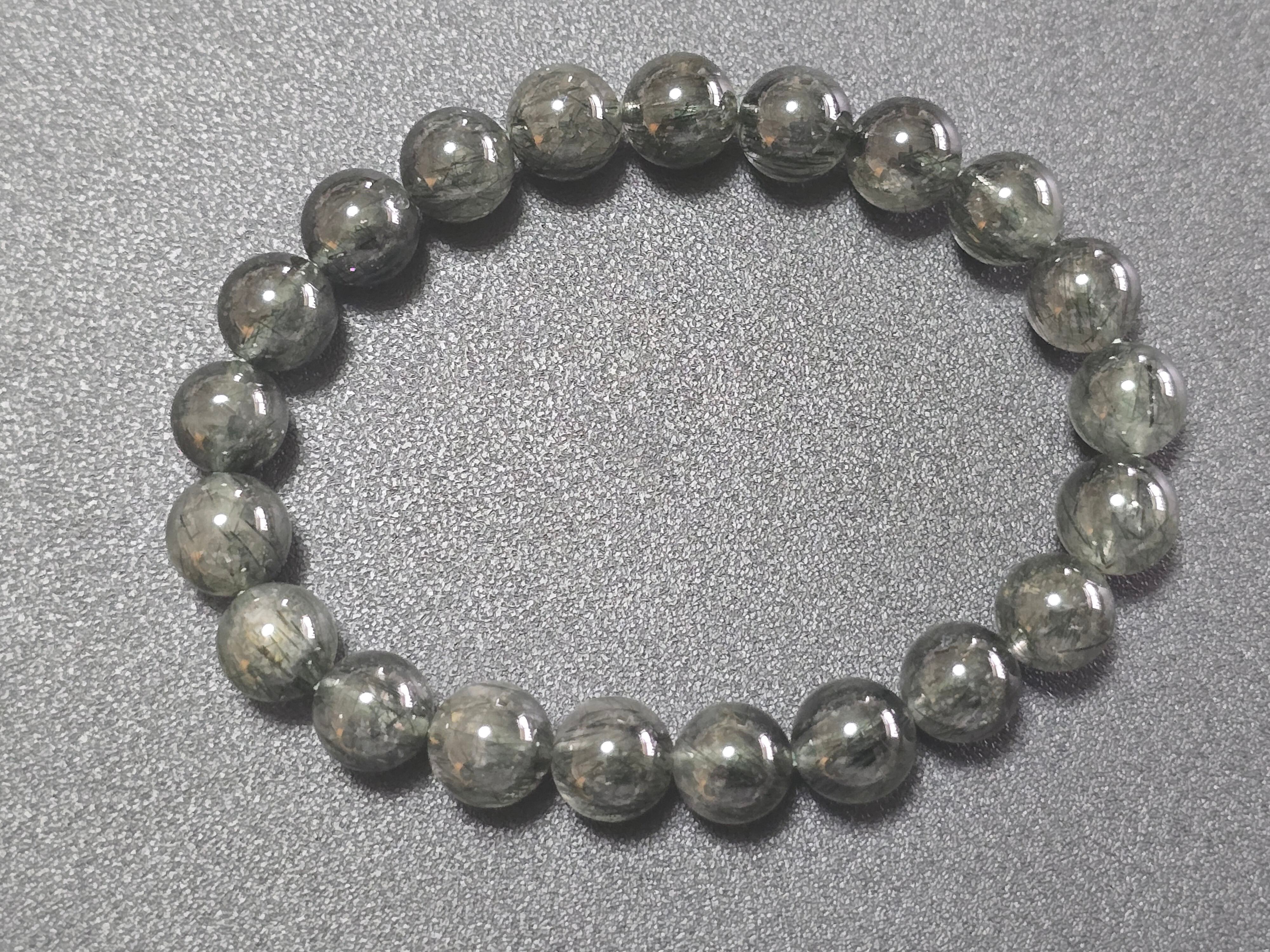 9㎜のグリーンルチルクォーツのブレスレットです。