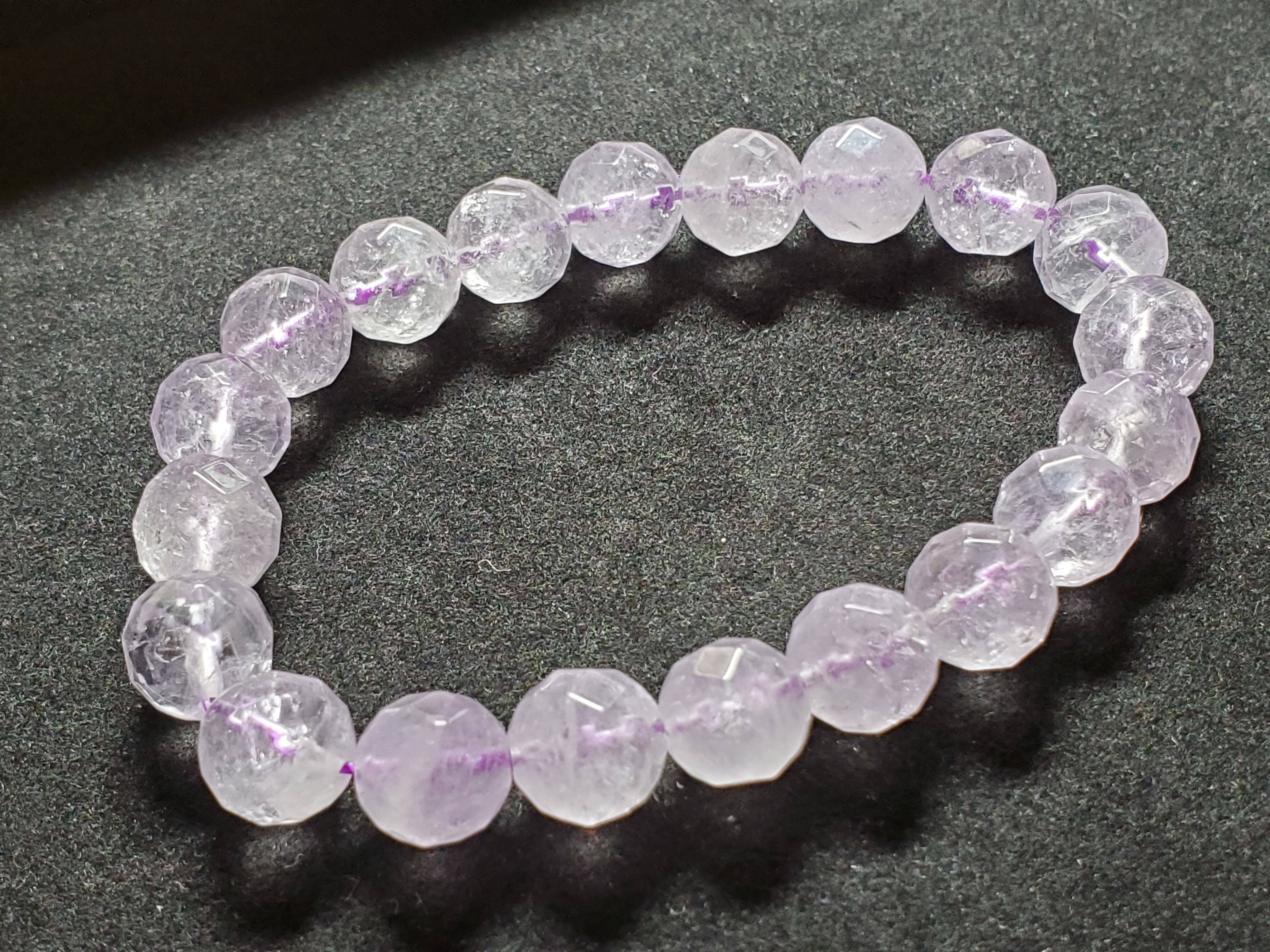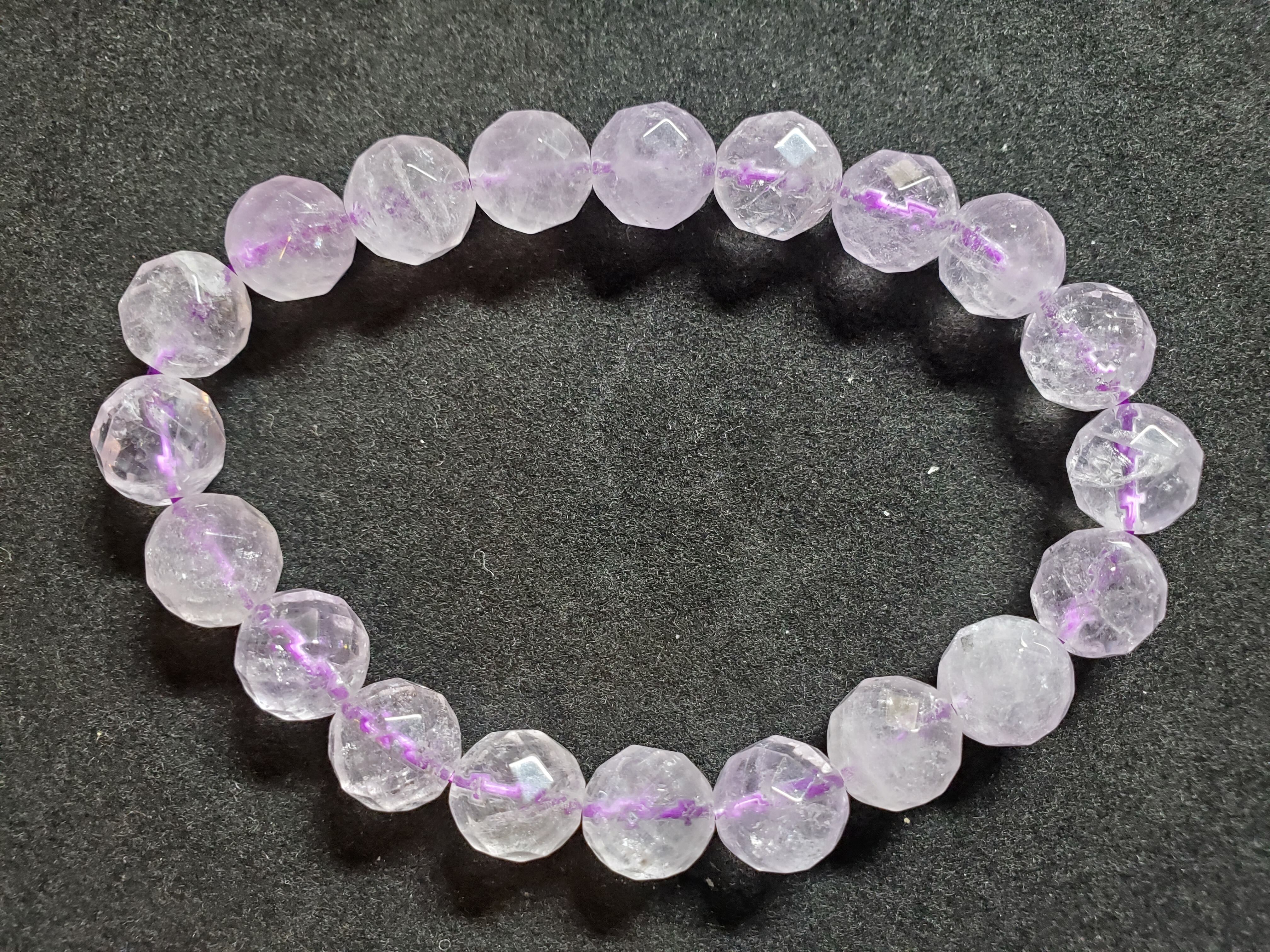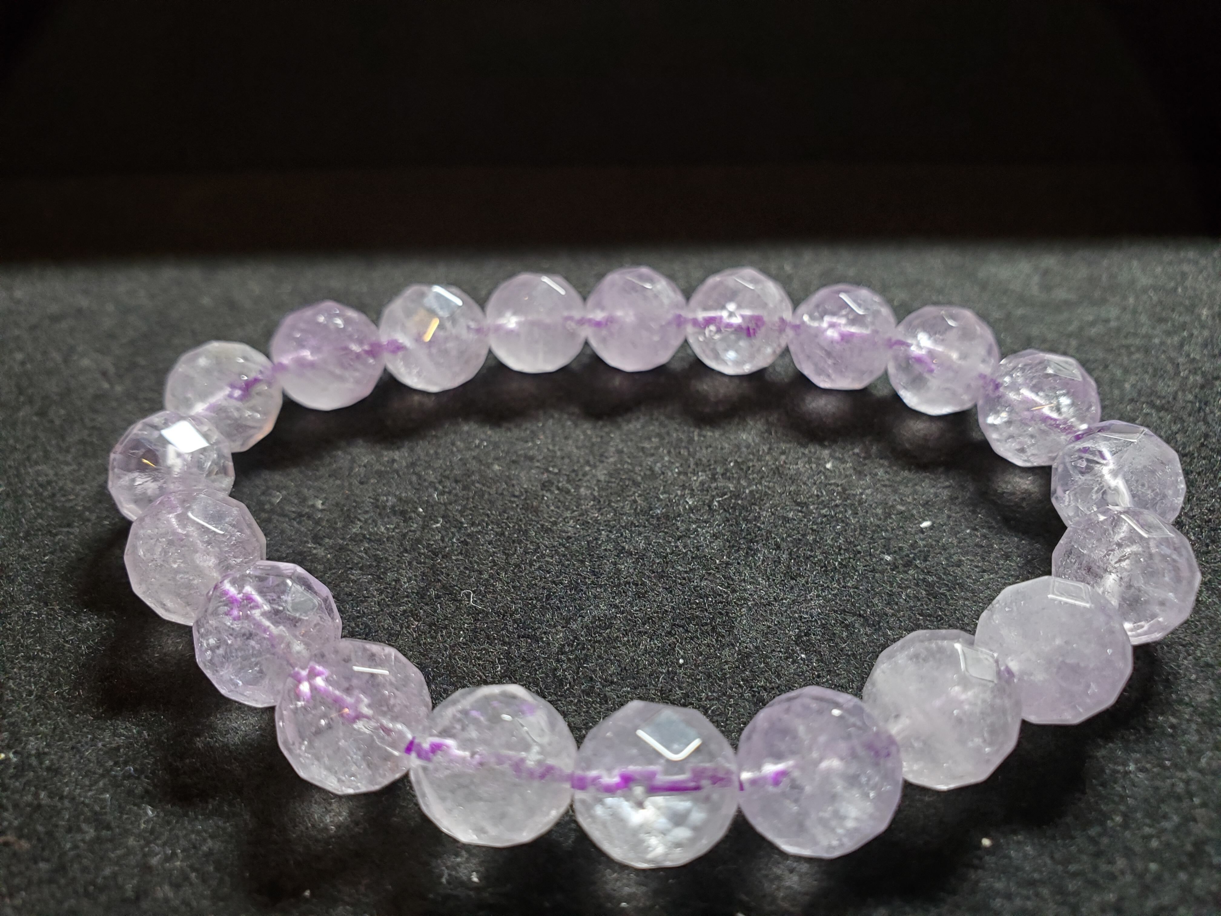 10㎜の64面カットのラベンダーアメジストのブレスレットです。内径は約16.5cmです。