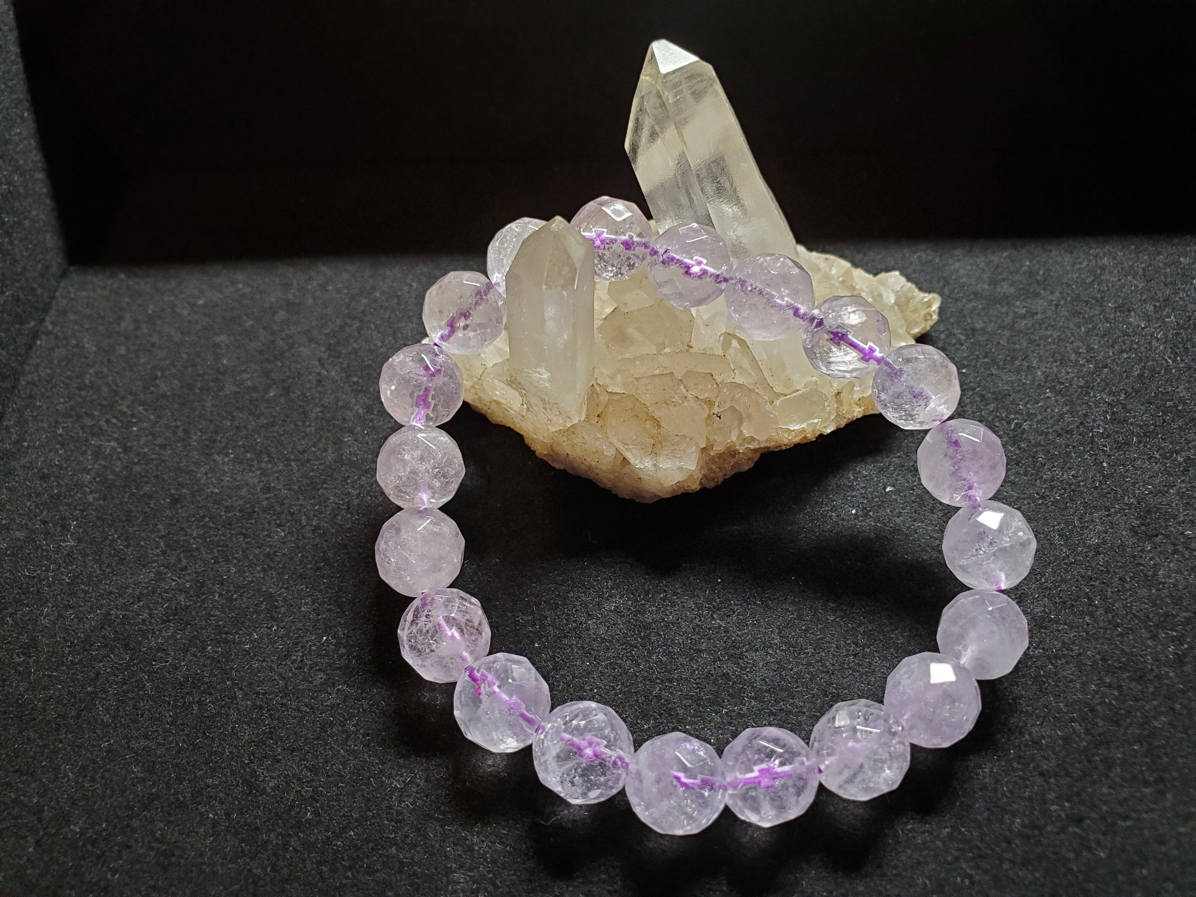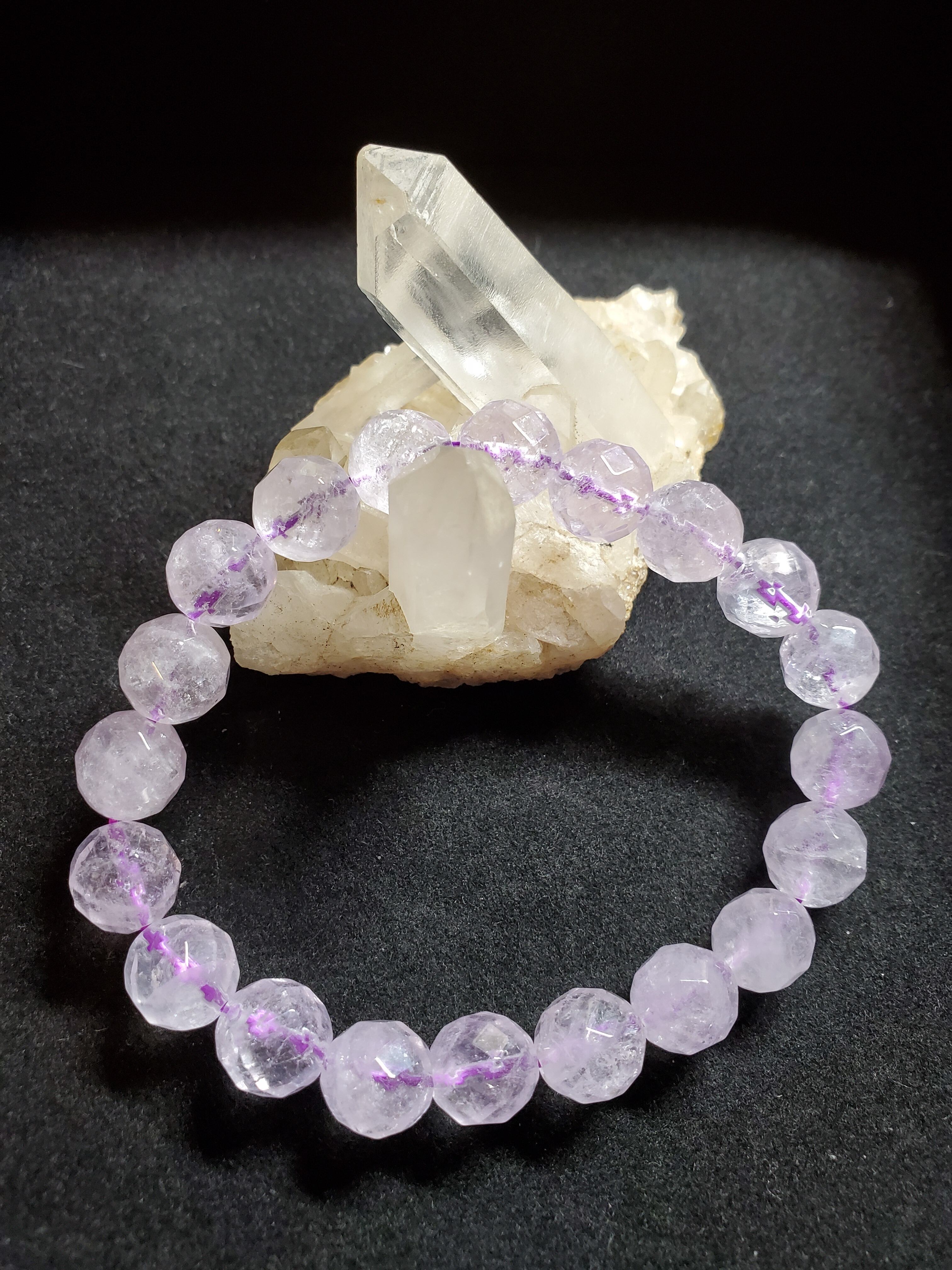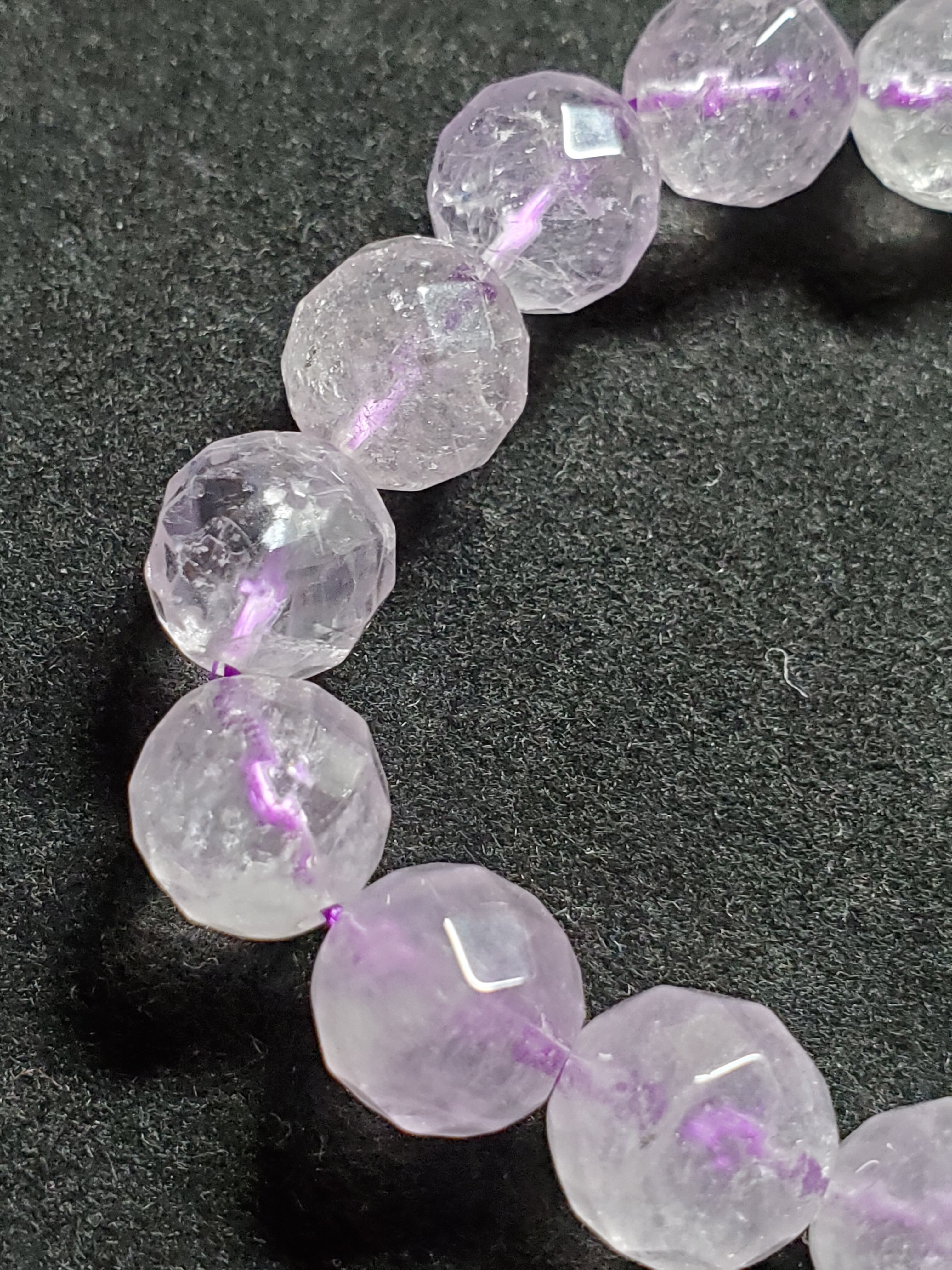 10㎜の64面カットのラベンダーアメジストのブレスレットです。内径は約16.5cmです。