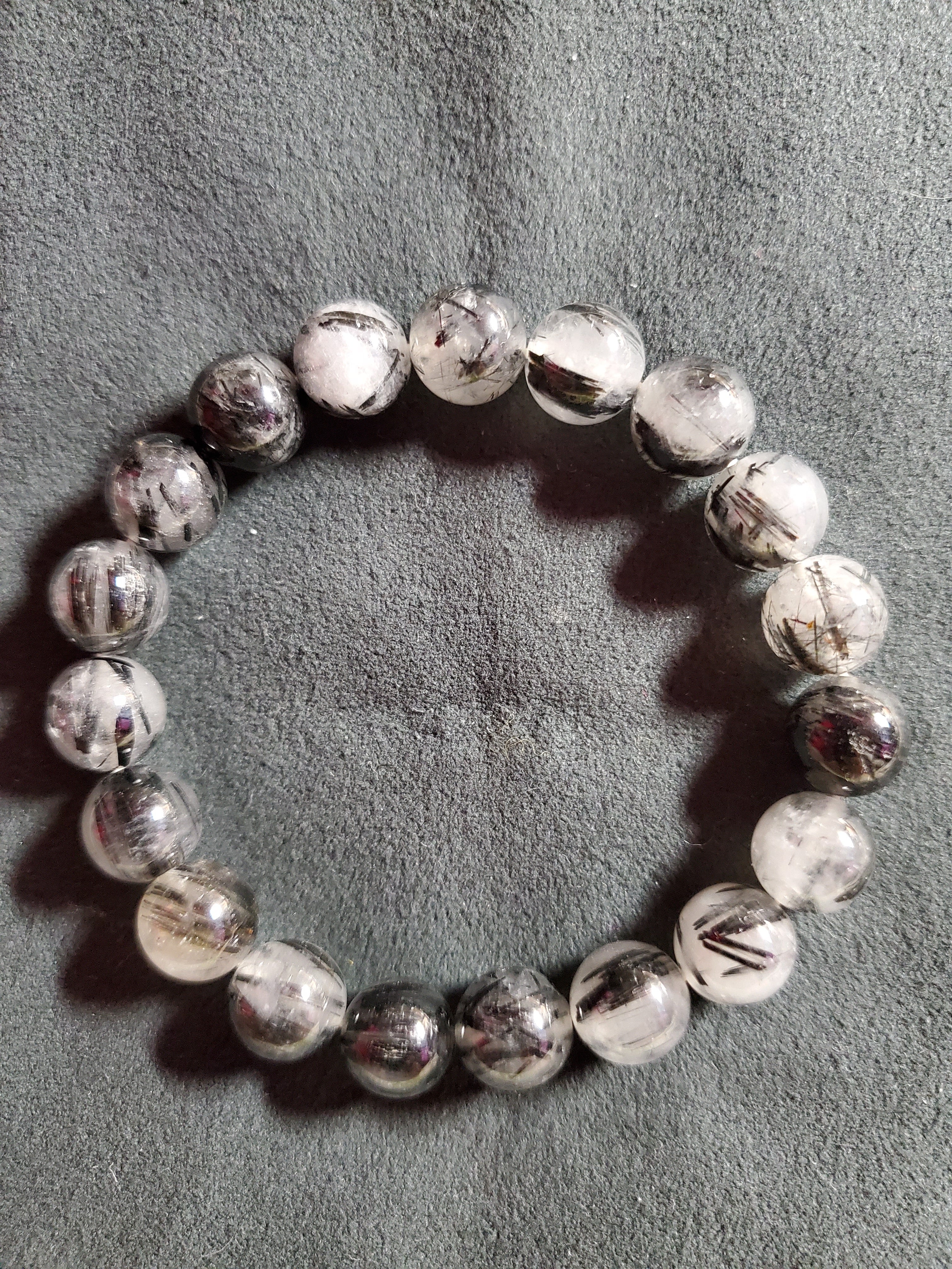 ブラックルチルクォーツの10㎜のブレスレットです。内径は約16cm弱です。
