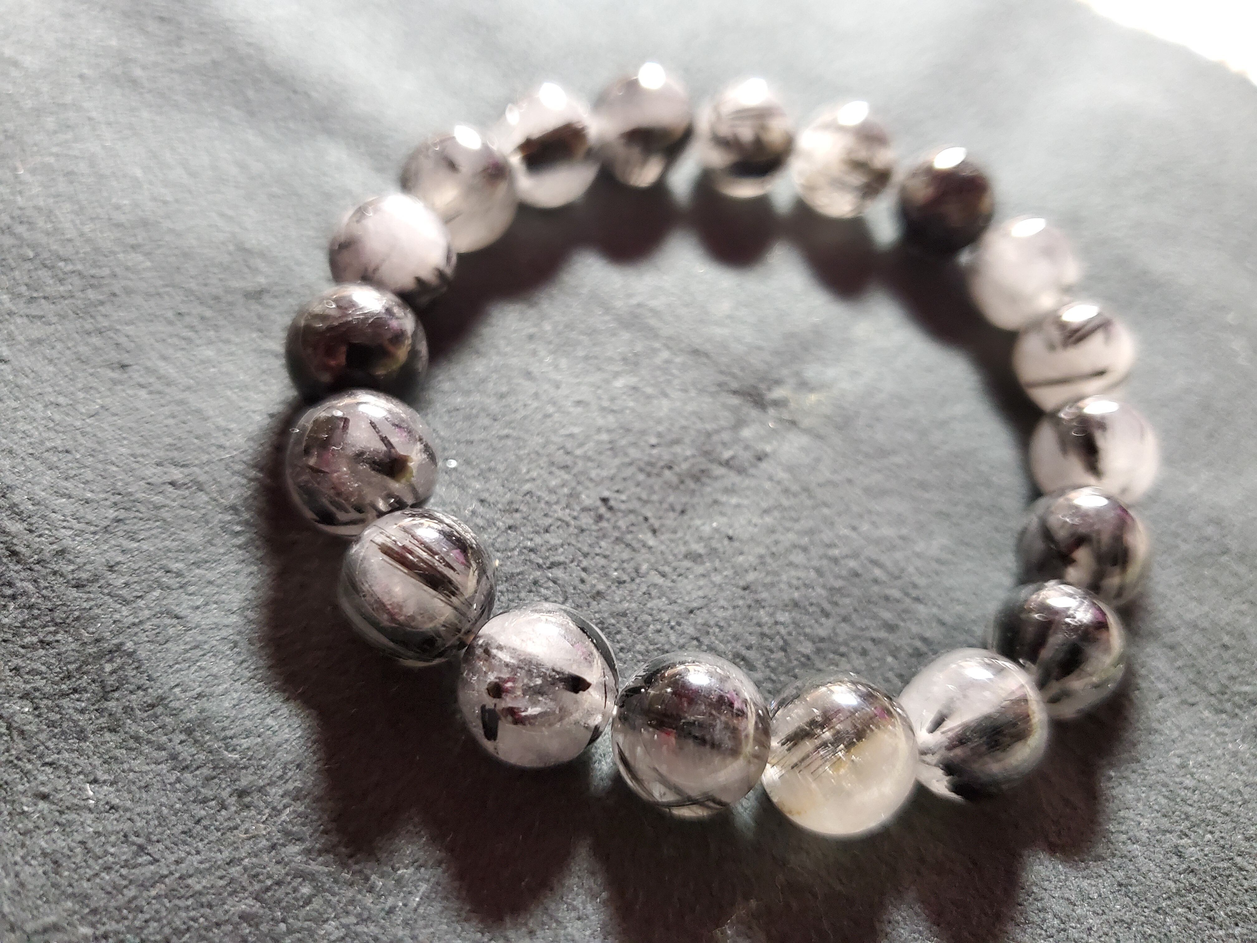 水晶は少し白いですが、ハッキリと黒針が見れるブレスレットです。