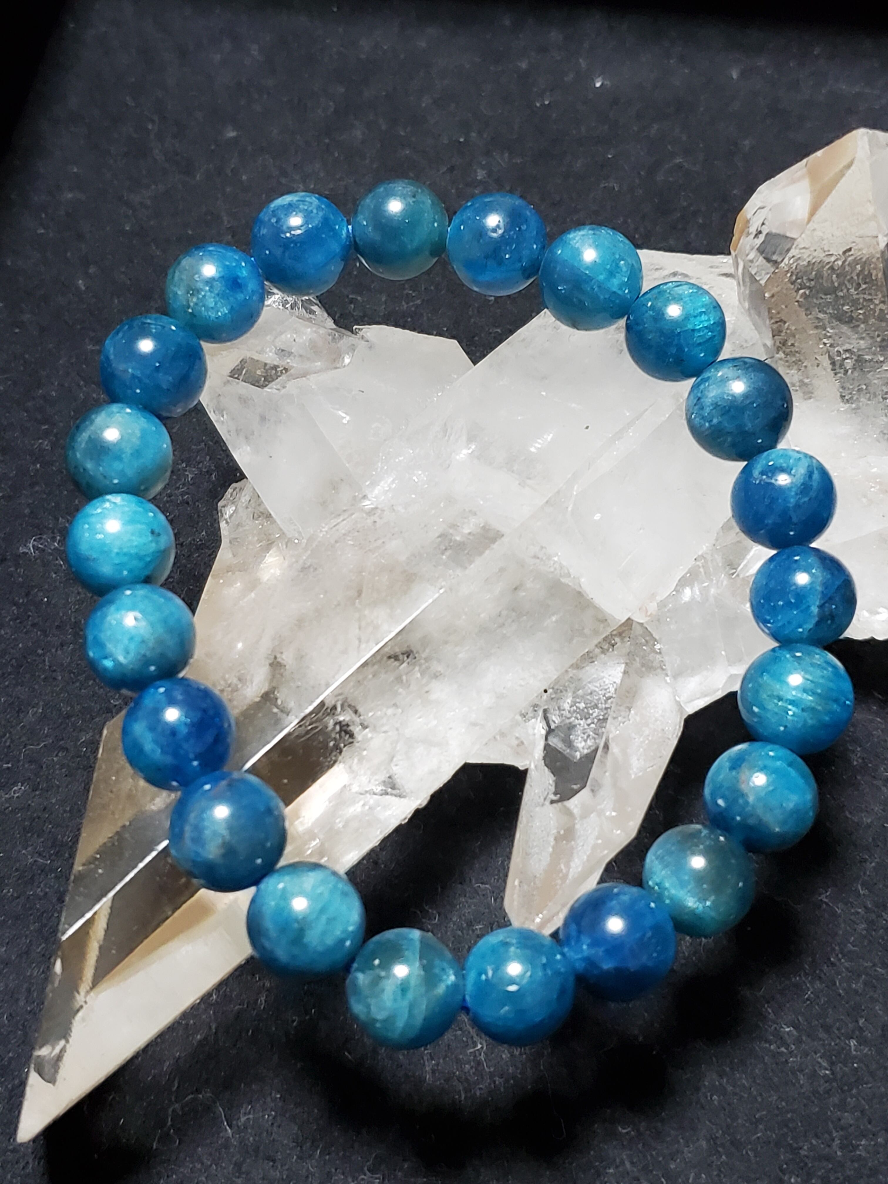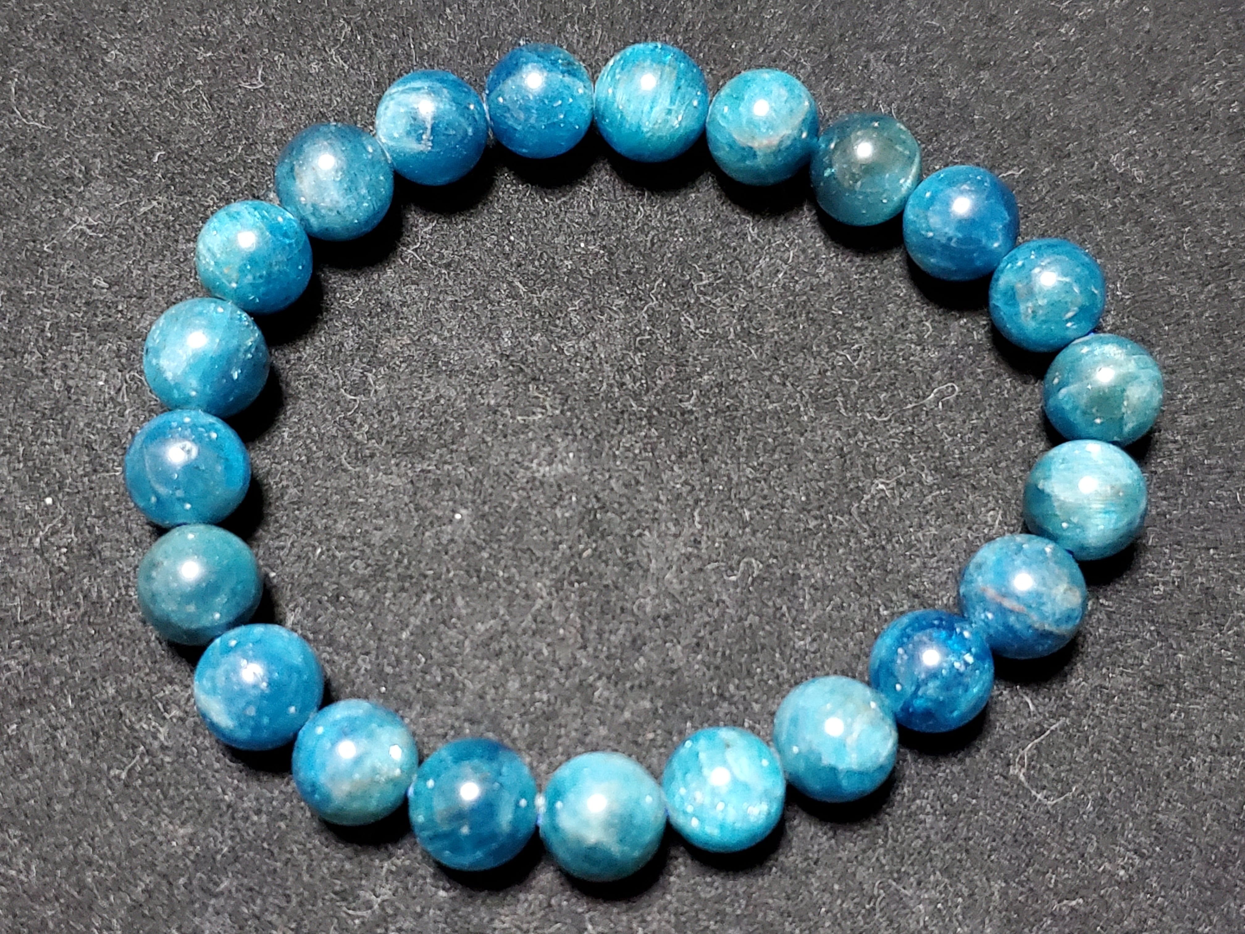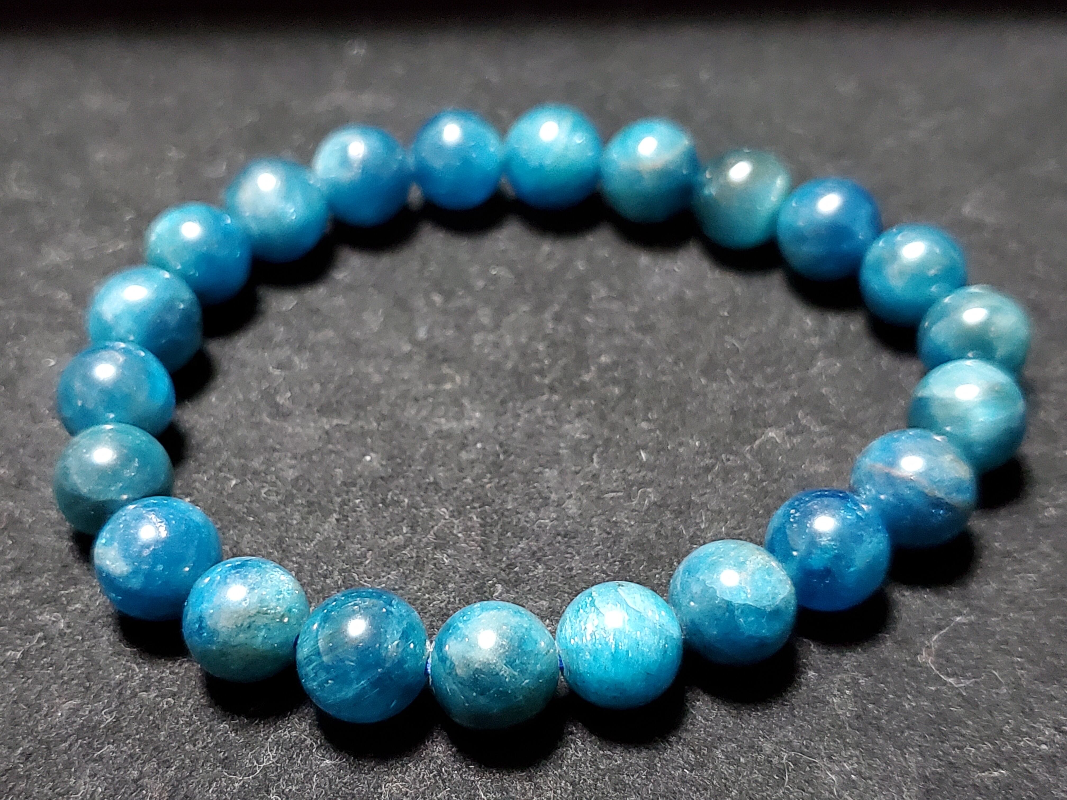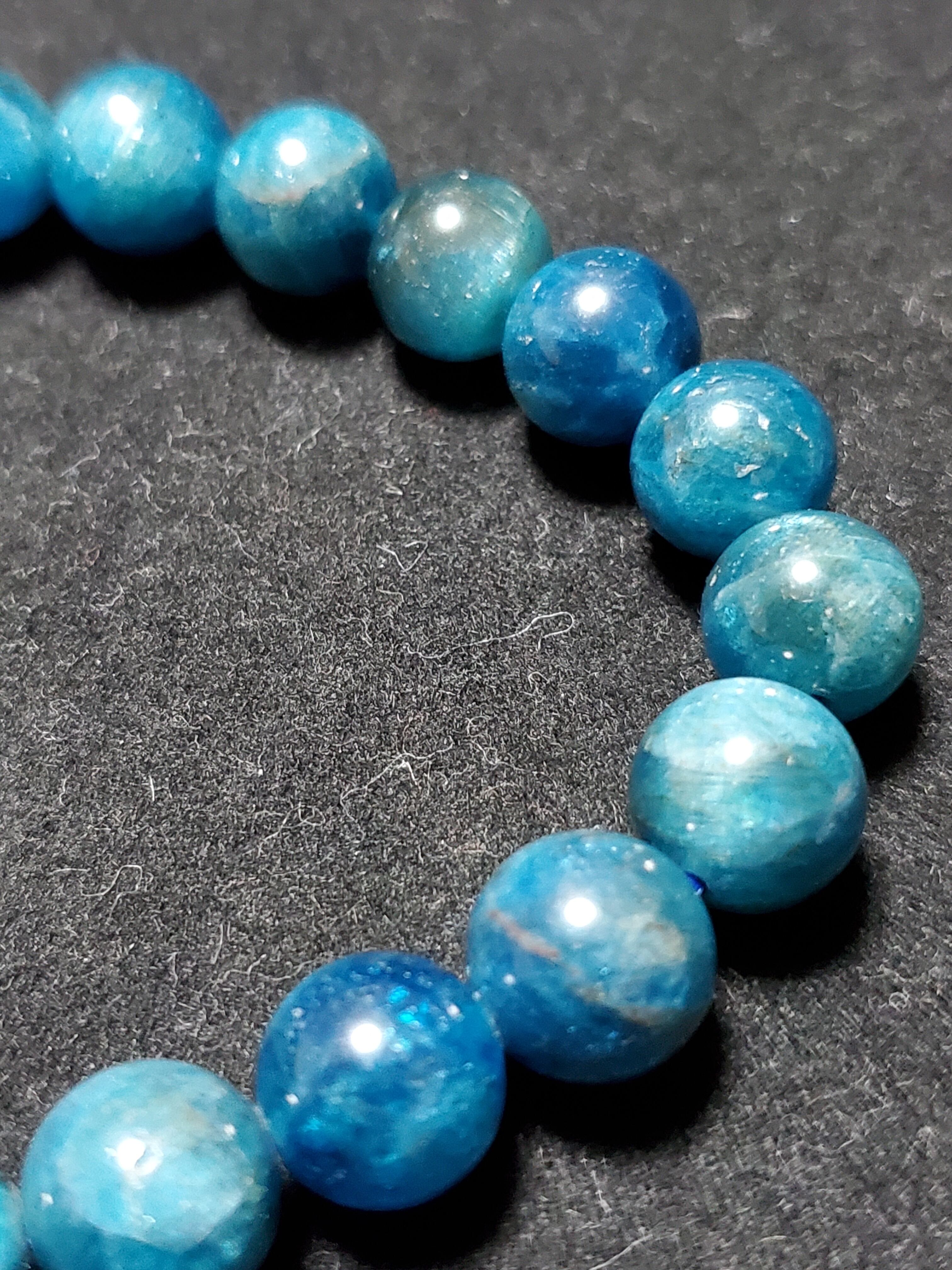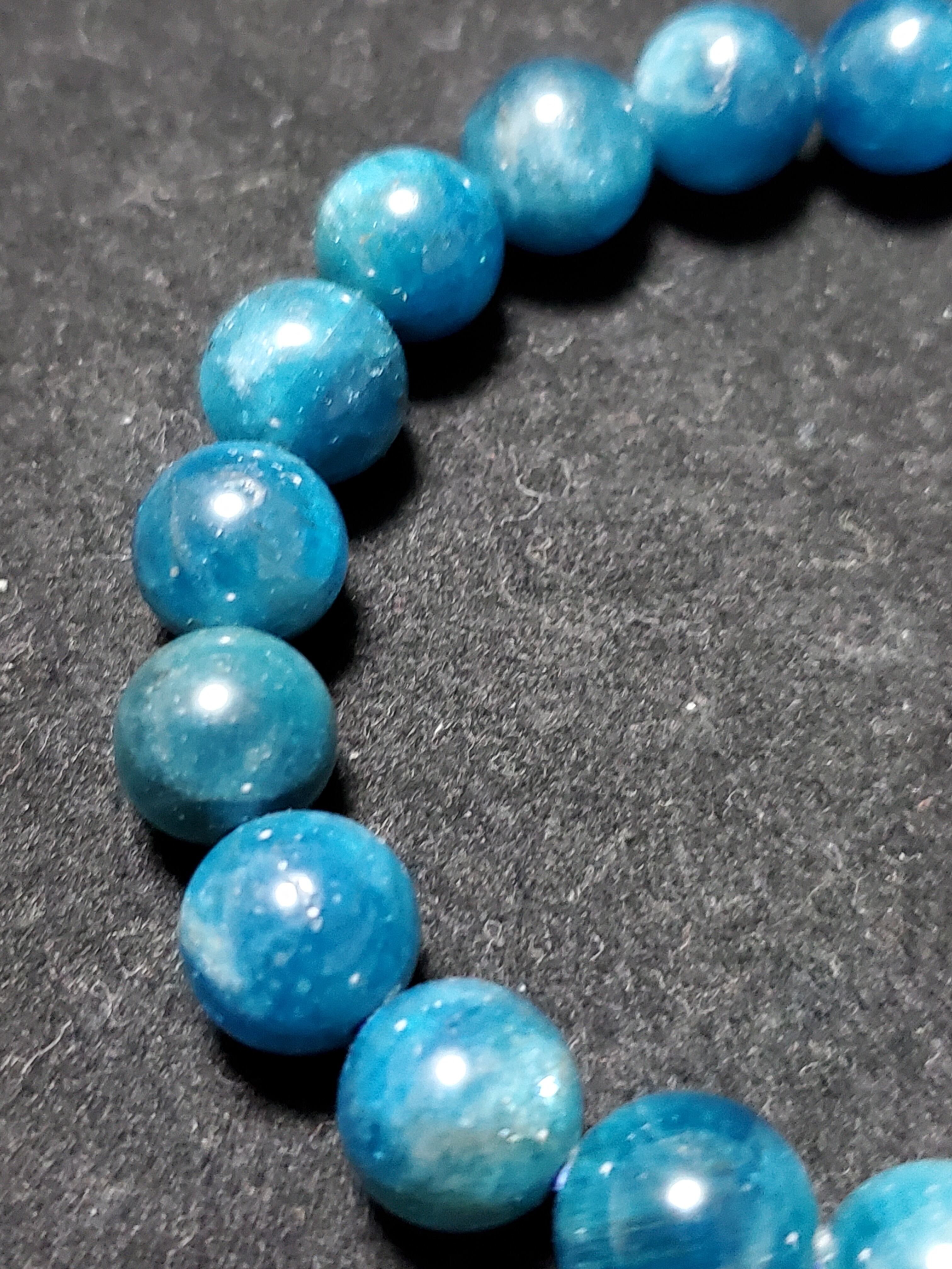 ブルーアパタイトの8㎜のブレスレットです。鮮やかなブルーで癒されます。内径は、約17cmです。