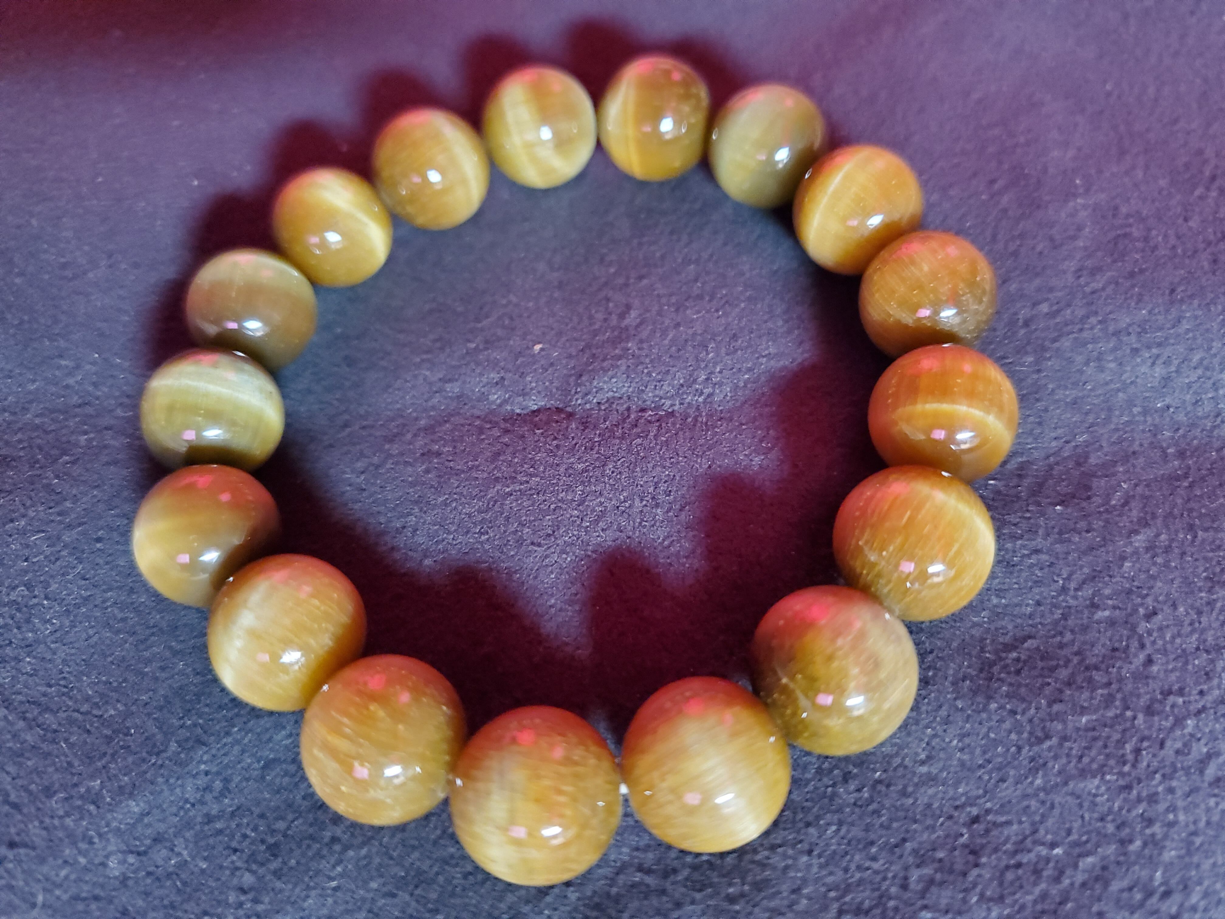 ゴールデンタイガーアイの12㎜のブレスレットです。内径は約17cm弱です。