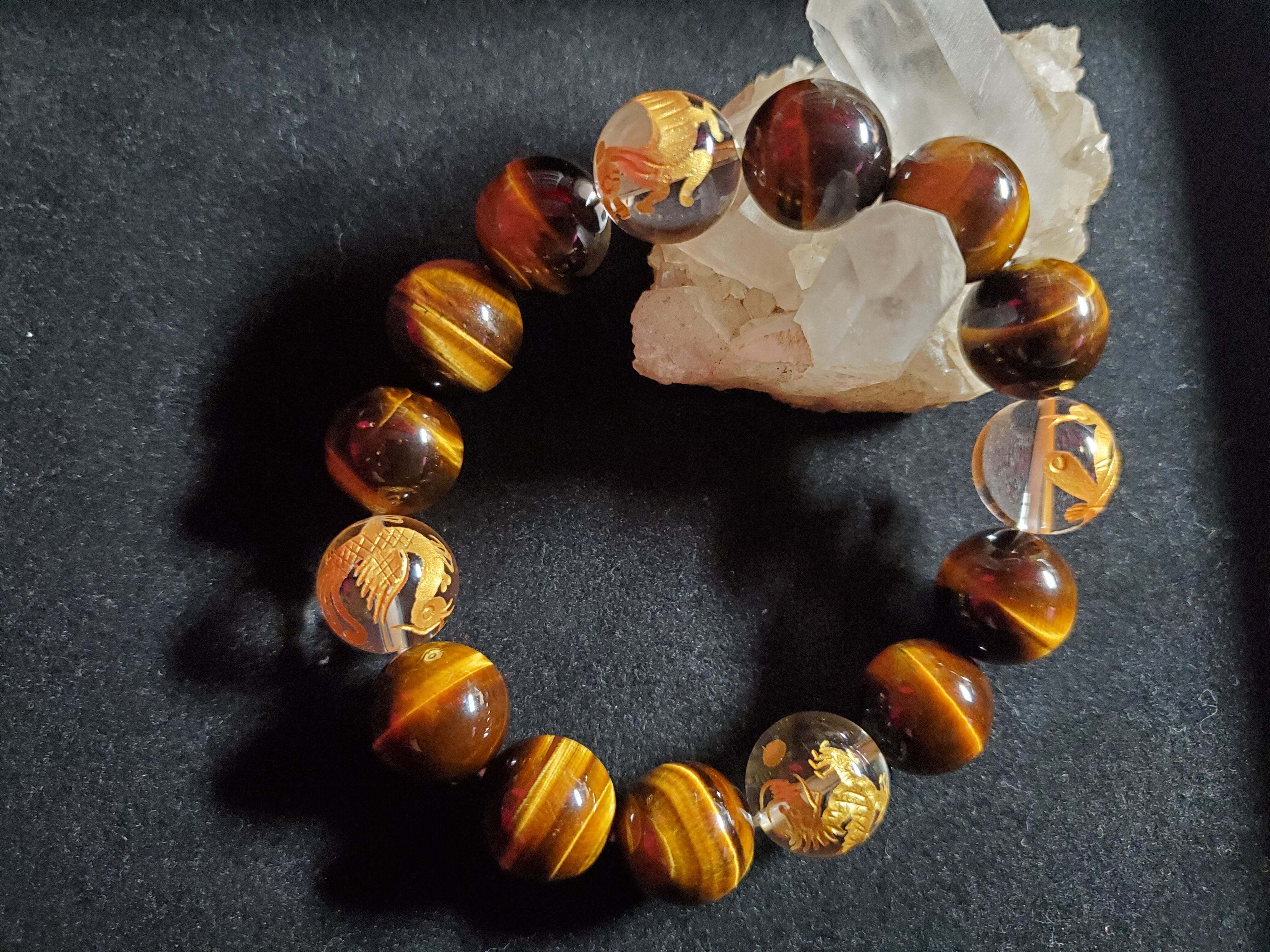 14㎜のタイガーアイの風水四神ブレスレットです。