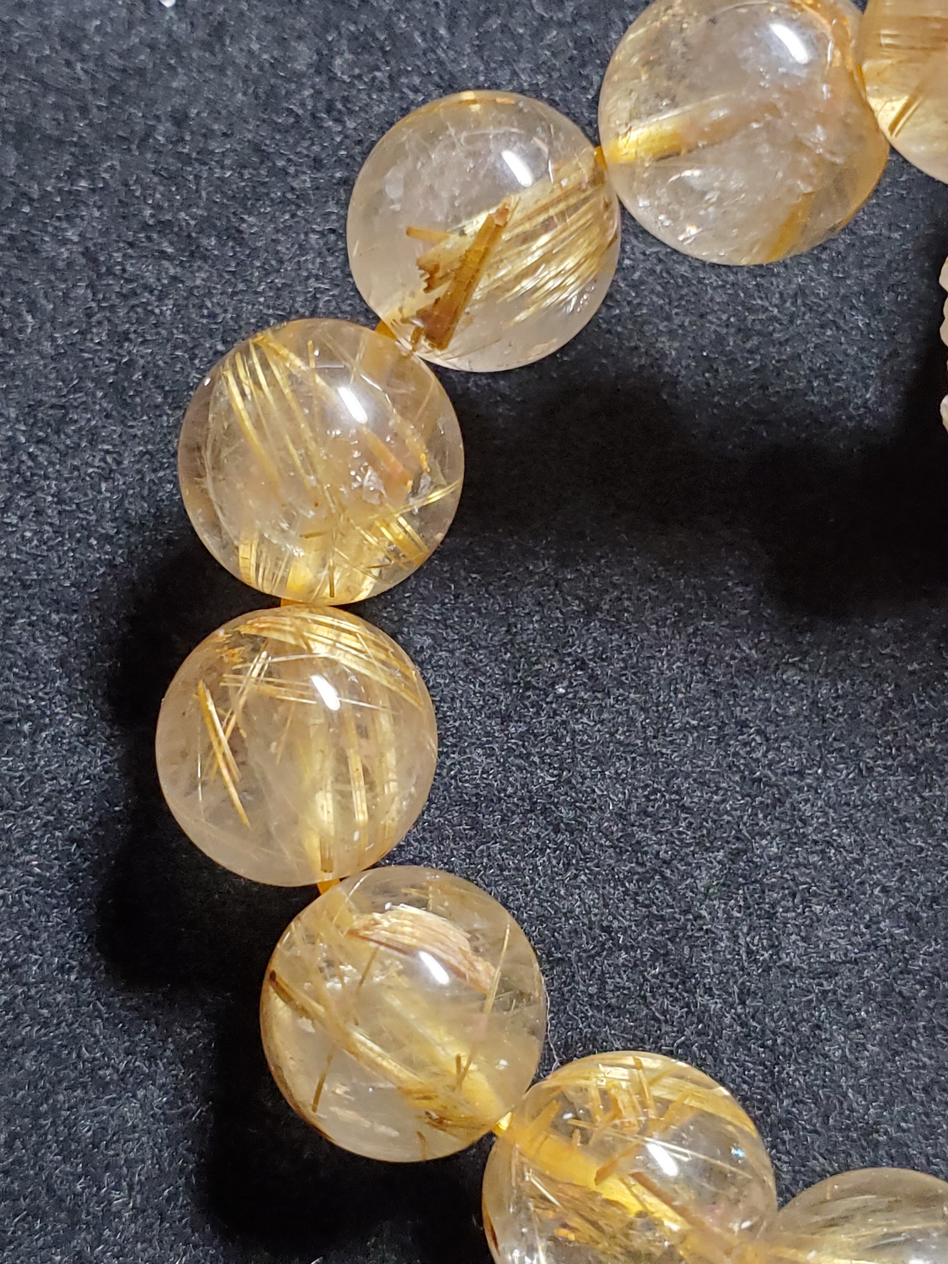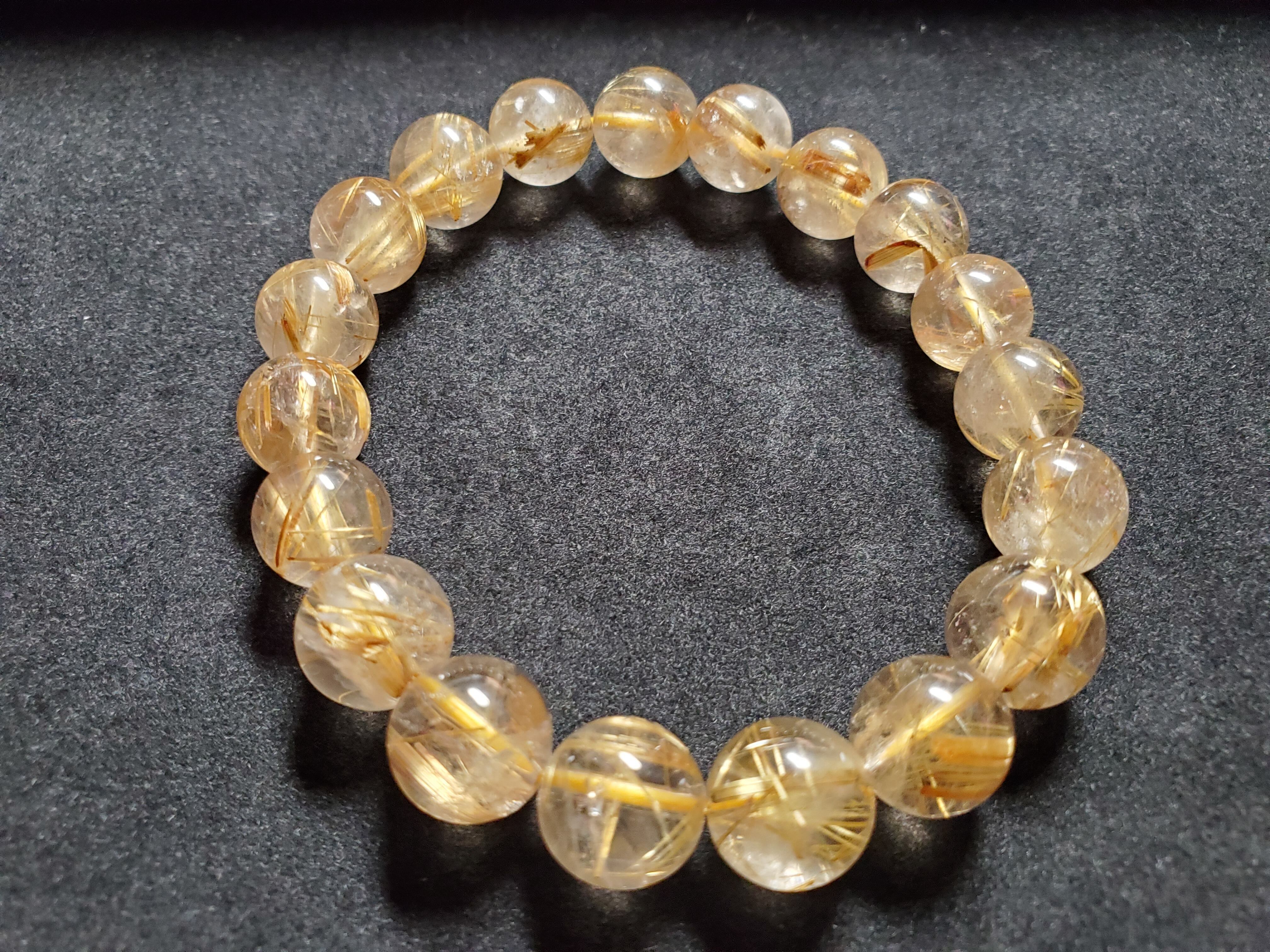 10㎜のゴールドタイチンルチルクォーツのブレスレットです。