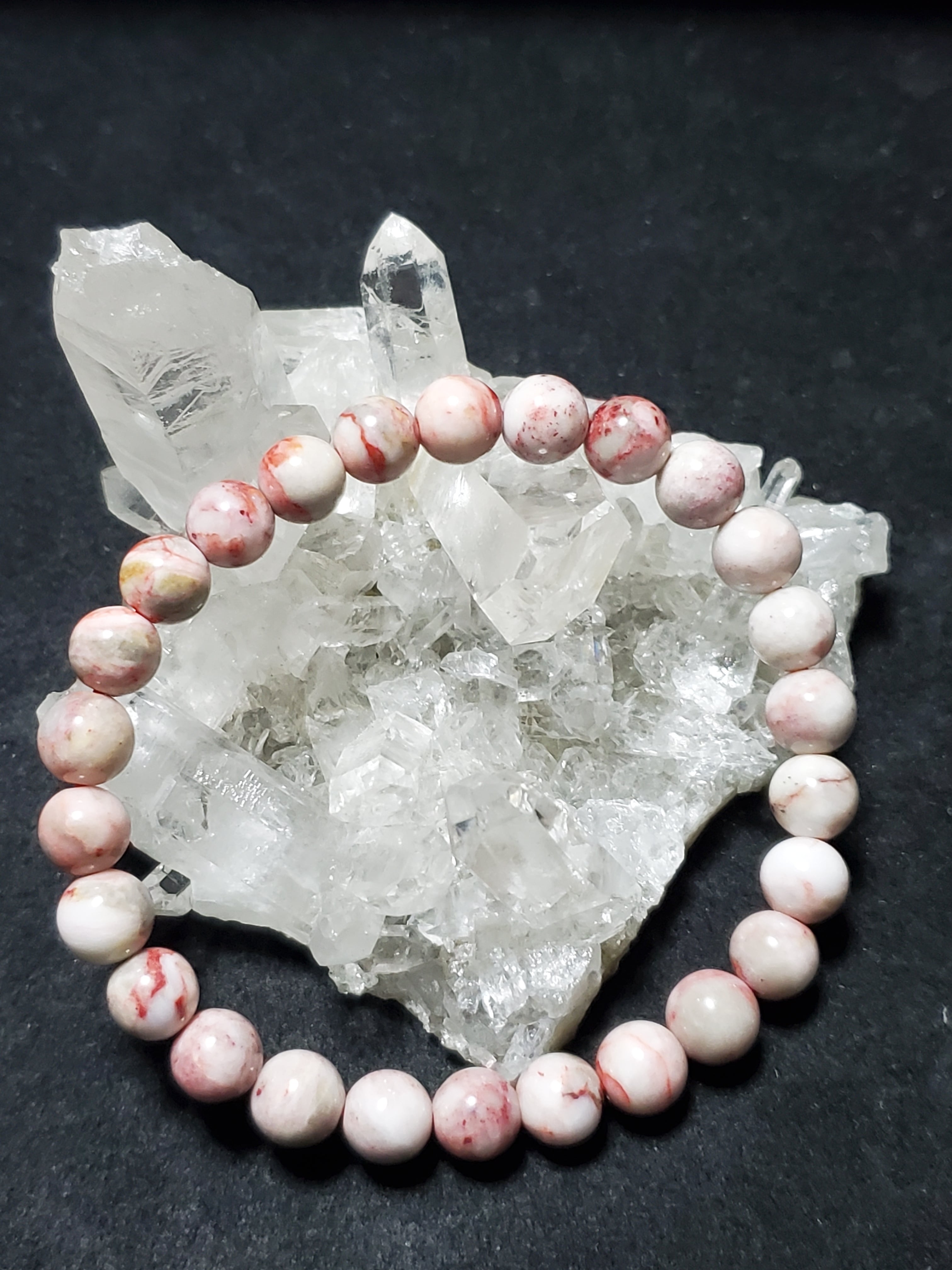 大昔には竜の血が染み込んだ不老不死の力を宿す石と考えられてきました。そのためシナバークォーツにみられる独特の斑点模様は竜血(りゅうけつ/ドラゴンブラッド)とも呼ばれます。