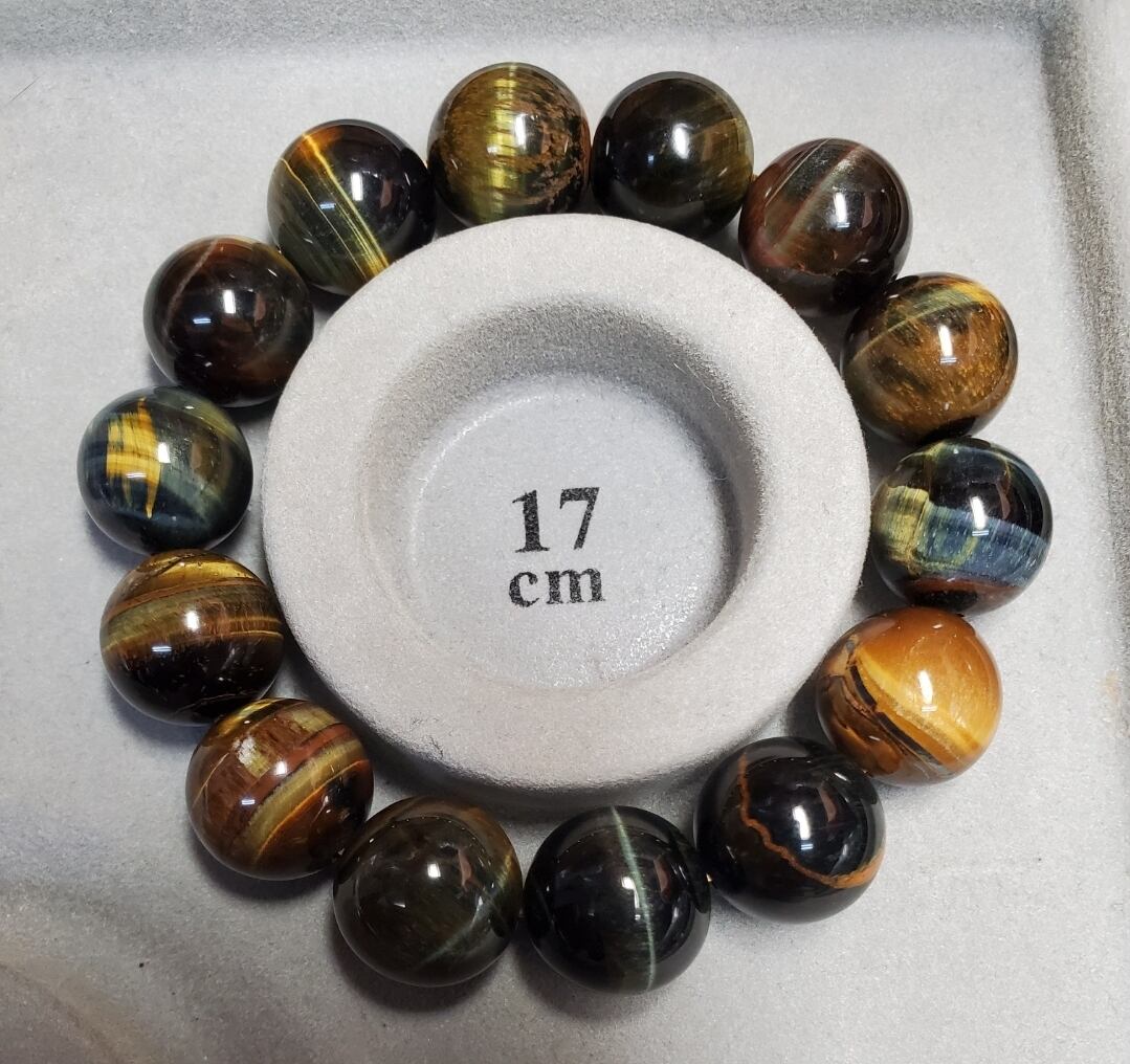 16㎜のバイカラータイガーアイのブレスレットです。内径は約17cmです。