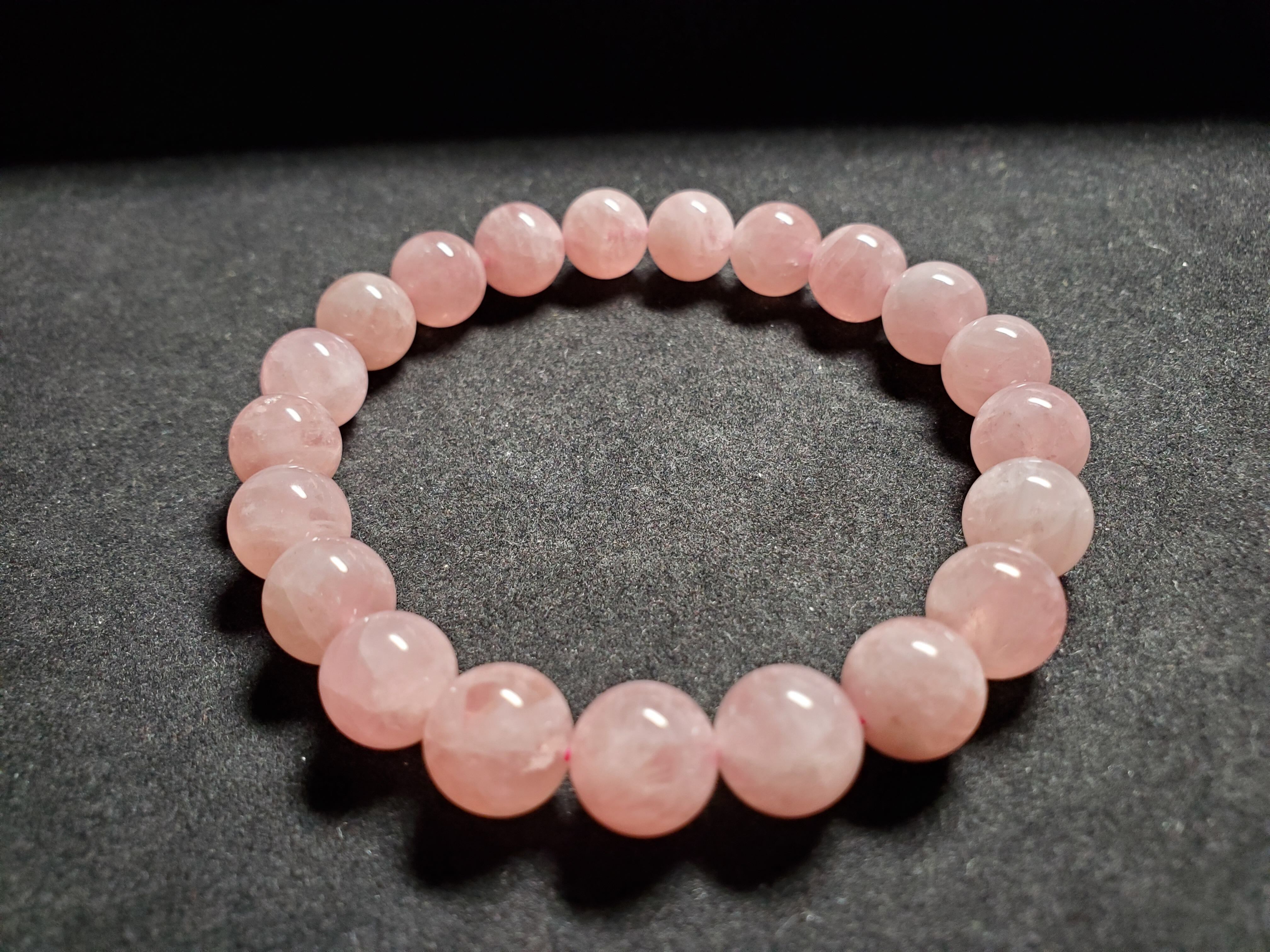 9㎜のディープローズクォーツのブレスレットです。内径は、約16cmです。