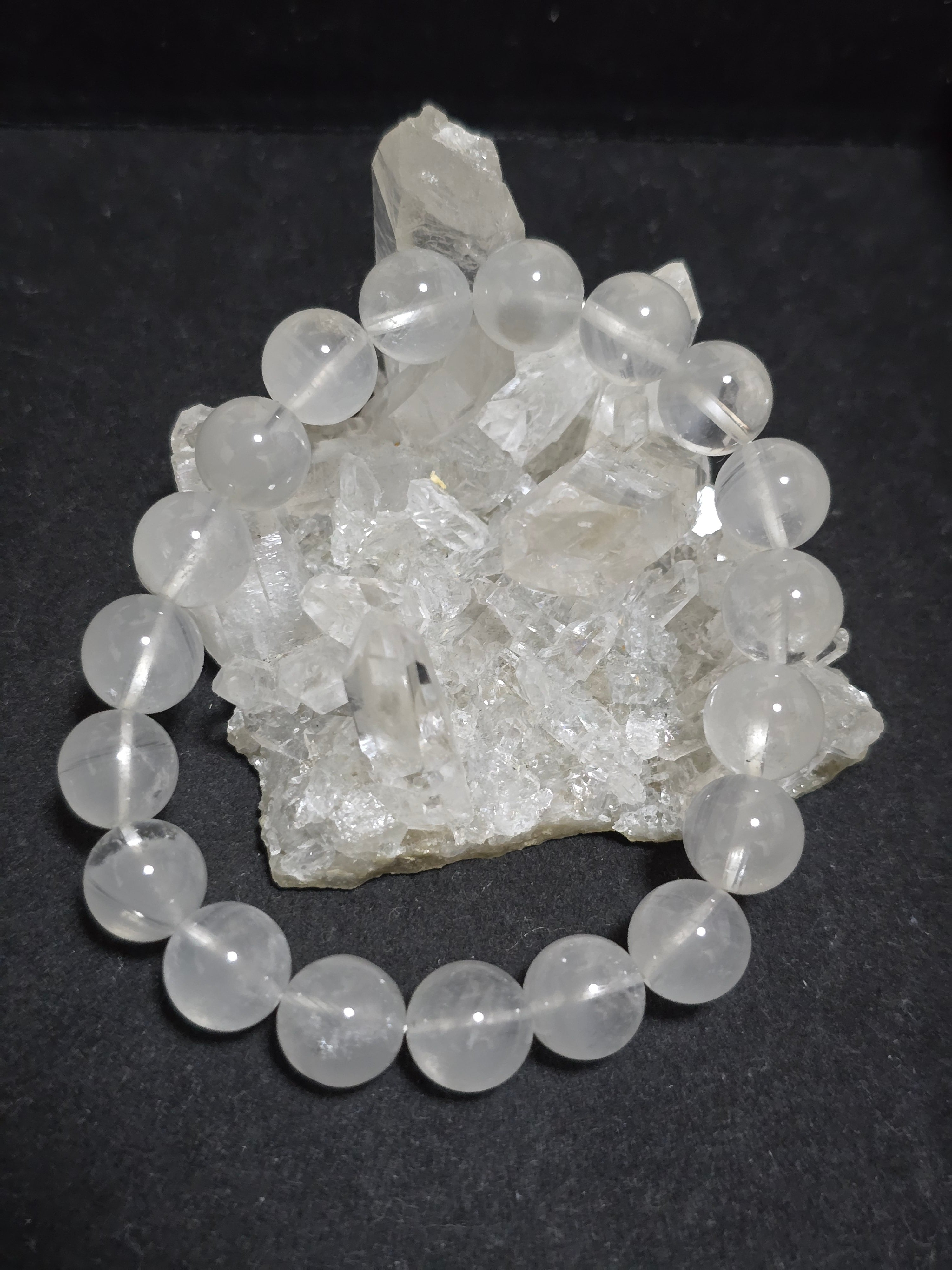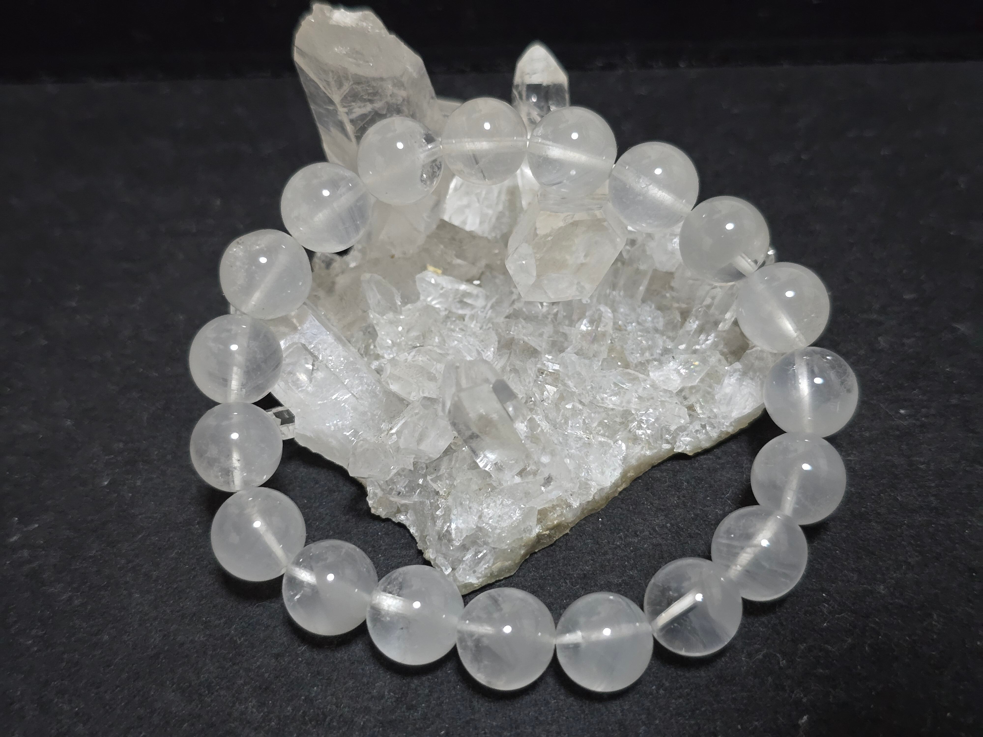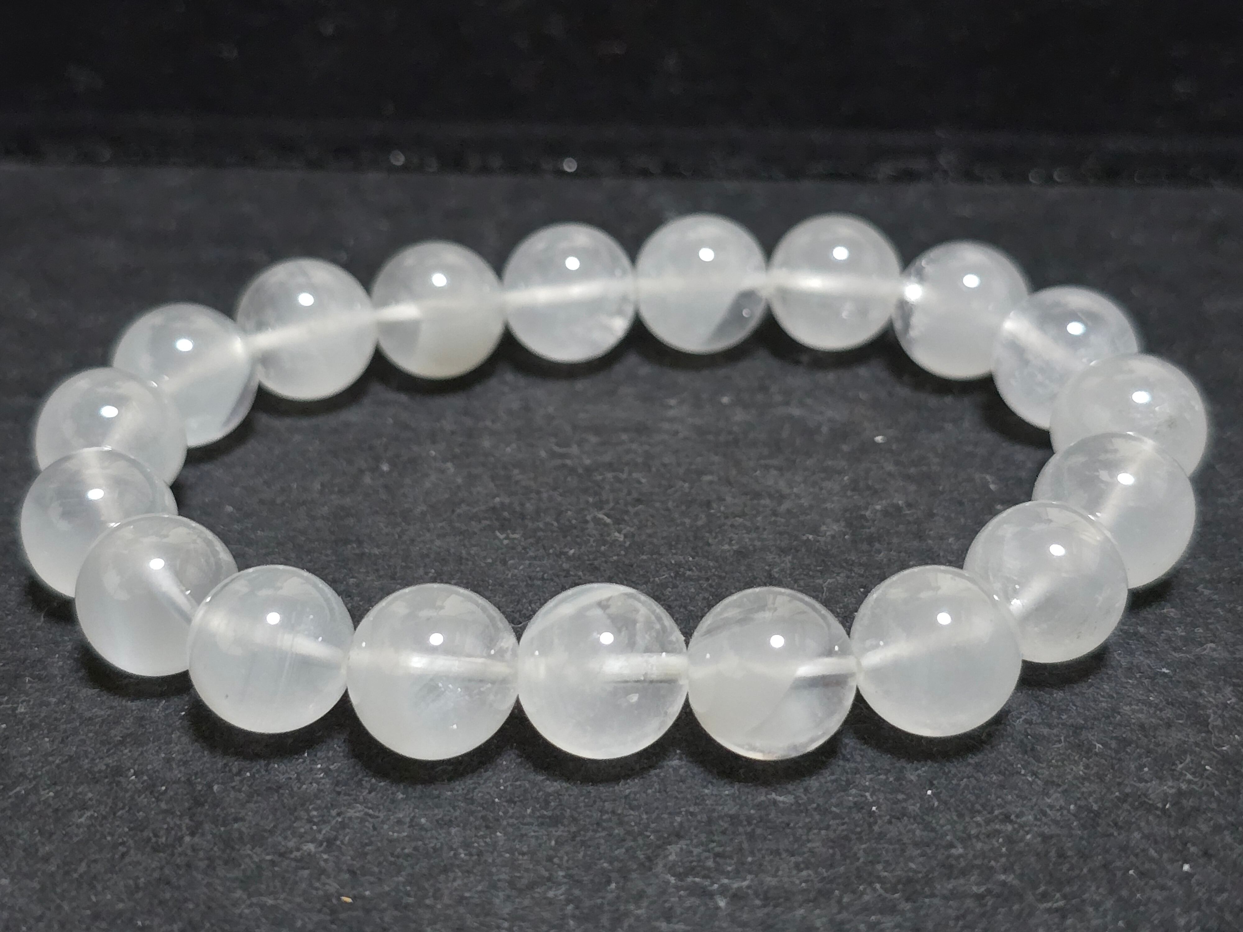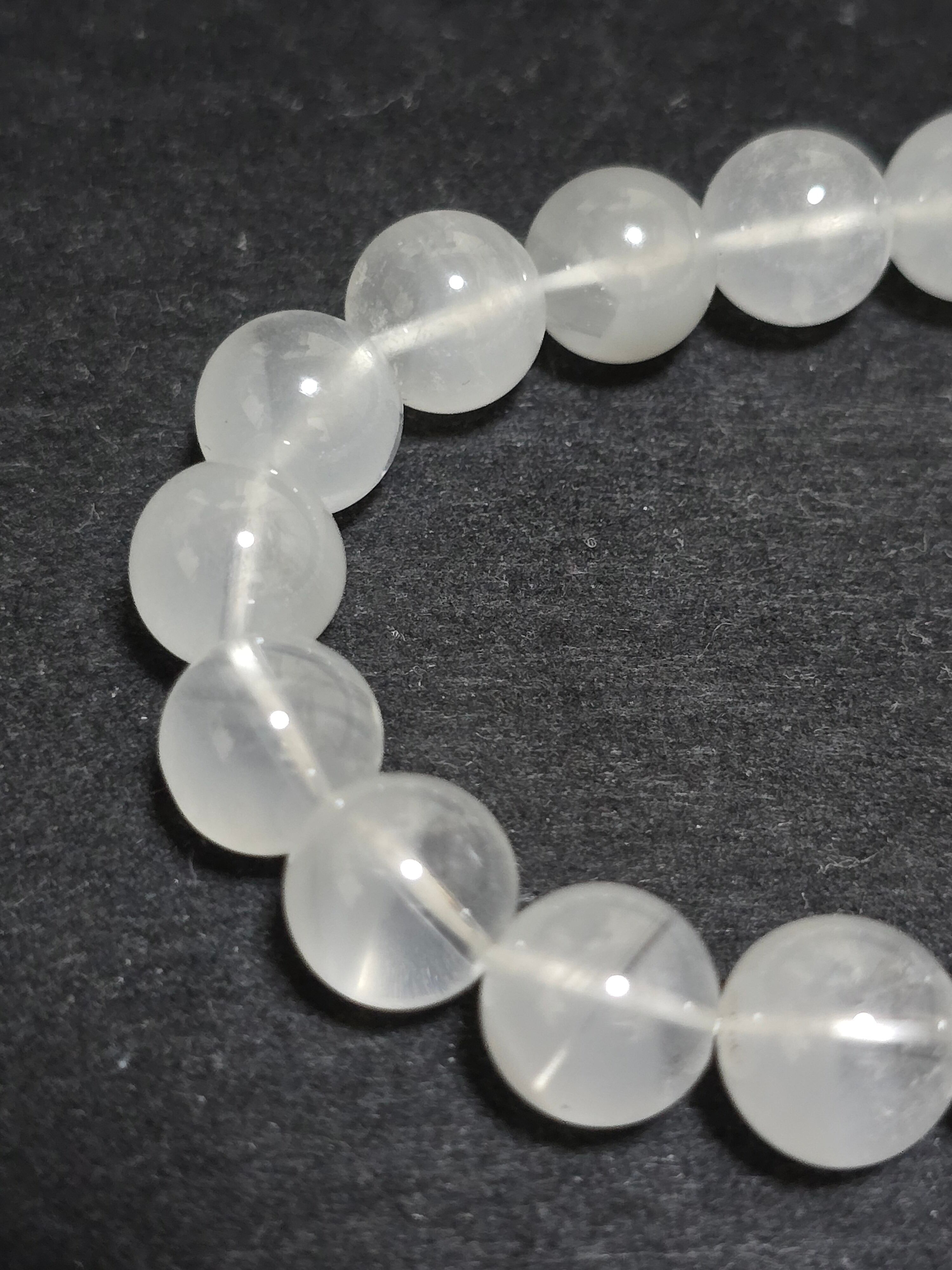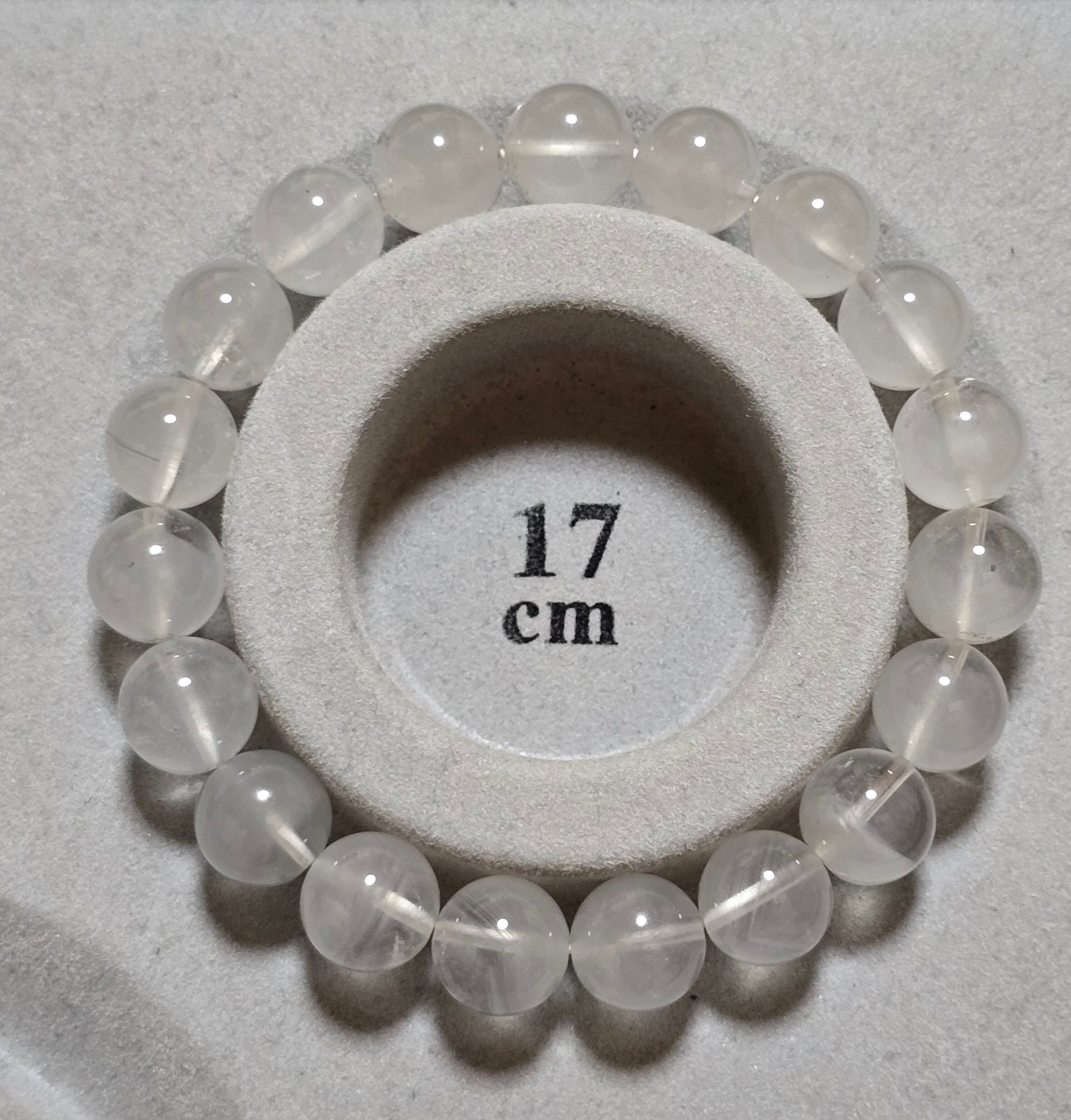 10㎜のホワイトファントムクォーツのブレスレットです。内径は、約17㎝です。