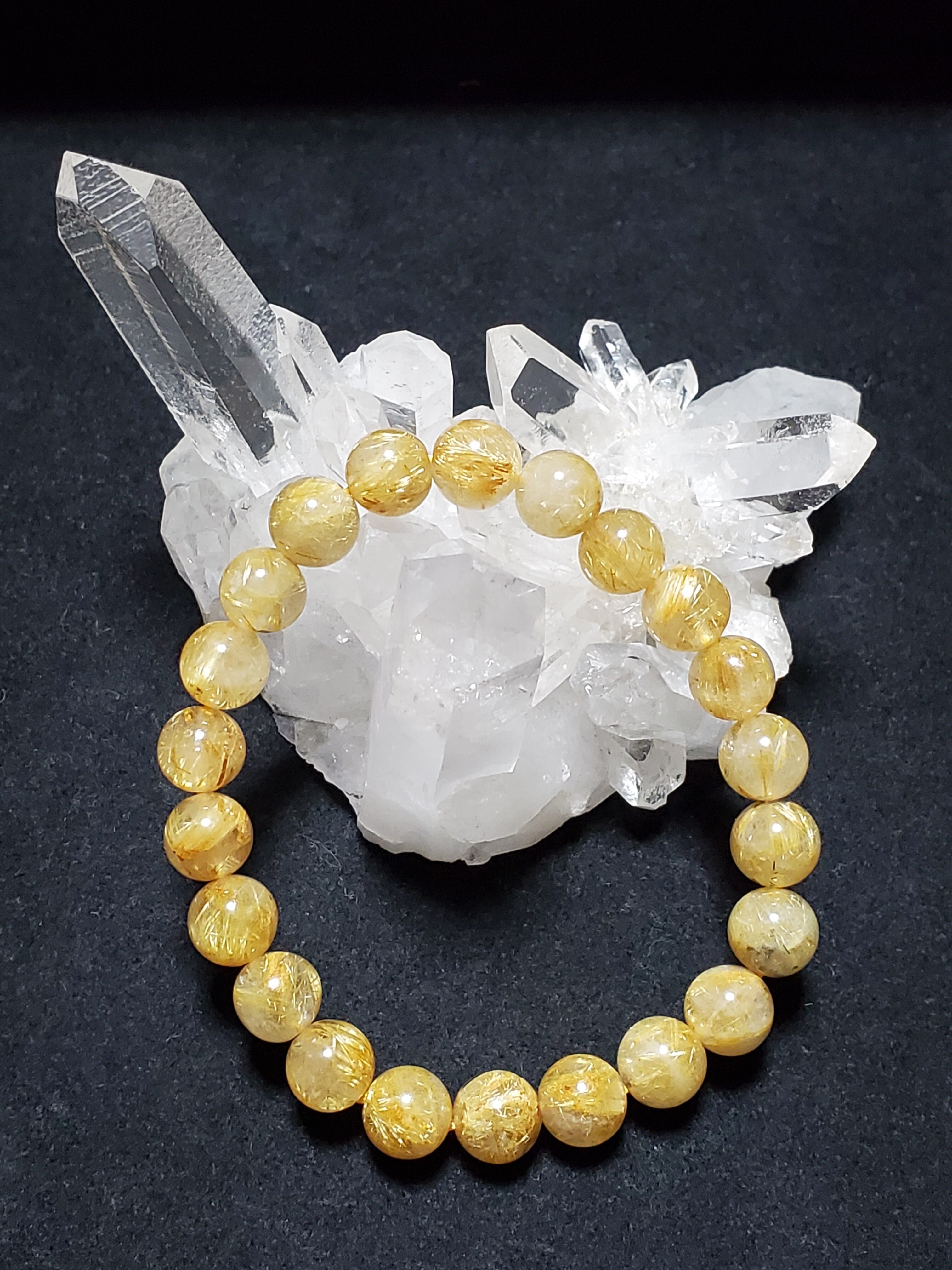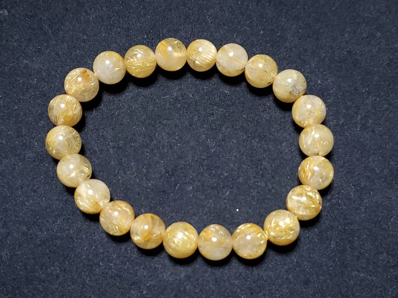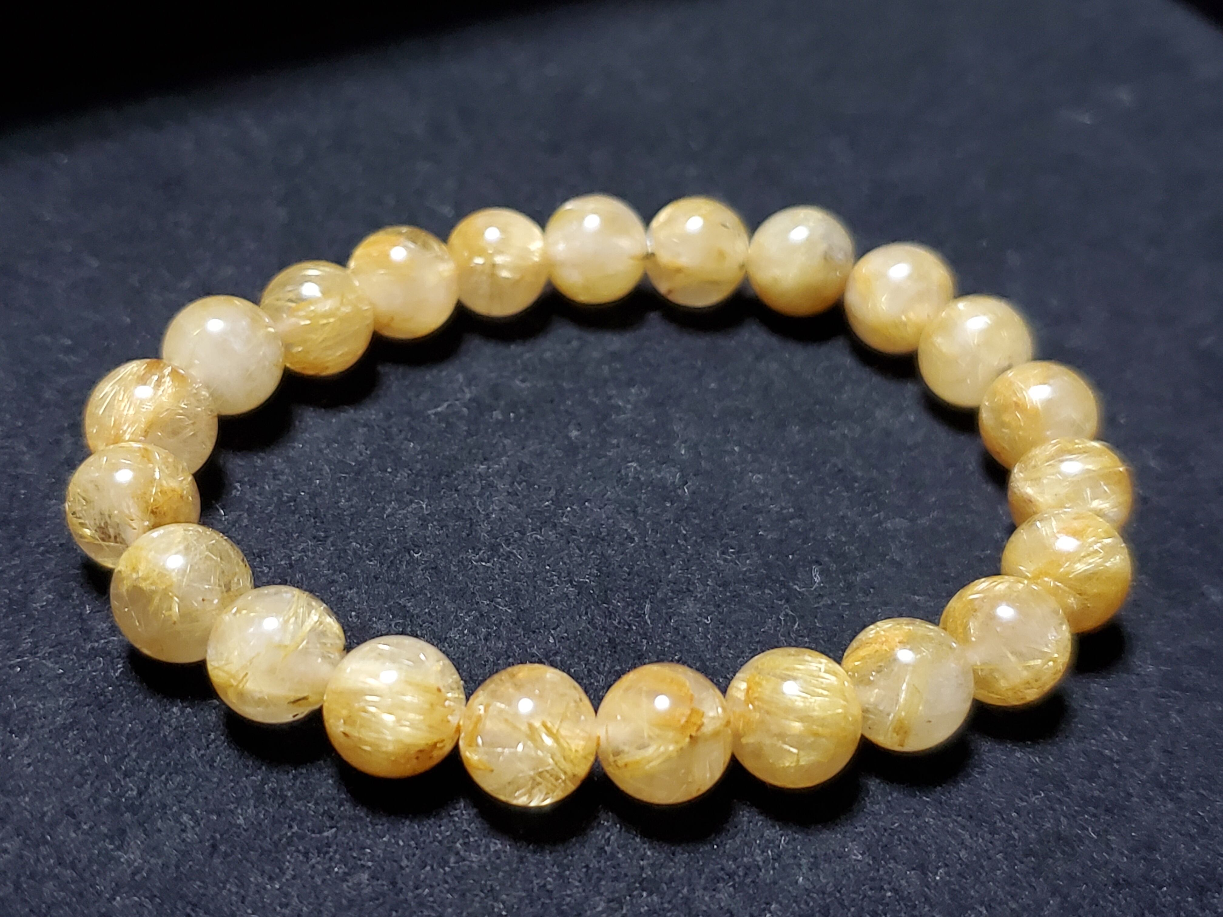 8㎜のゴールドタイチンルチルクォーツのブレスレットです。