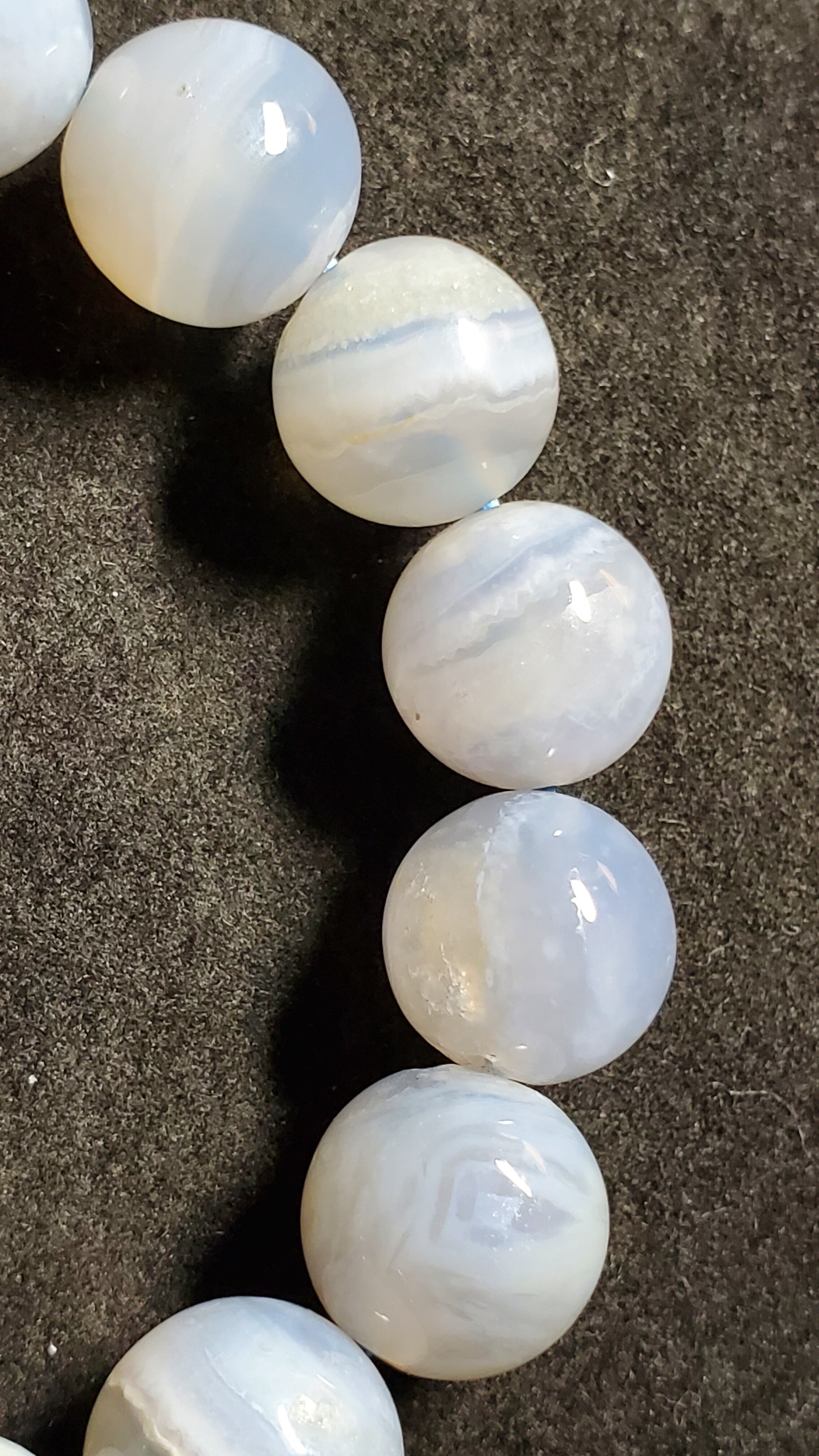 12㎜のブルーレースアゲートのブレスレットです。内径は15.5㎝です。
