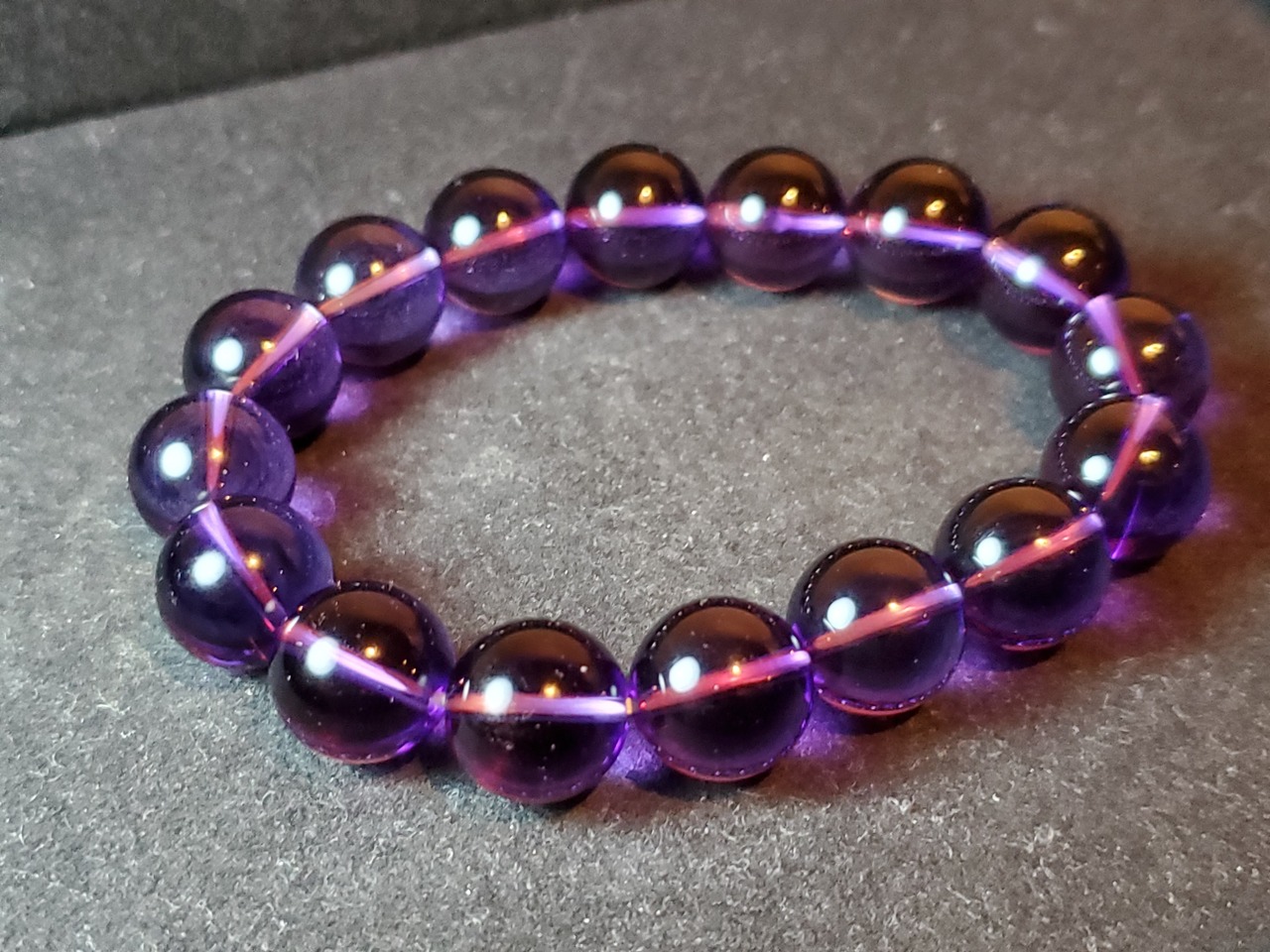 また、宗教的・霊的権威の高い色として、キリスト教の司教や位の高い僧侶、皇族などが好んで身につけたそうです。紫色は「情熱」を象徴する赤と「冷静」を象徴する青を混ぜる事によって作られます。アメジストは心に平穏をもたらし、安らぎと癒しをもたらしてくれると言われています。
