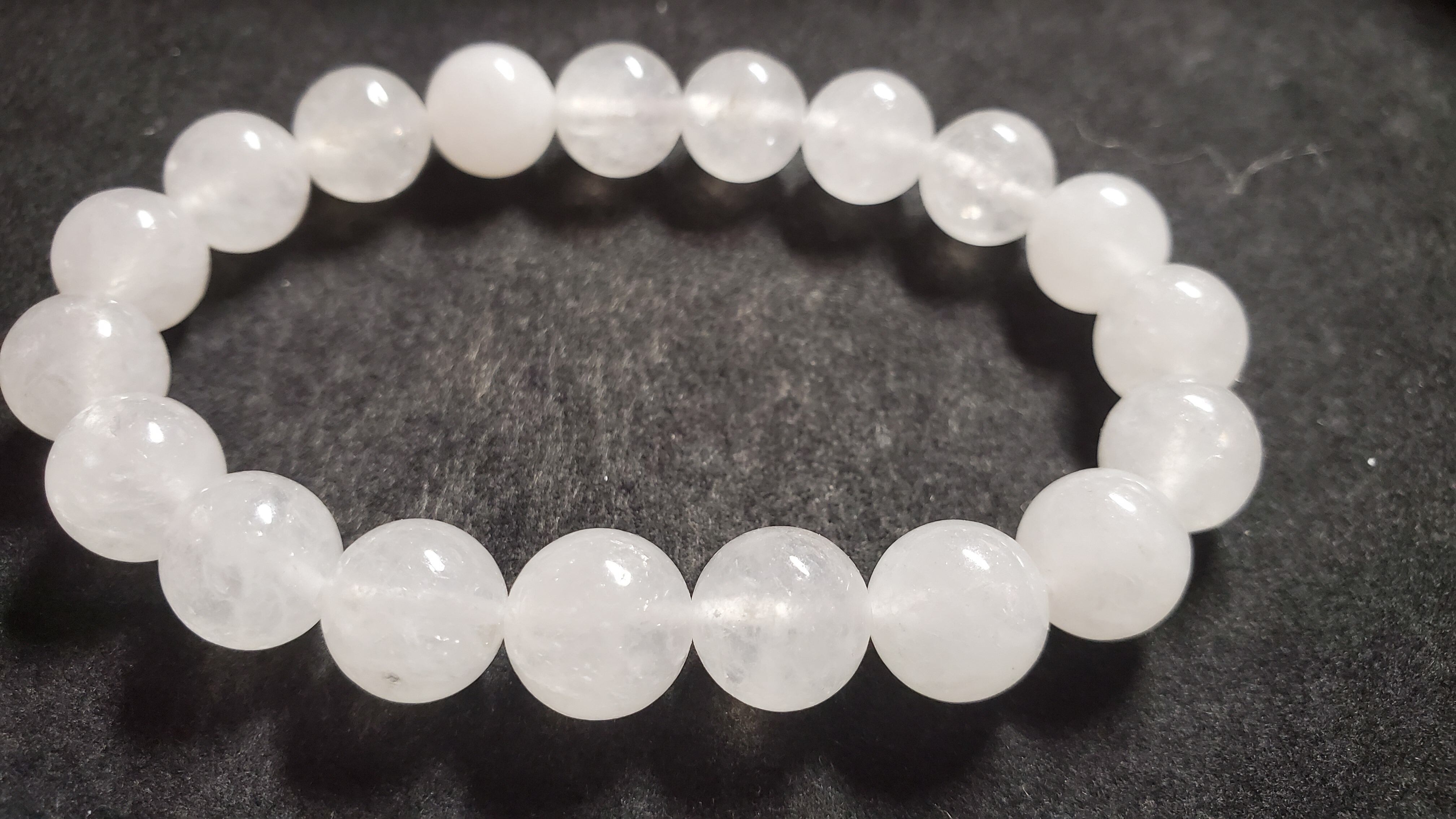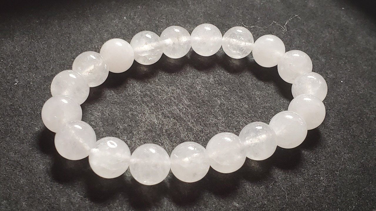10㎜のホワイトクォーツァイトのブレスレットです。内径は、約16㎝です。