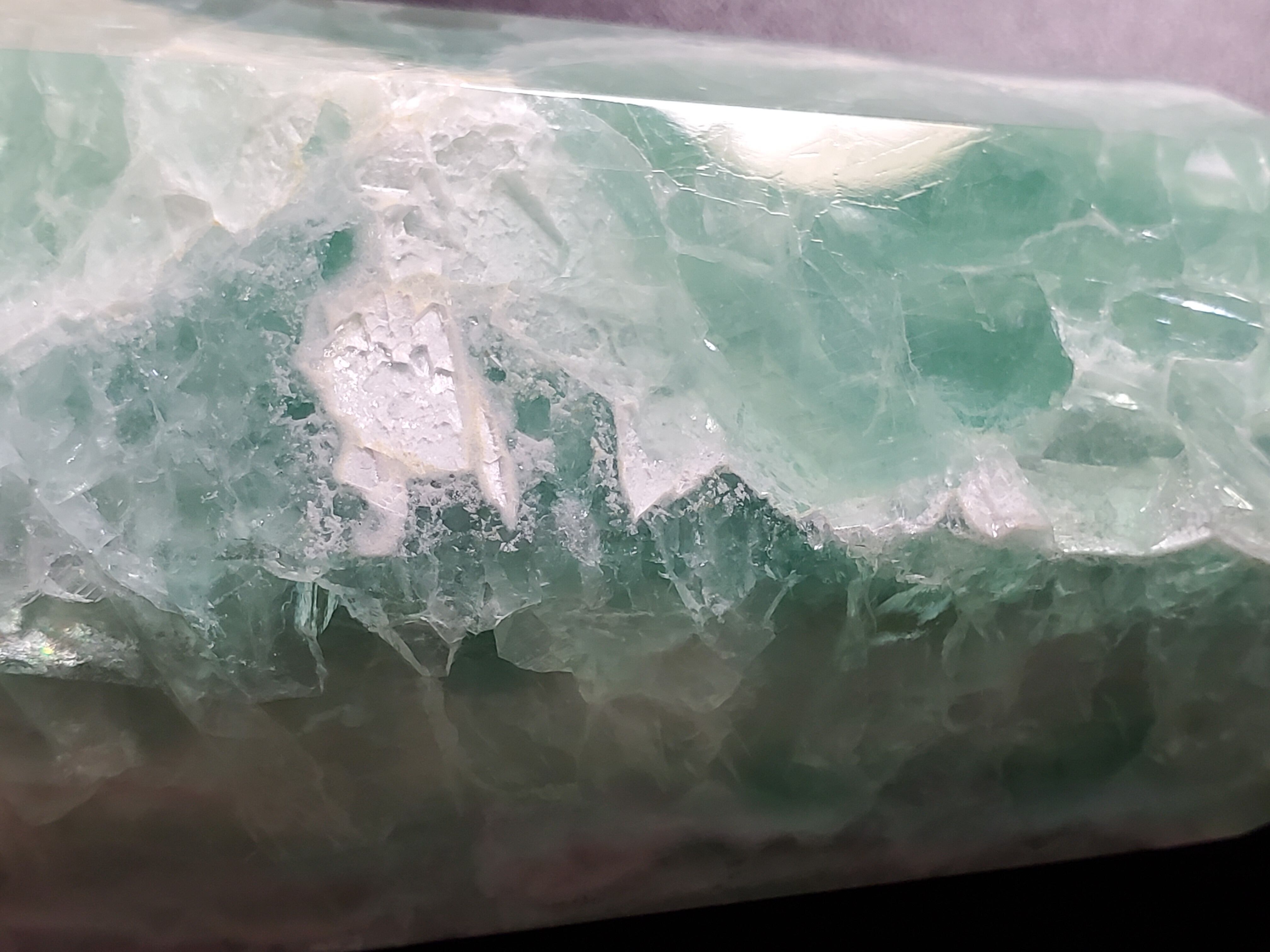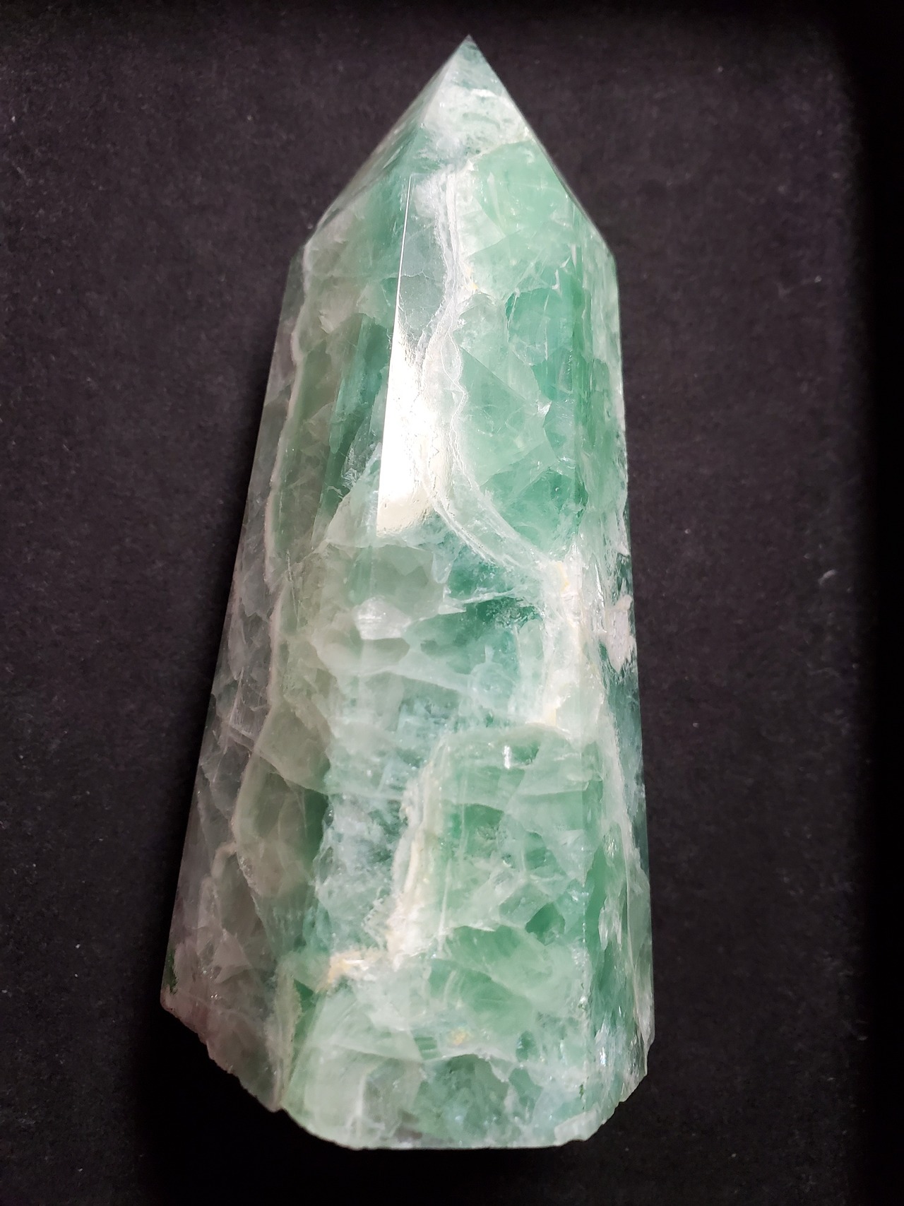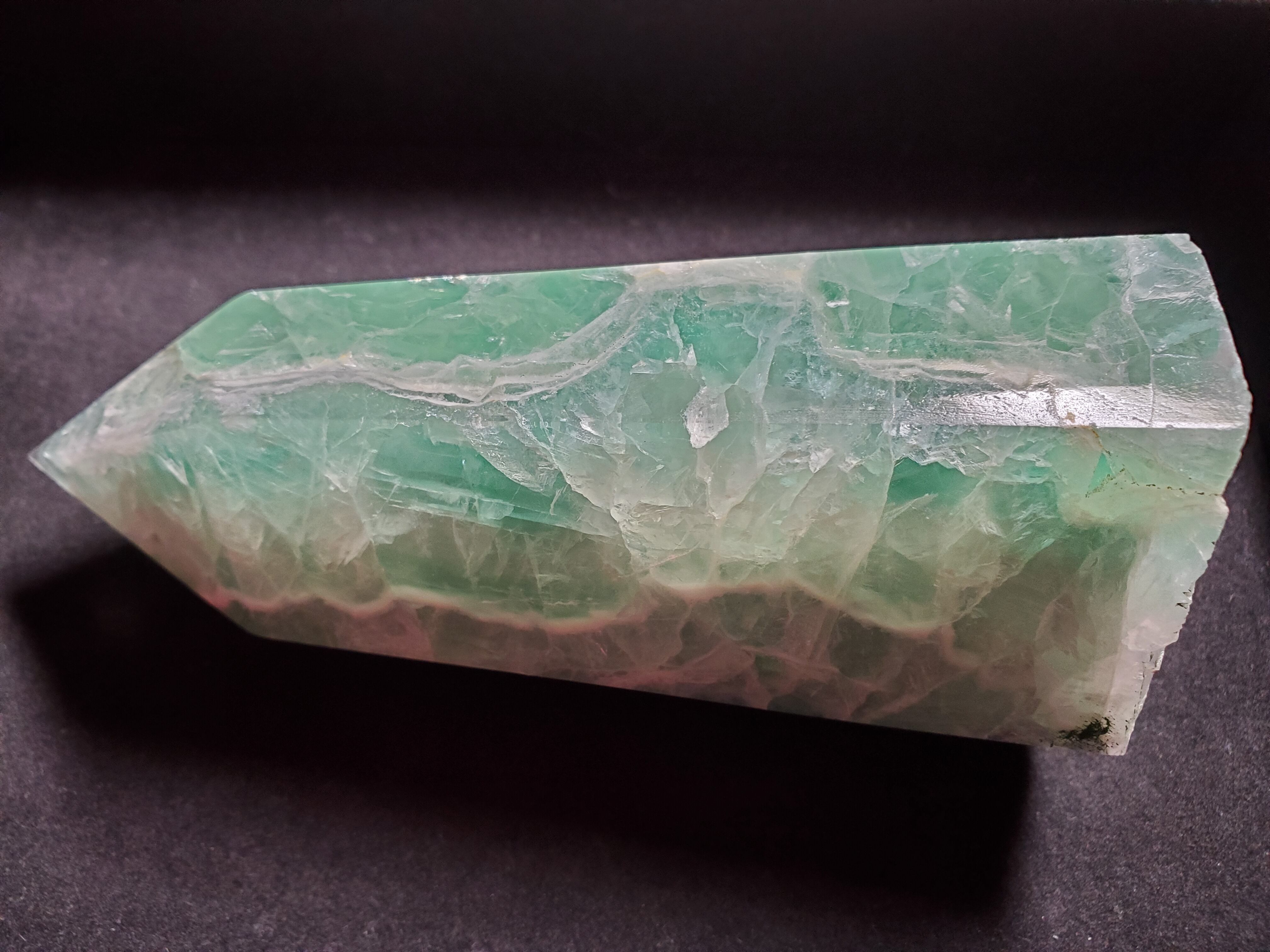 フローライトは色別にエネルギー的特性が多少異なります。あくまでも傾向としてですが、パープル系は明晰性や感受性を高める傾向、グリーン系は癒し的に働き、グラデーションカラーのものは、想像力を高める傾向が強いようです。
