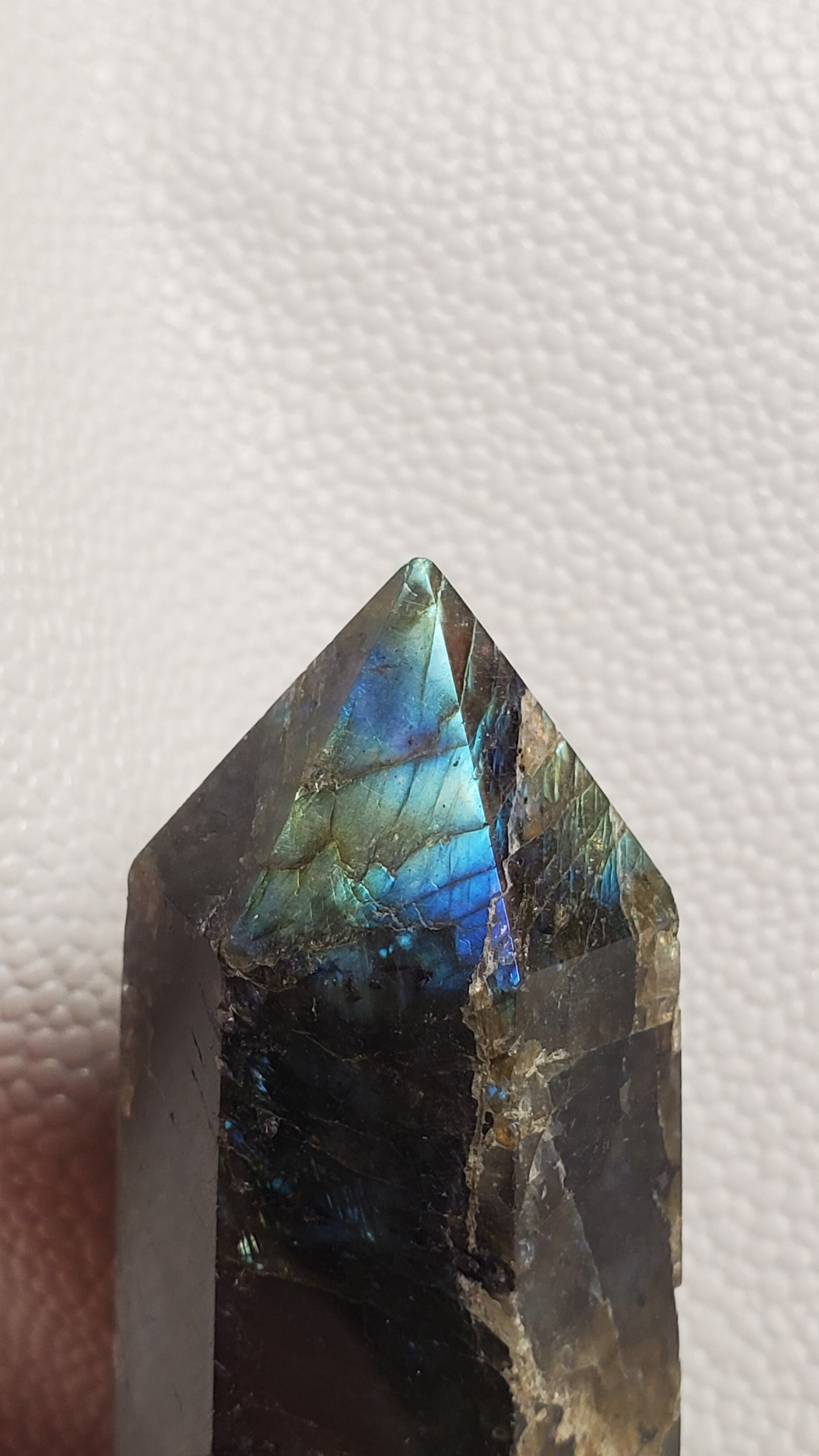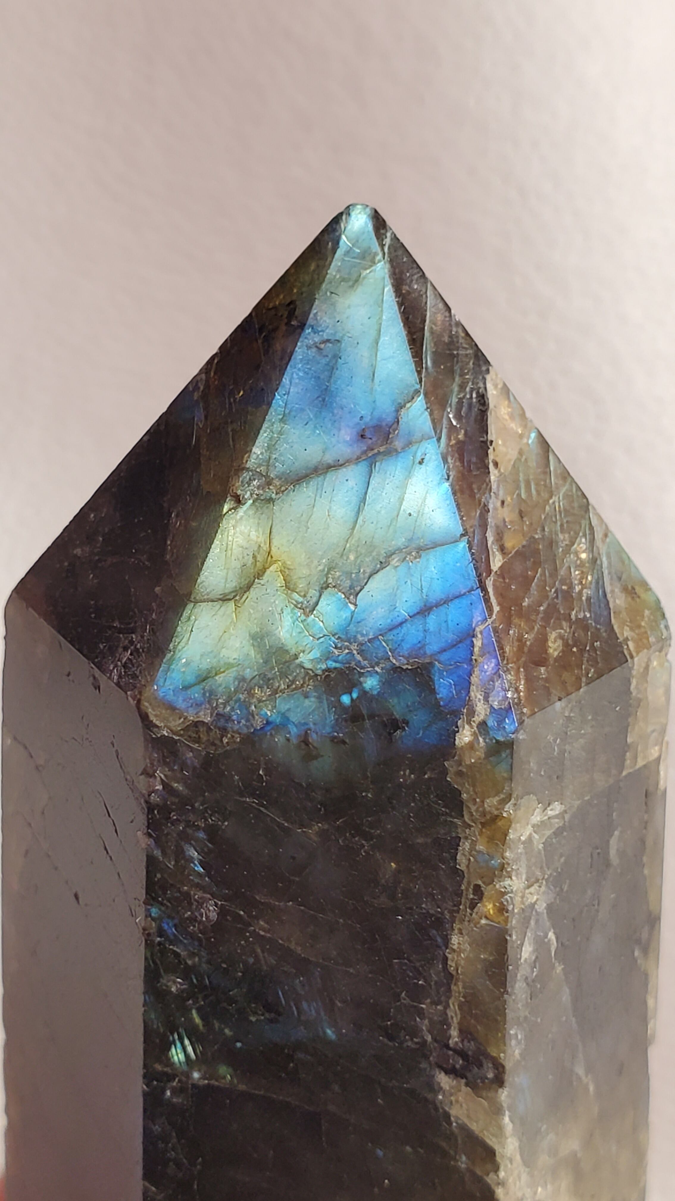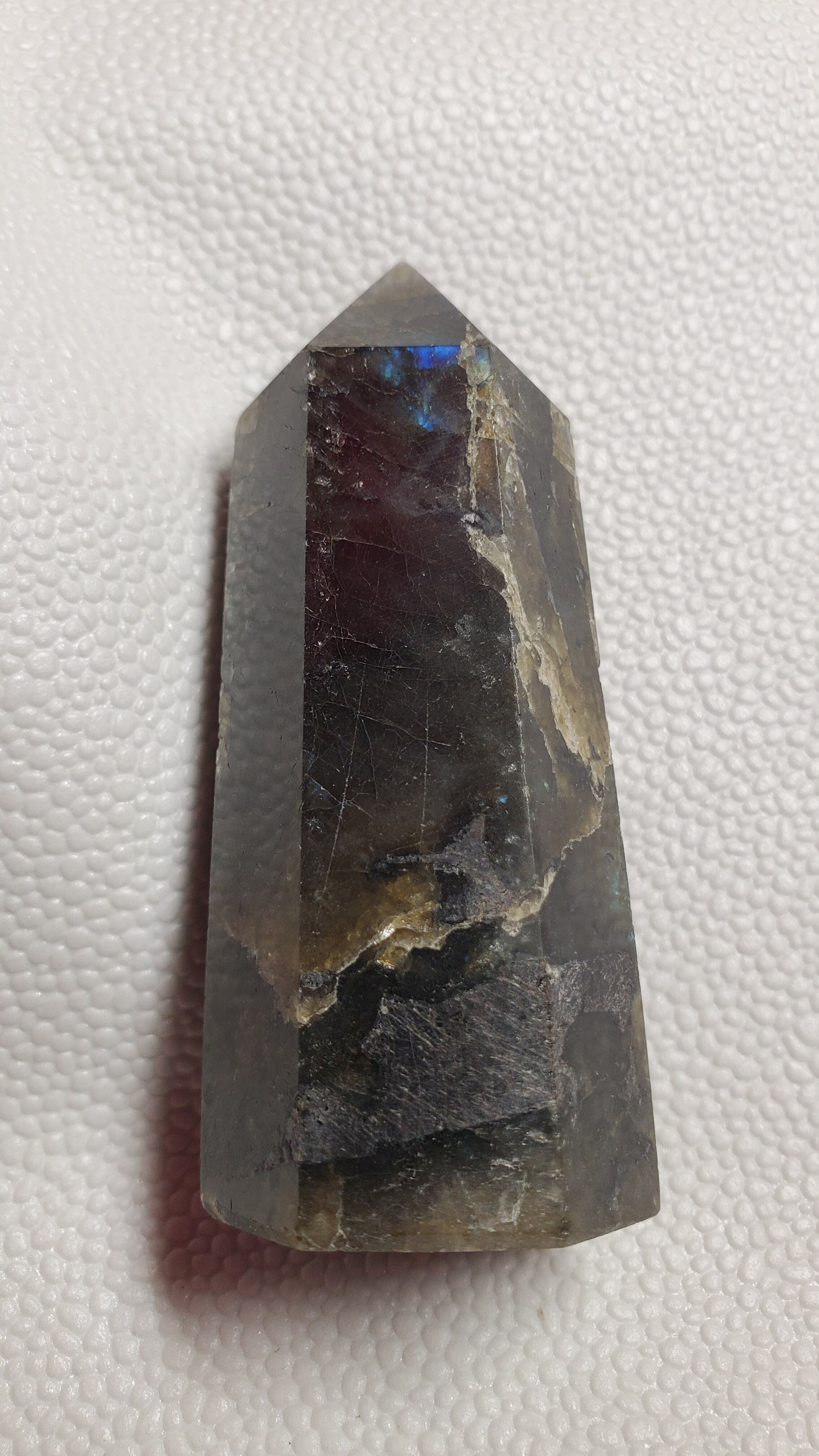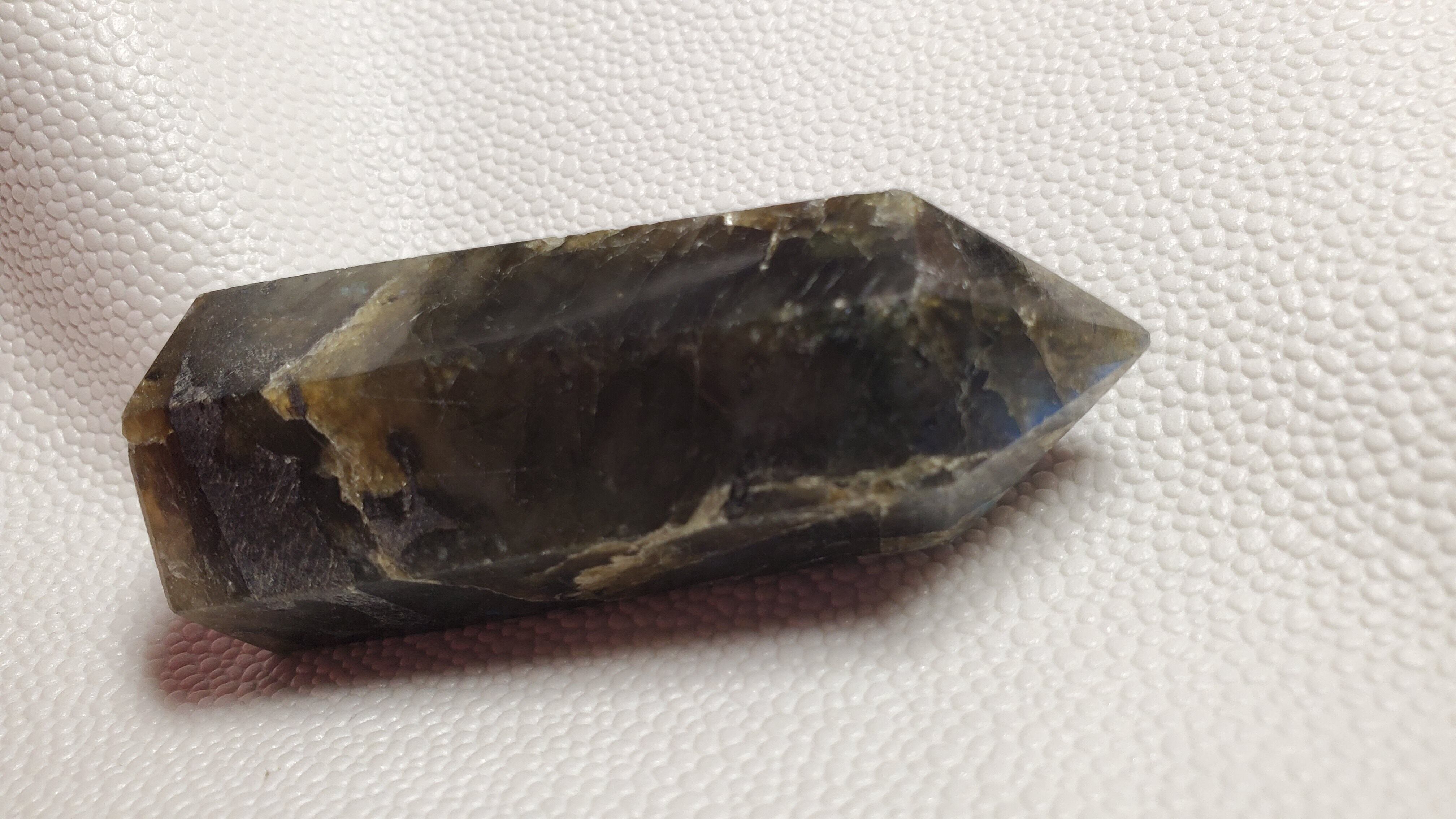 一見地味な色あいの石ですが、光の加減や見る角度によって、ブルー、グリーン、ゴールド、イエロー、ピンクなど、様々な色の輝きを見ることができます。まるで蝶の羽のような、美しく強い輝きこそがラブラドライトの魅力といえるでしょう。この独特の輝きは「ラブラドレッセンス(ラブラドルの光)」と呼ばれています。