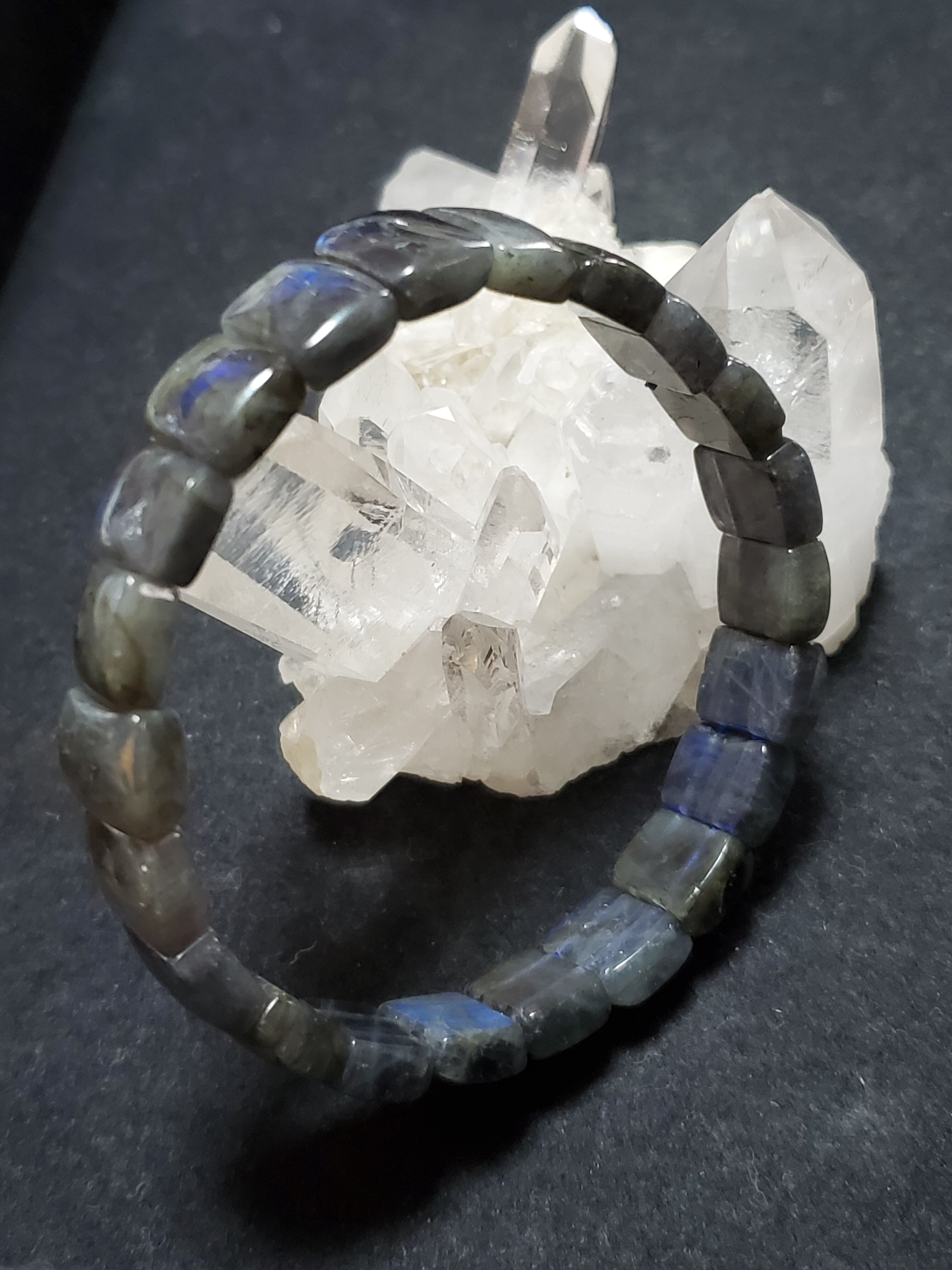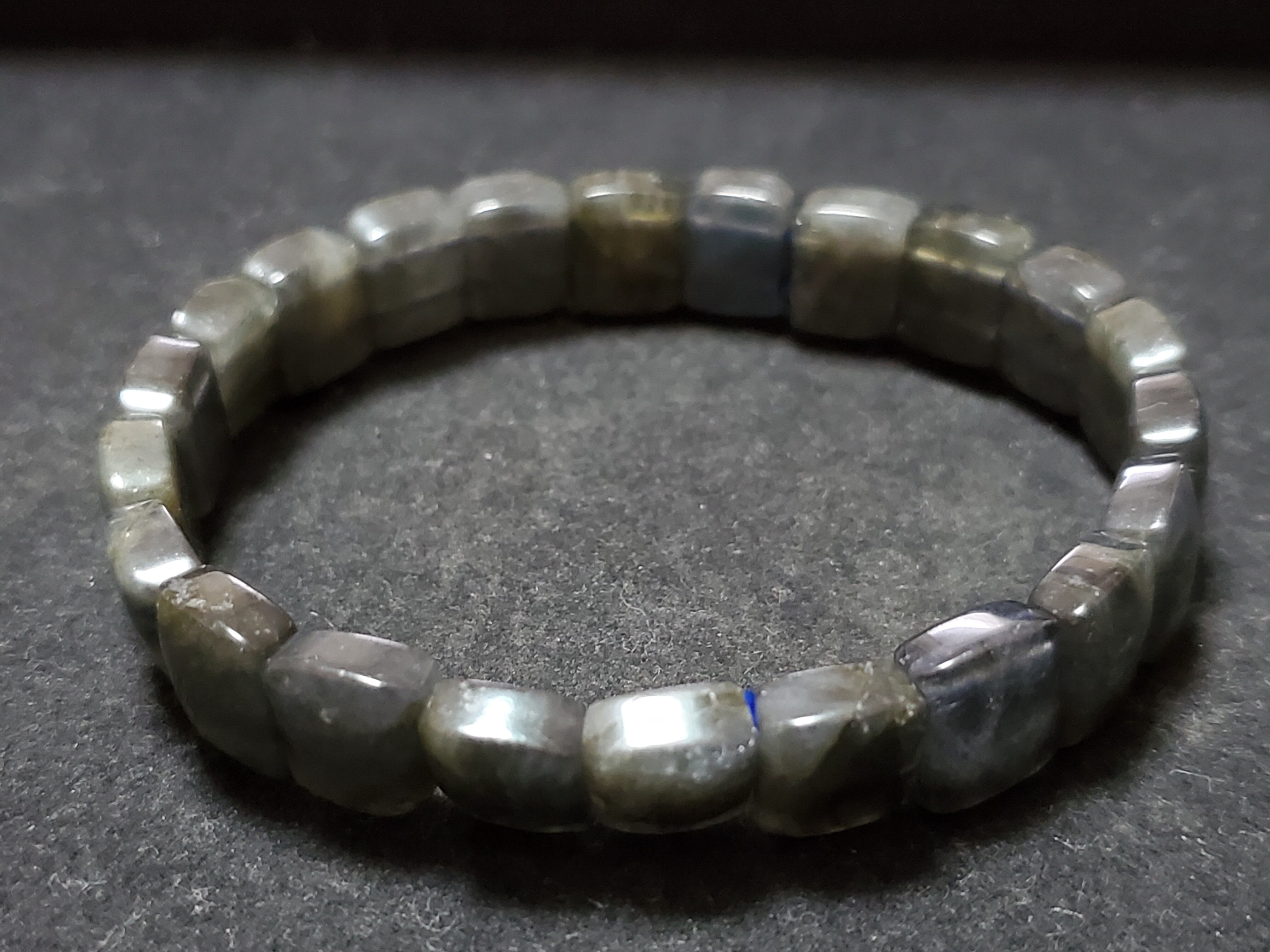 一見地味な色あいの石ですが、光の加減や見る角度によって、ブルー、グリーン、ゴールド、イエロー、ピンクなど、様々な色の輝きを見ることができます。まるで蝶の羽のような、美しく強い輝きこそがラブラドライトの魅力といえるでしょう。この独特の輝きは「ラブラドレッセンス(ラブラドルの光)」と呼ばれています。