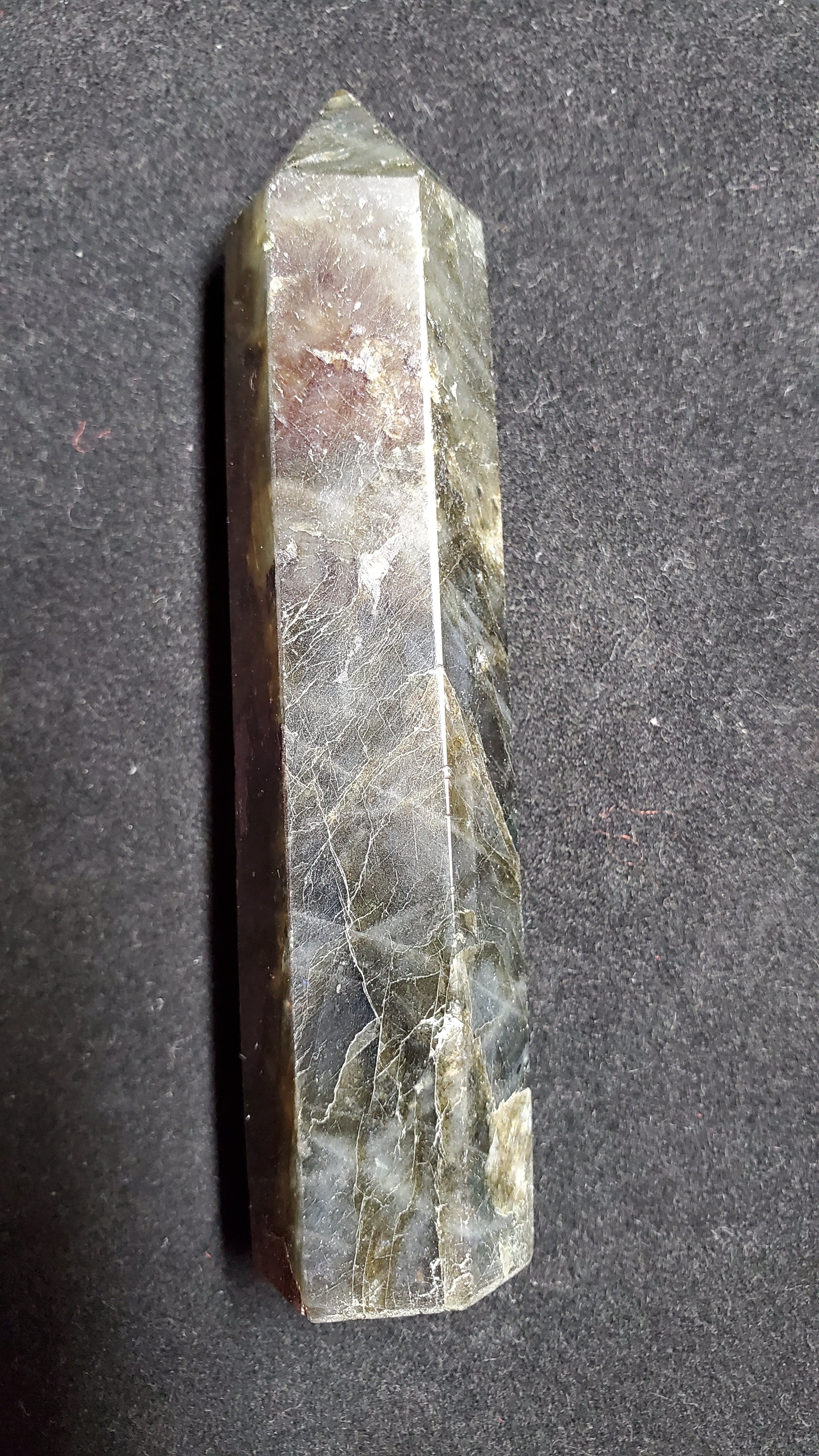 一見地味な色あいの石ですが、光の加減や見る角度によって、ブルー、グリーン、ゴールド、イエロー、ピンクなど、様々な色の輝きを見ることができます。まるで蝶の羽のような、美しく強い輝きこそがラブラドライトの魅力といえるでしょう。この独特の輝きは「ラブラドレッセンス(ラブラドルの光)」と呼ばれています。
