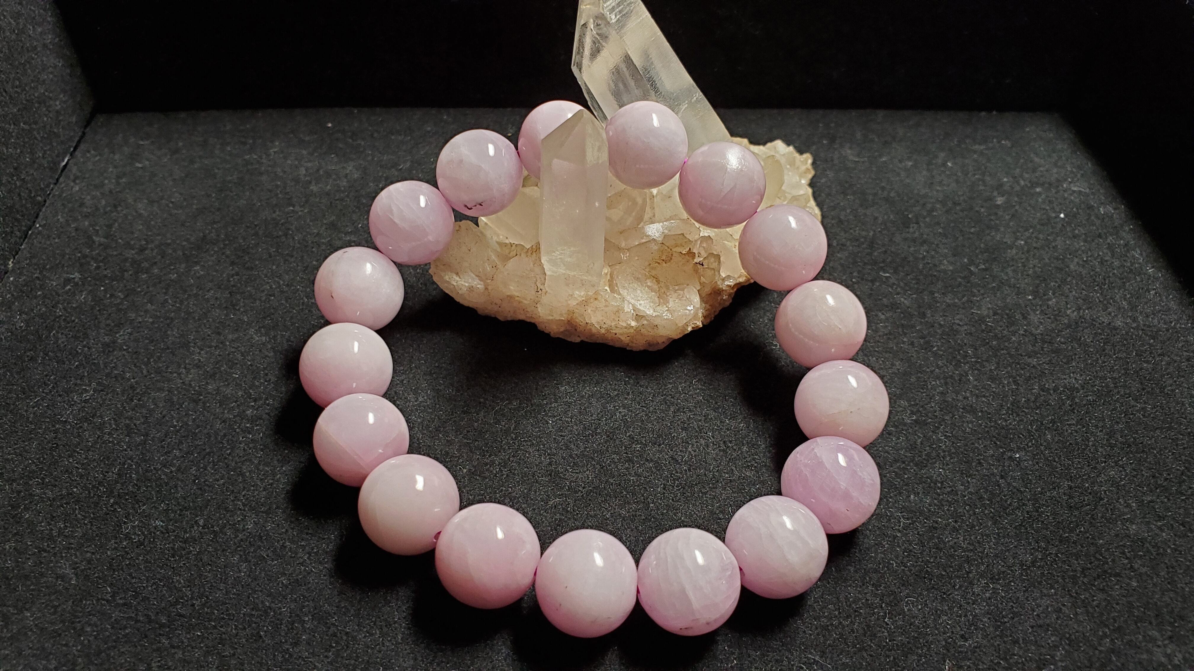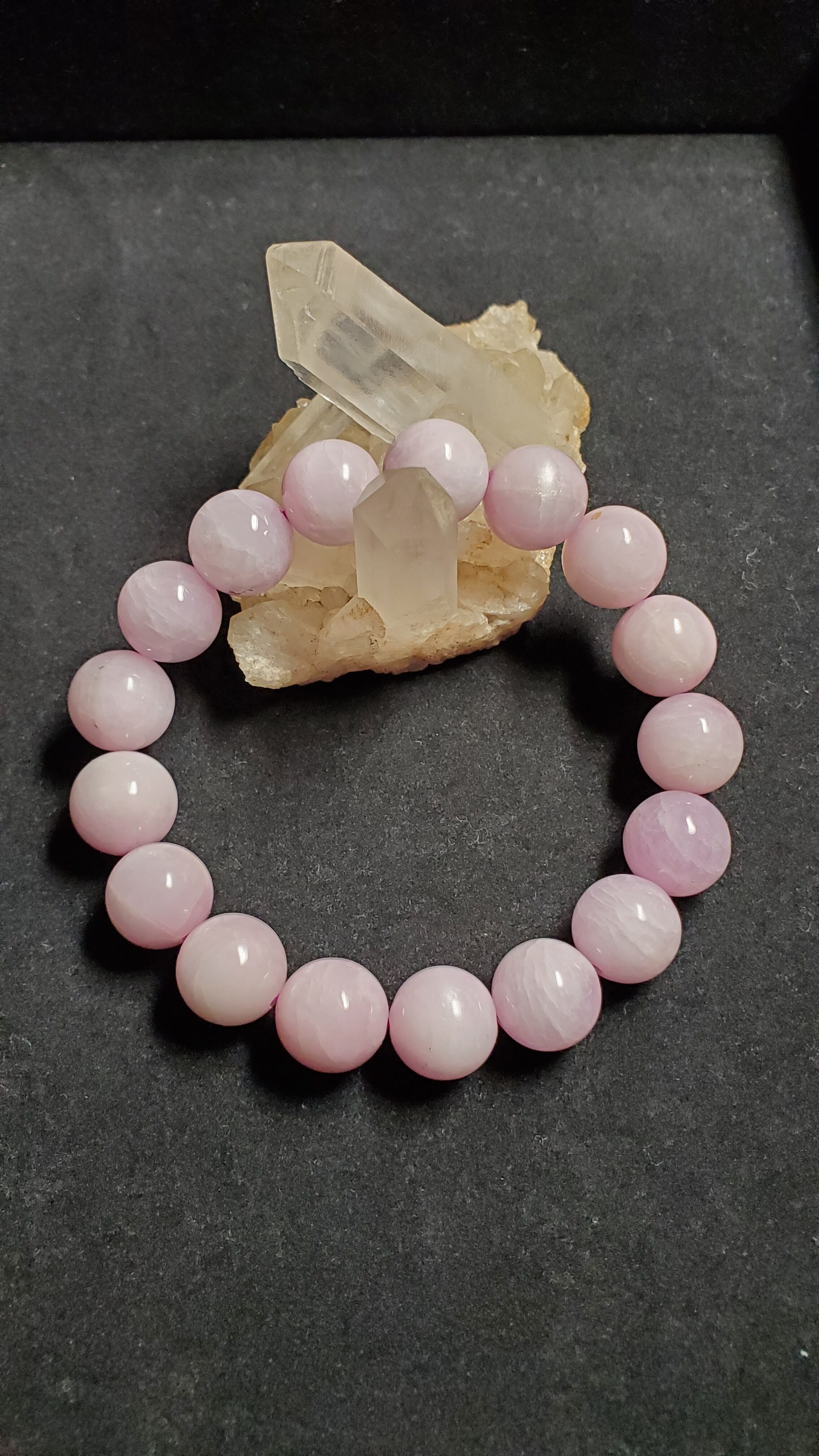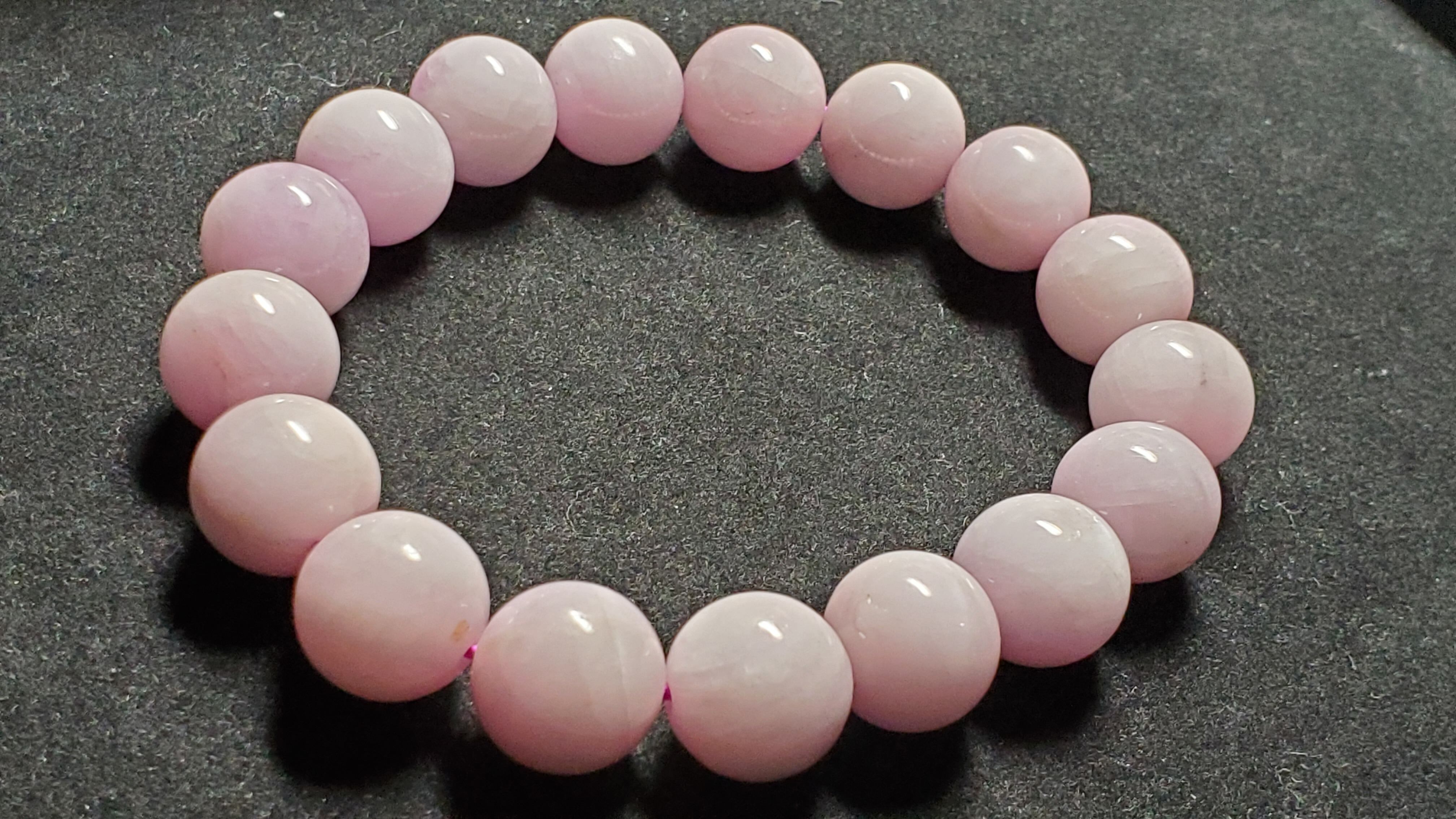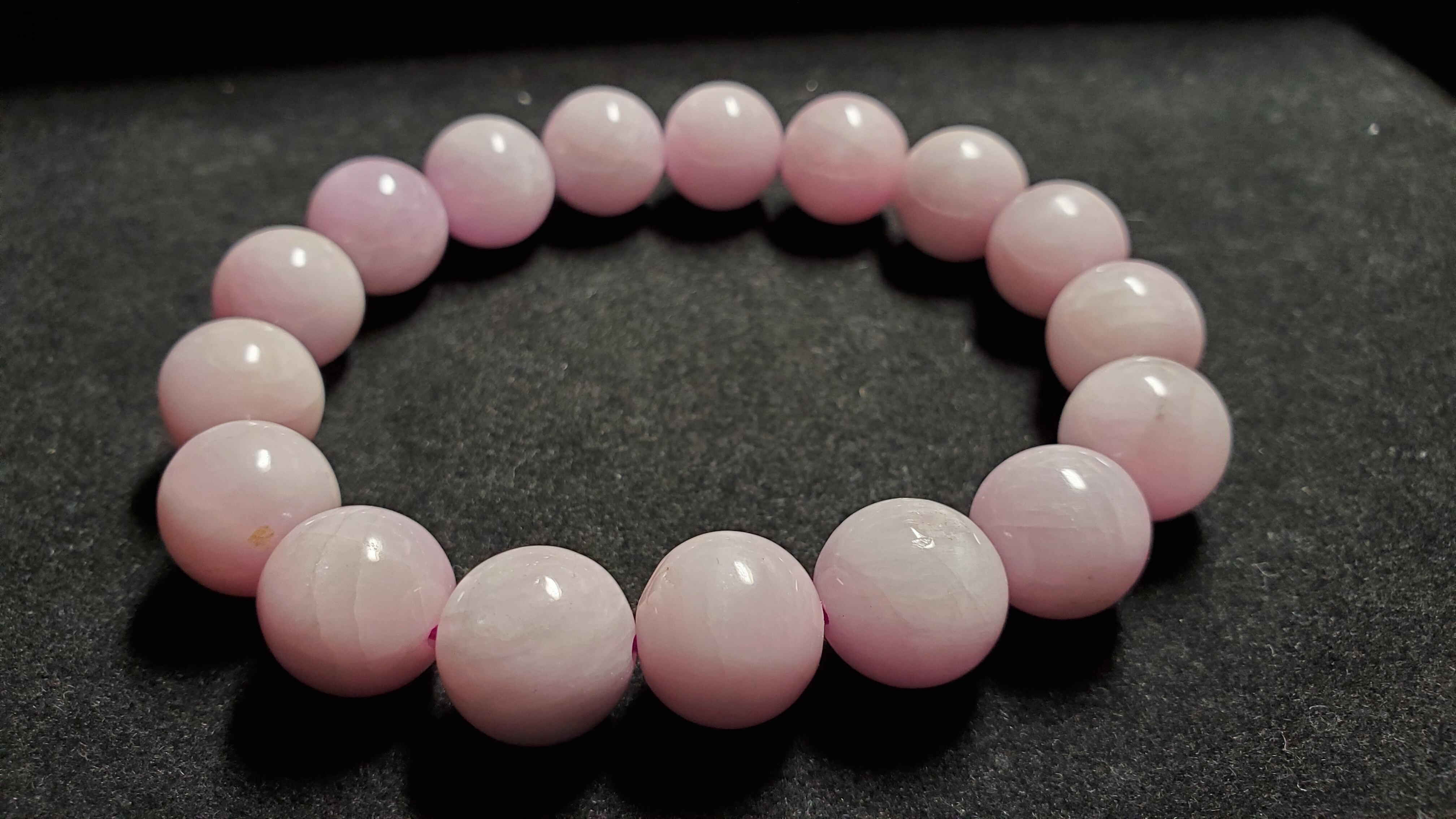 12㎜のクンツァイトのブレスレットです。内径は、16.5センチです。
