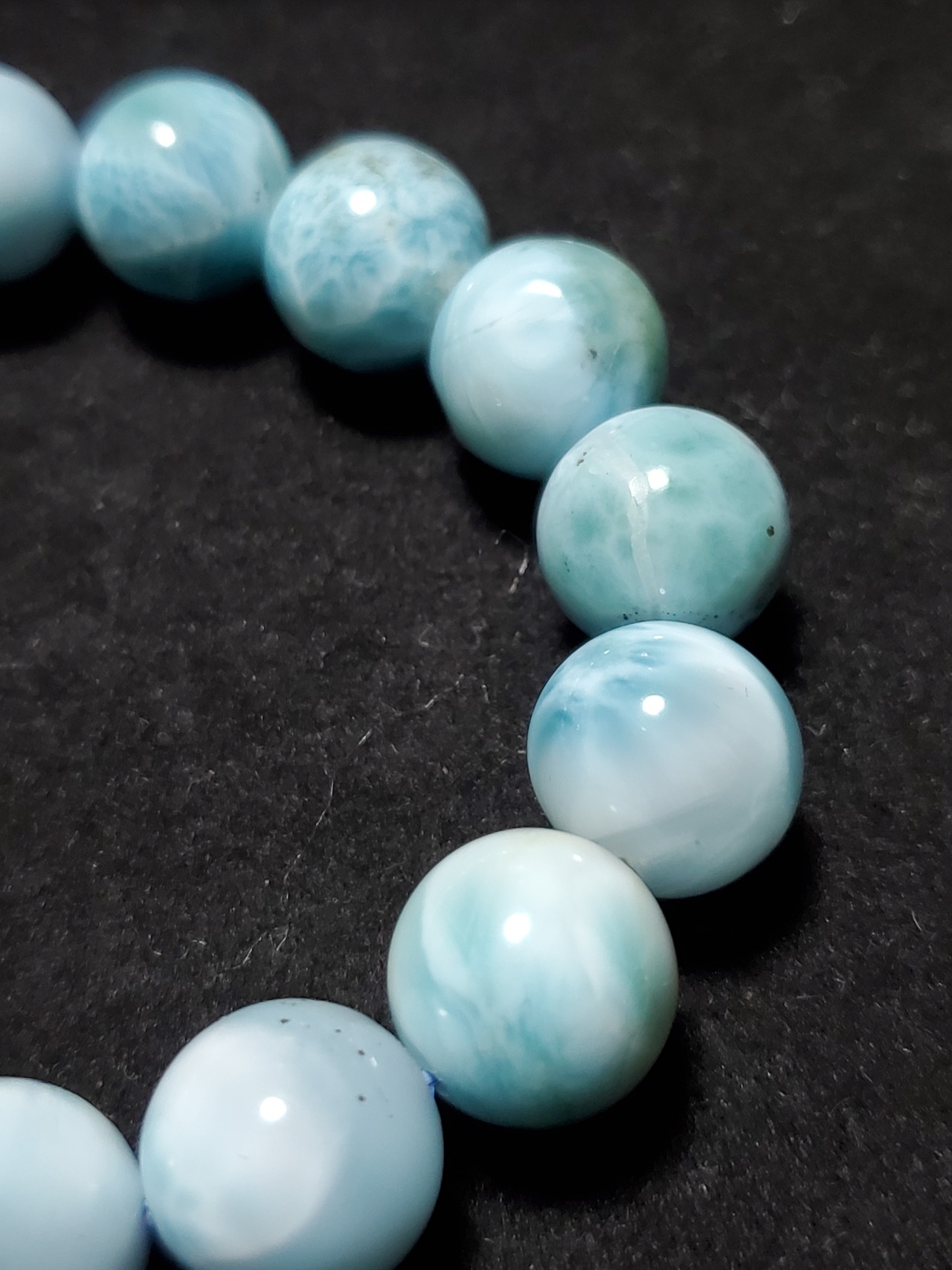 ラリマーは愛と平和を象徴し、全てを優しく包み込む、大きな慈愛のパワーに溢れています。安らぎと調和の波動で満たしてくれるので、ラリマーを身につけていると、静かで落ち着いた、人を寄せつけやすい雰囲気をかもし出すといわれています。コミュニケーション能力を高め、素直で優しい言葉や態度を引き出し、友人や家族、恋人との間に、愛に満ちた豊かな関係を築けるよう導いてくれるでしょう。
