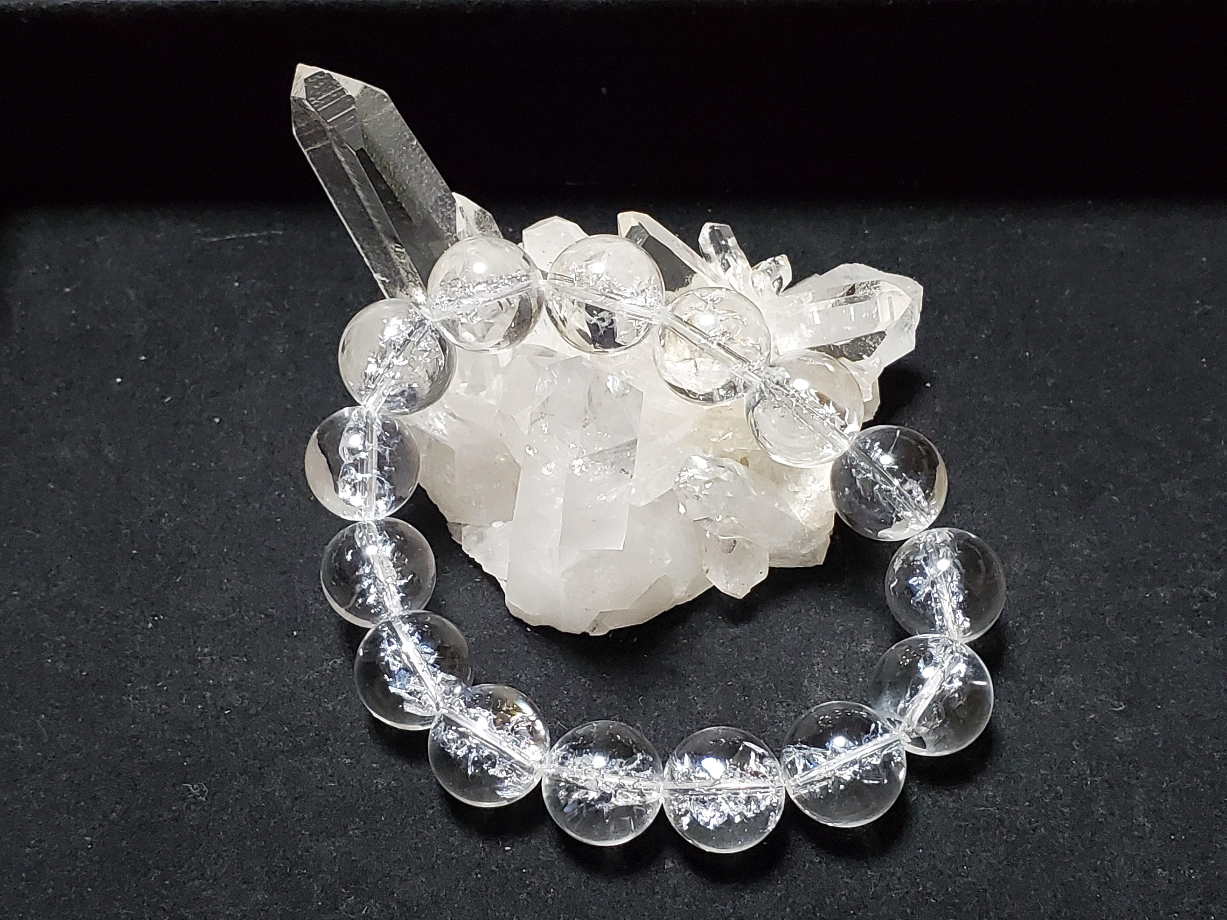 透き通った水晶のなかに虹を内包したアイリスクォーツ。光の角度によってキラキラと虹が現れる様はまさに美しいの一言です。アイリスクォーツは水晶の仲間なので、浄化や他のパワーストーンのパワーチャージなど万能の効果を発揮するのはもちろん、それ以外にも本水晶にはない特別なエネルギーを秘めているとされています。