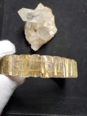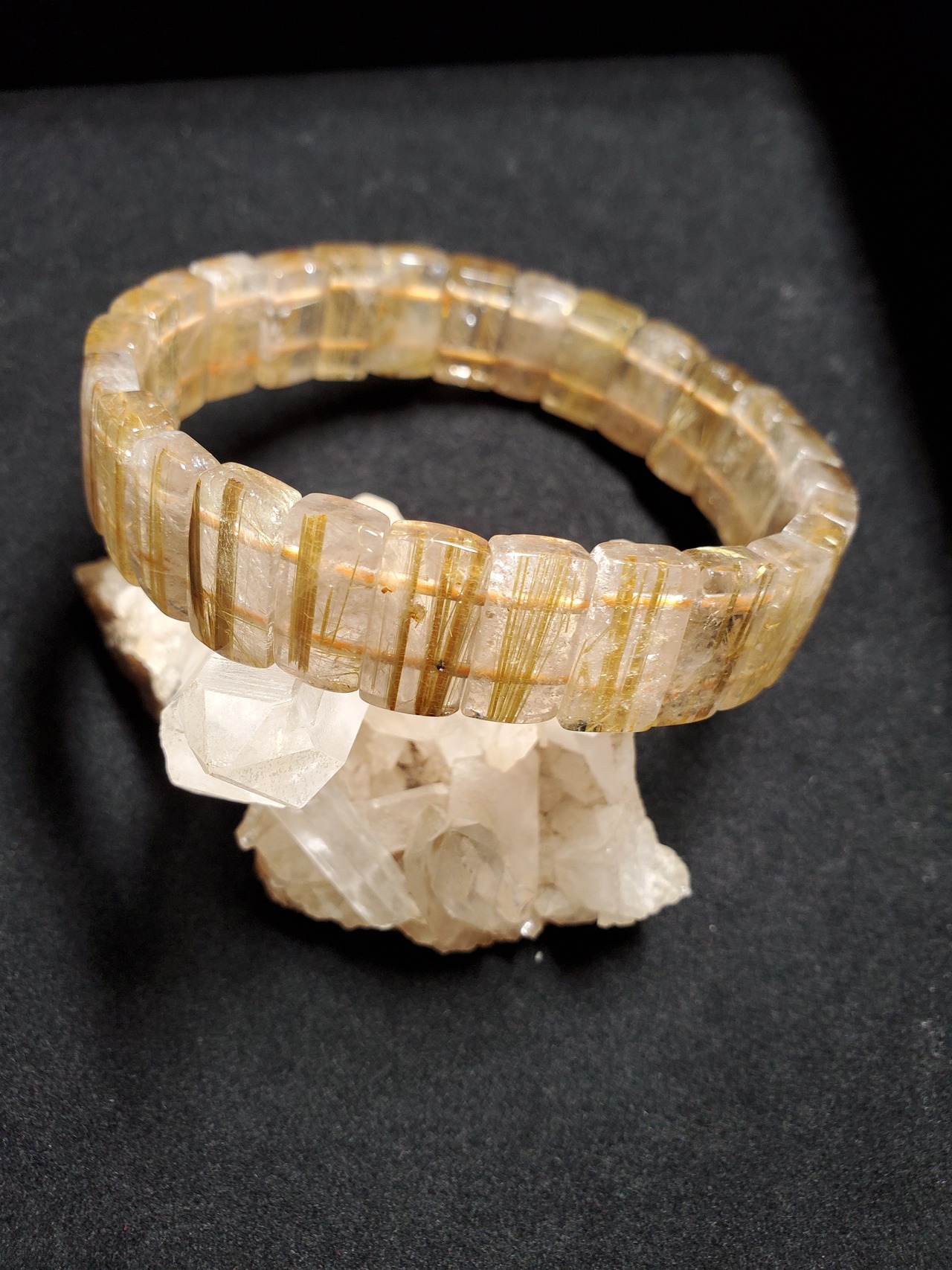 ゴールドルチルクォーツのバングルタイプのブレスレットです。こちらは、水晶の透明度がかなり高く非常に綺麗なルチルクォーツです。