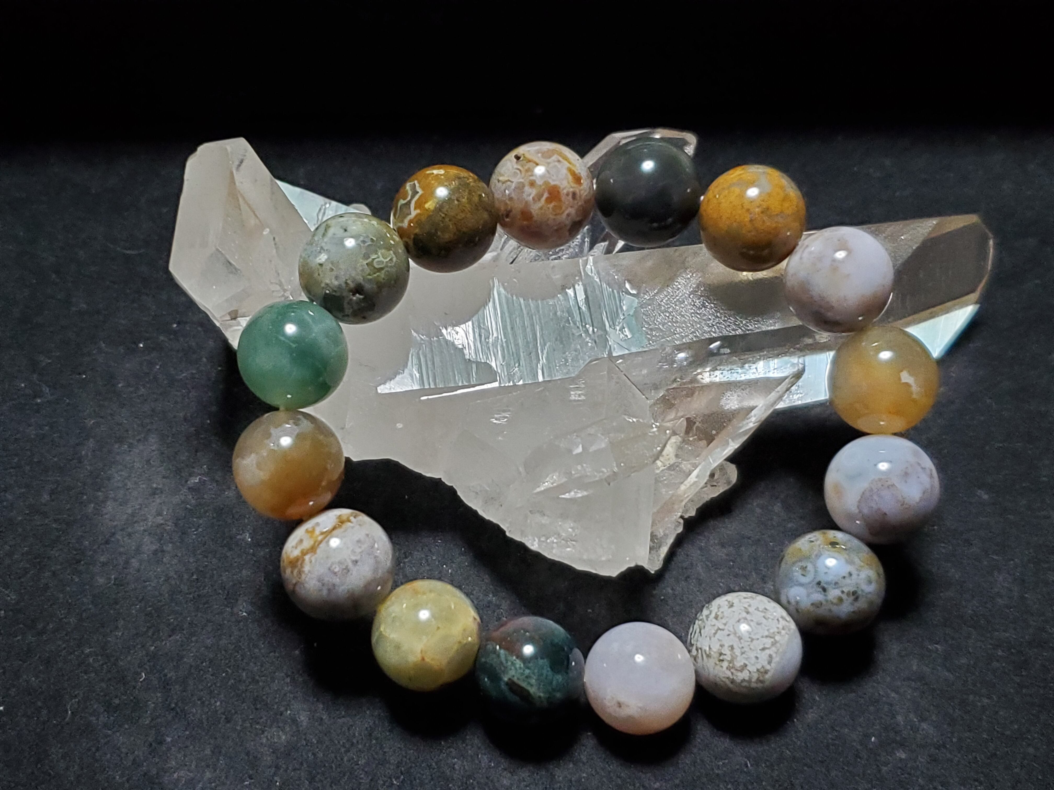 「オーシャンジャスパー」は様々なマイナスのエネルギーからその持ち主を守ってくれると言われています。「海」との関係が深い石であるということから、古くから『聖なる石』として崇められてきました。その「海」のもたらすパワーは持ち主の生命力を高め、身体の中の循環を良くしてくれると言われています。そのため、溜まった要らない毒素や老廃物を排出し健康へと導いてくれるそうです。