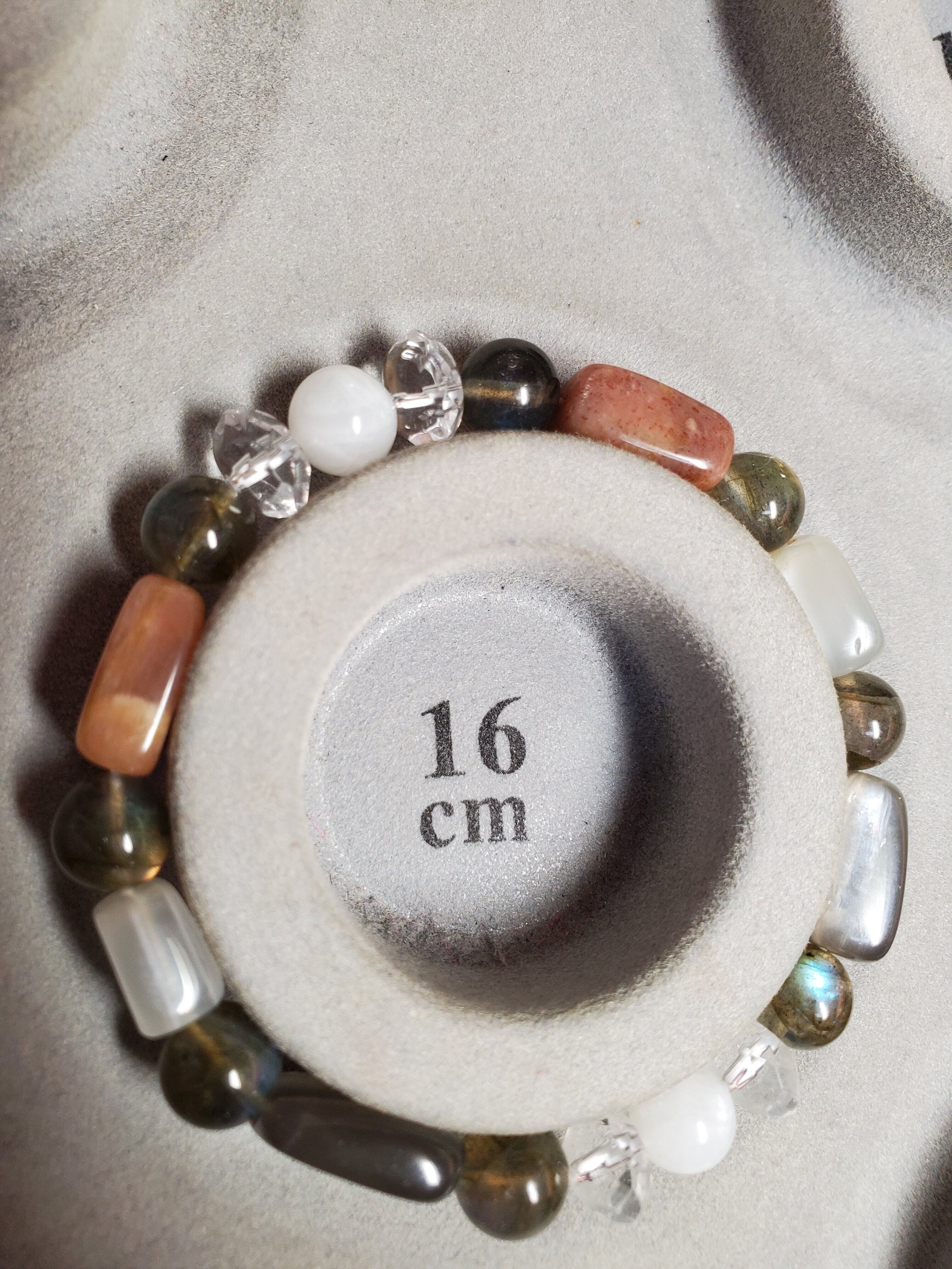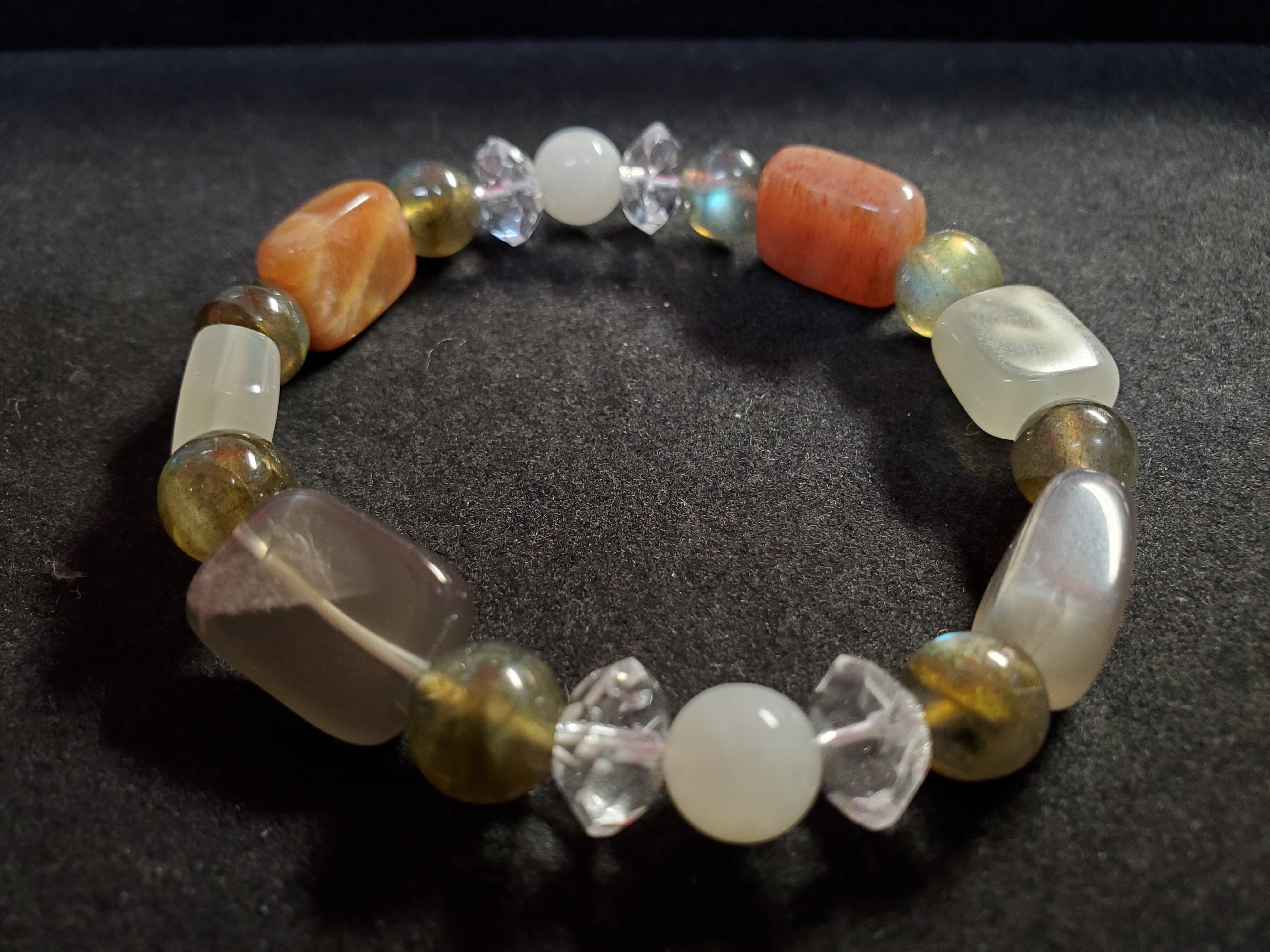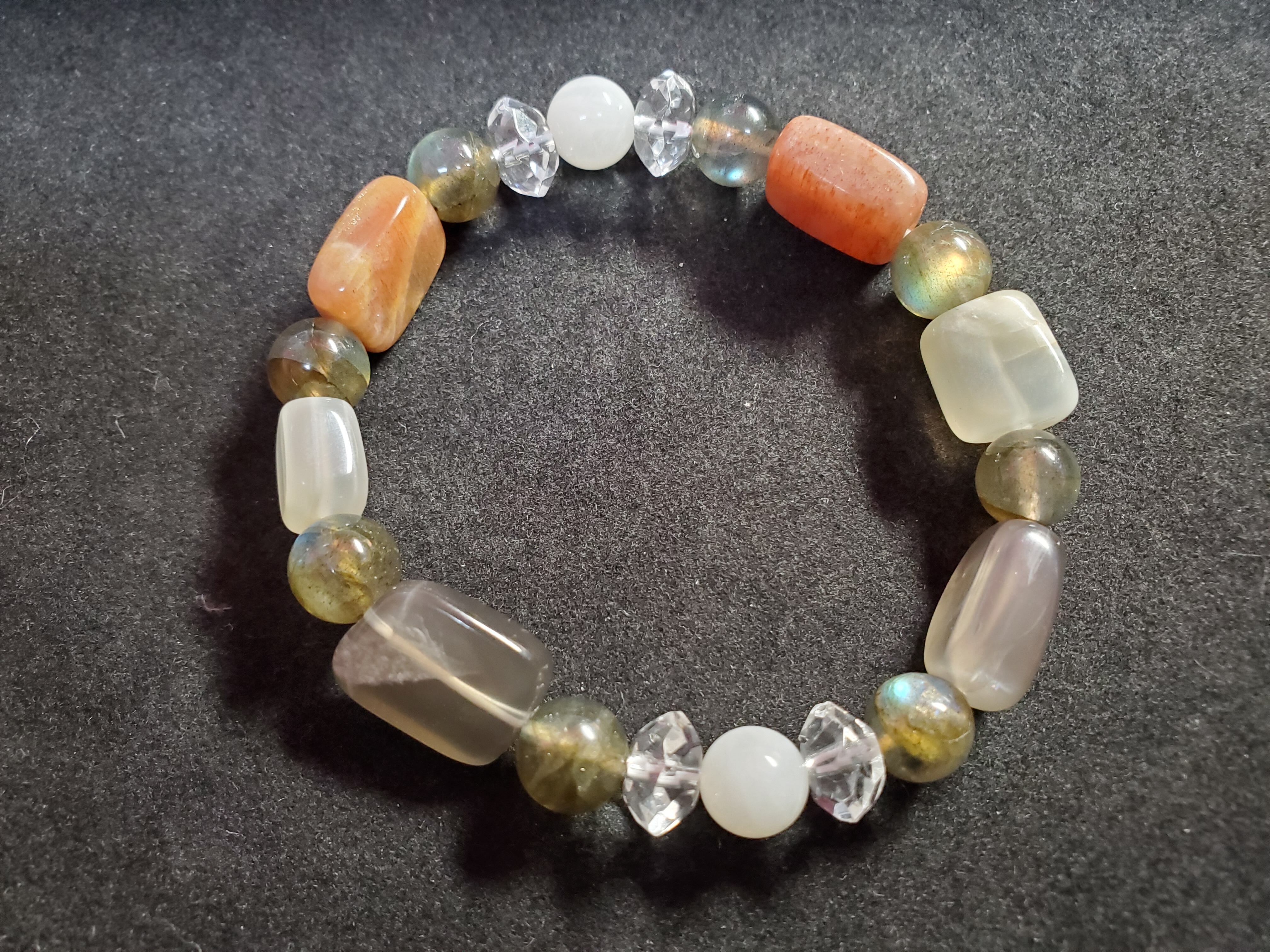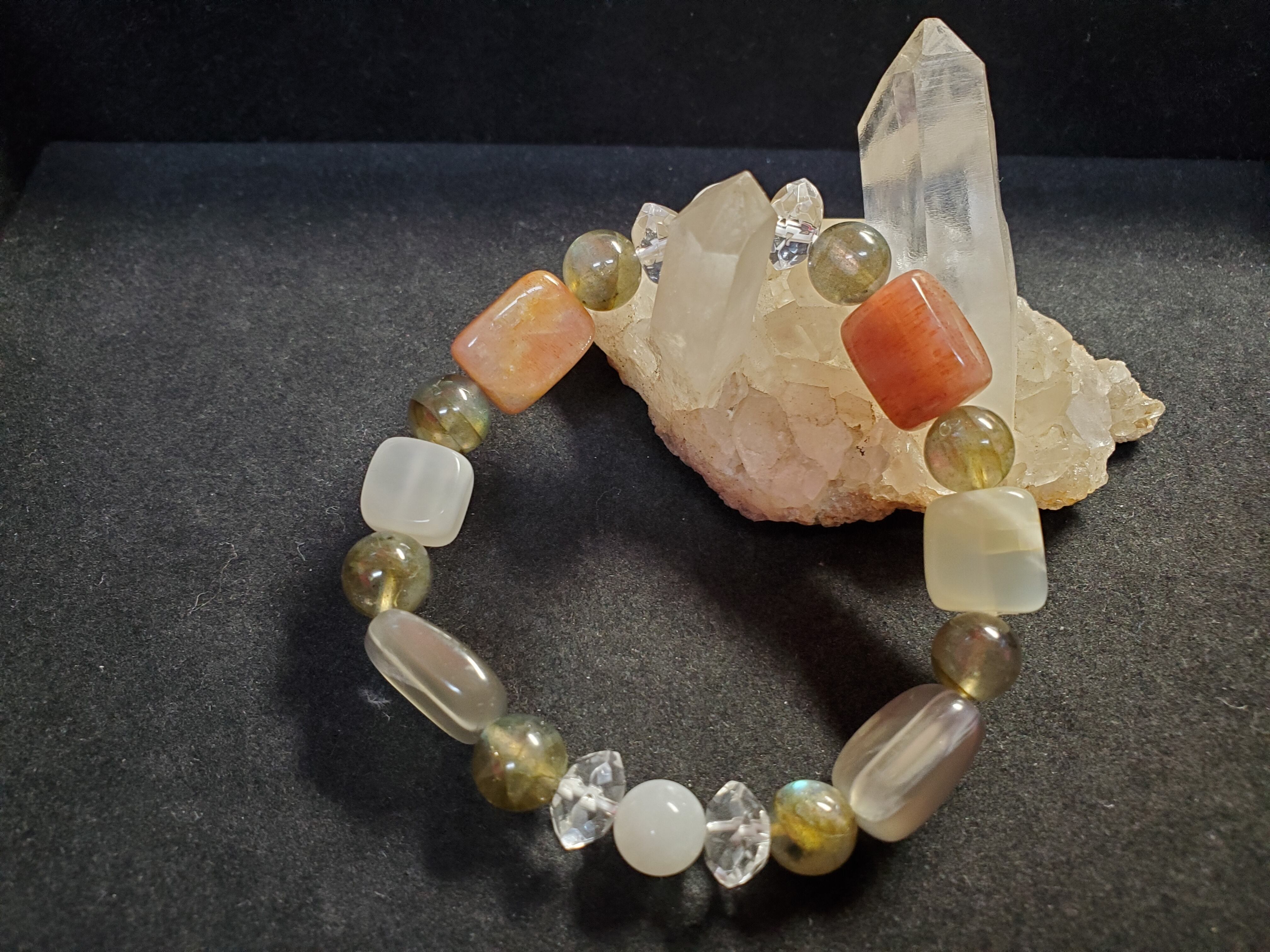 ラブラドライトやムーンストーンなどを使って仕上げました。