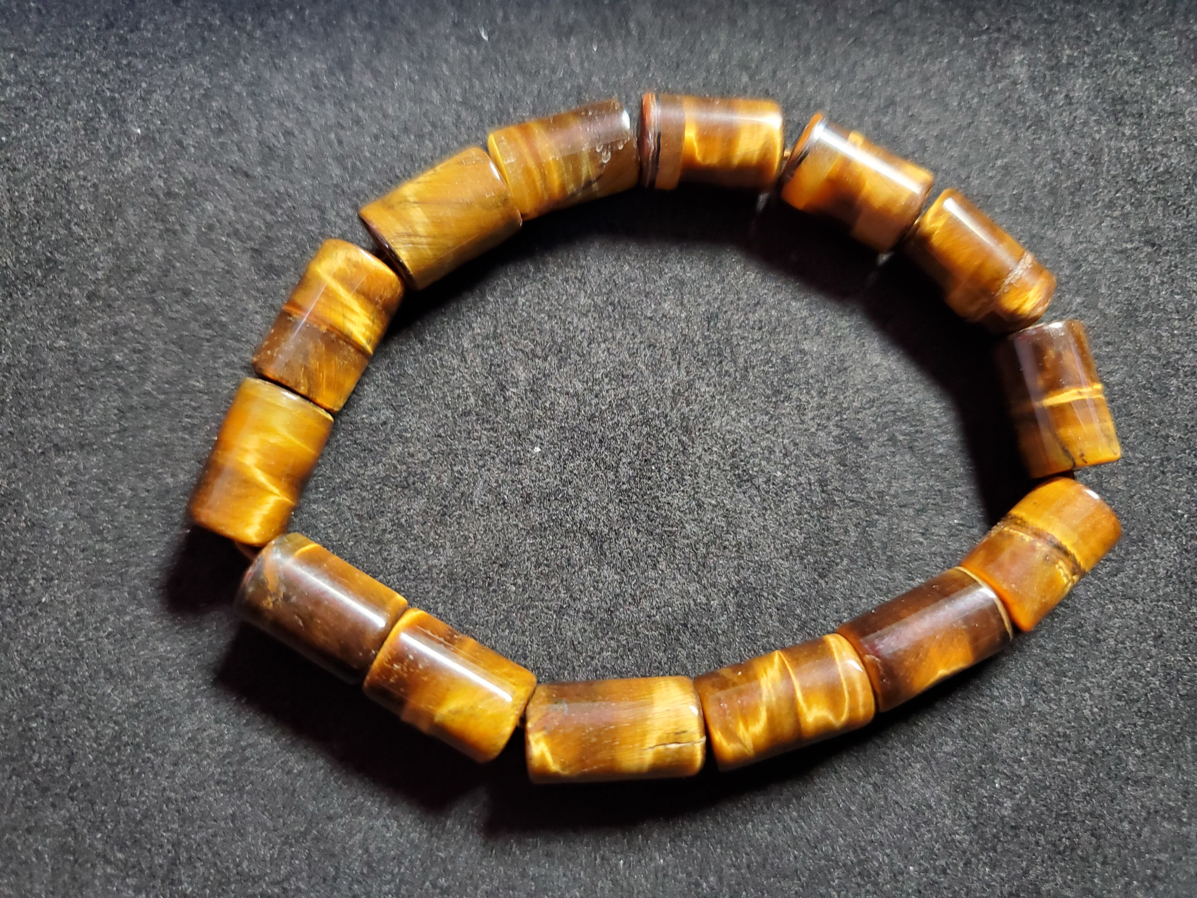 ドラム型のタイガーアイのブレスレットです。内径は16㎝です。パワーストーンを始めるには打ってつけで、働いてる方に人気のパワーストーンです(^o^)☆