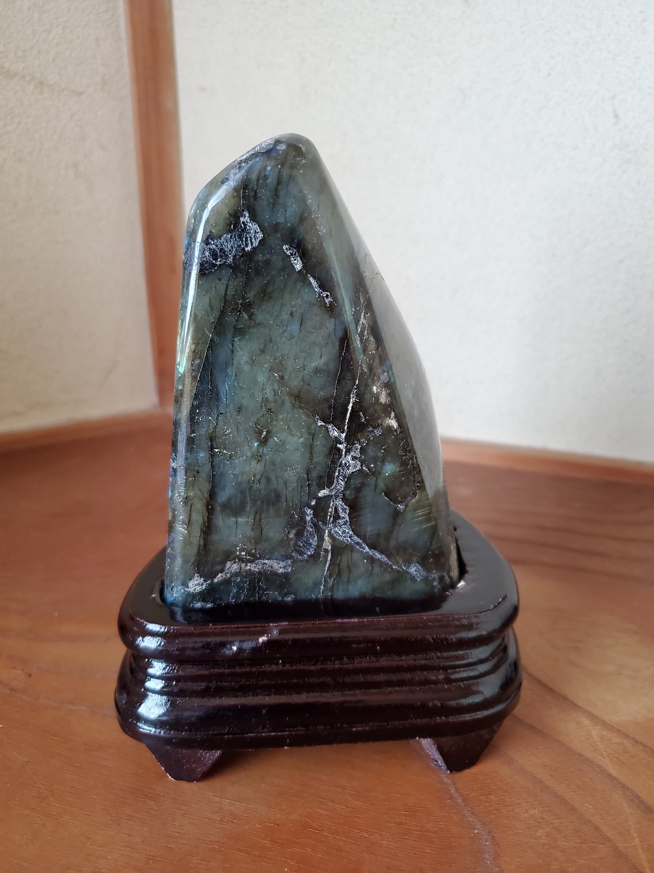 月、太陽を象徴するといわれるラブラドライトは、根気強い実行力を養い、信念を貫けるよう導く力があるとされますそして、特に「虹色」の光を持つものは、 「霊性を高める石」として尊ばれ、予知能力や霊的な能力を敏感にし、高次の意識レベルへ到達できるようオーラバランスを整えると言われています。 ラブラドライトの神秘的な輝きは銀河系の惑星から宿ったと言われ、宇宙の叡智を秘めたものとされます。その果てしなく壮大な宇宙空間に広がる神秘のエネル ギーが、人間の意識レベルを超えた鋭いインスピレーションをもたらし、直感力・洞察力・創造性を高めてくれるでしょう。 また、神秘的な波動が強く“魂のルーツ”を象徴する石とも言われ、深く眠った魂レベルでの意識・記憶力を目覚めさせ潜在能力を引き出してくれます。 自信を失いかけた時に、生まれた意味・生きる意味を探し求める人の魂にそっと語りかけ、真理の追求し魂レベルでの自己への探求へと導きます。 魂の成長を促すことで抑圧された感情を解放し、今を生きる力を引き出してくれるのです。エネルギーを良い形で循環させるラブラドライトは、ネガティブなエ ネルギーを除去するのにも有益な石で、ストレスや悪いエネルギーからの要因で起こる精神的な損傷に対しても素晴らしい癒しを施してくれますよ。 自分に合う仕事・環境・人脈を引き寄せるパワーがあるので、転職や就職、自分と価値観の近い人や共通点を持つ人に出会いたいと願う時に力を貸してくれる石 です。