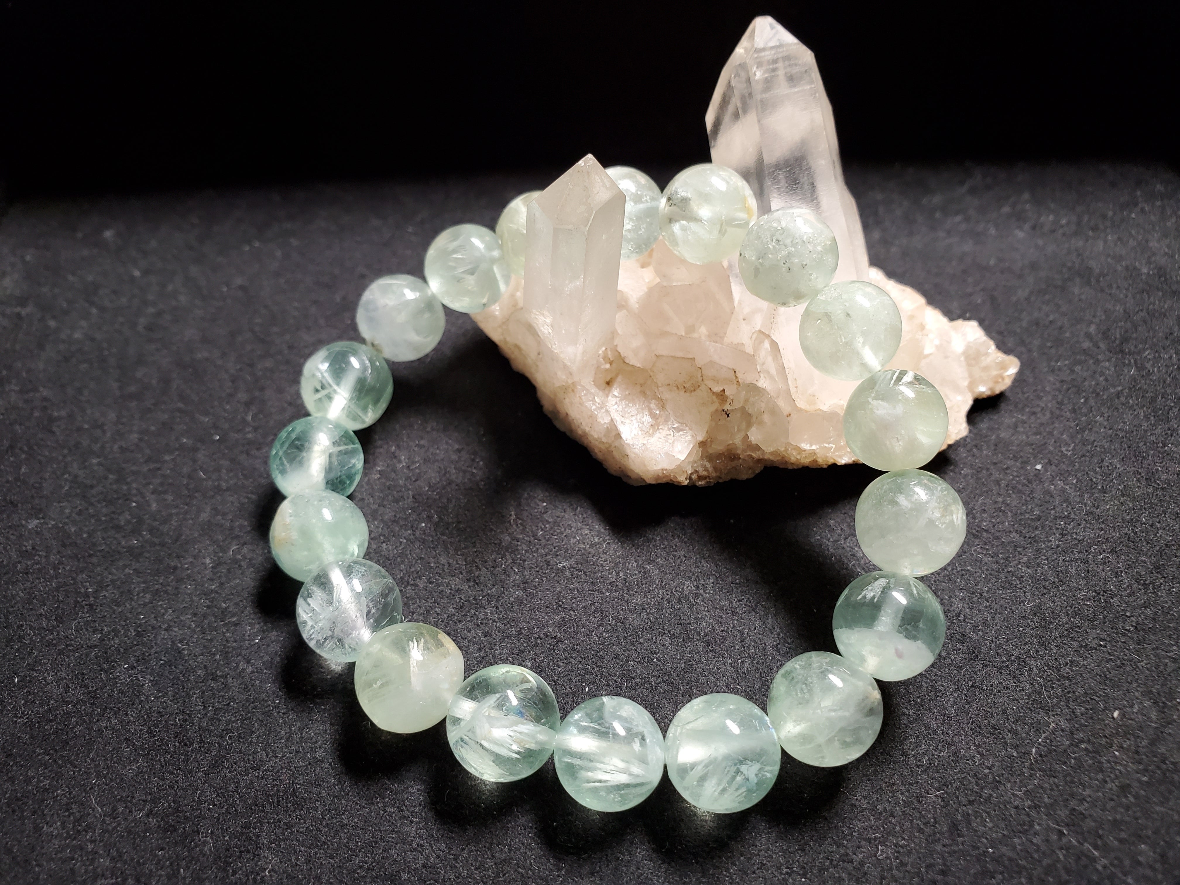 10.5㎜のエンジェルフェザーフローライトのブレスレットです。内径は、16.5㎝です。