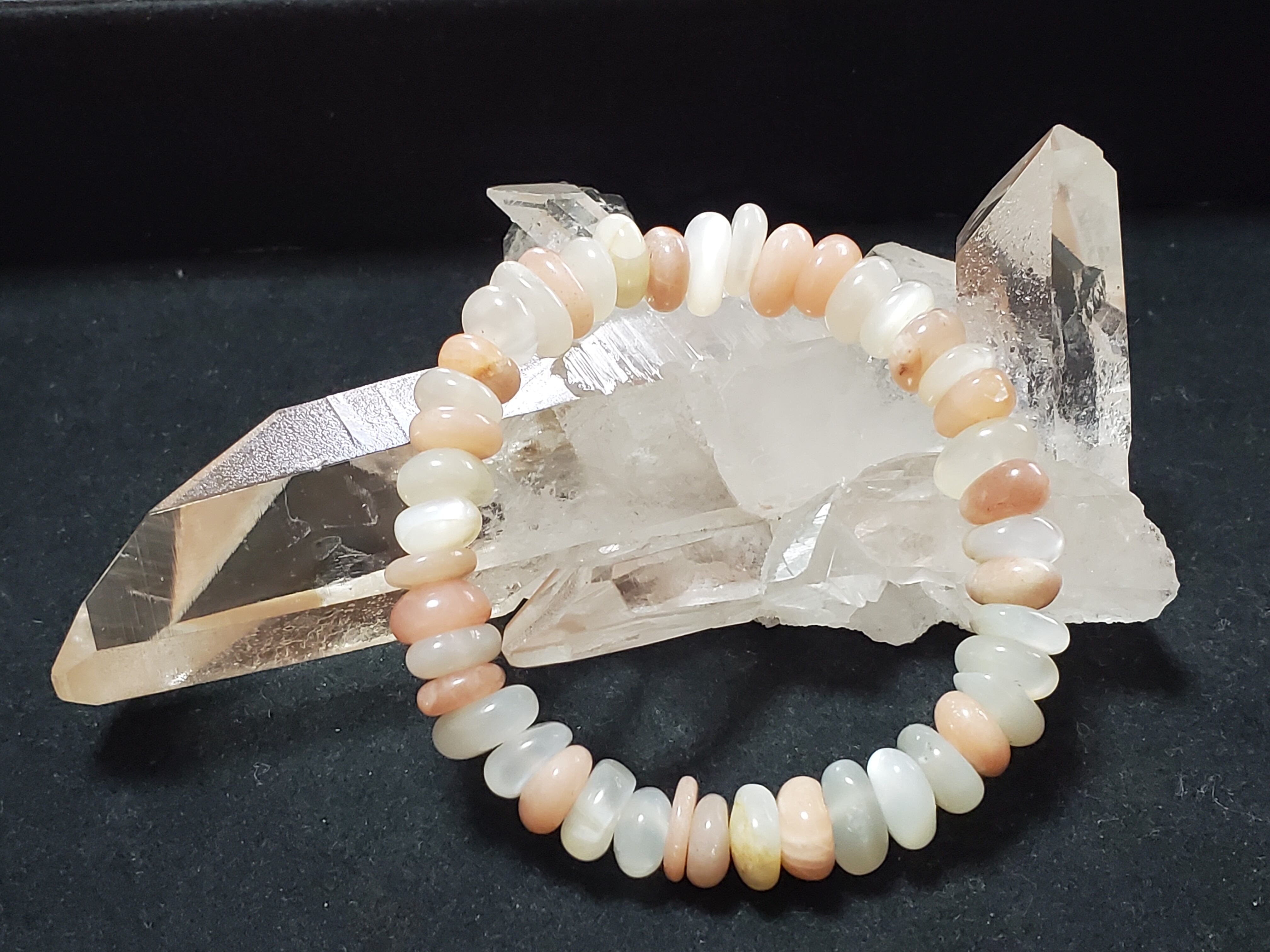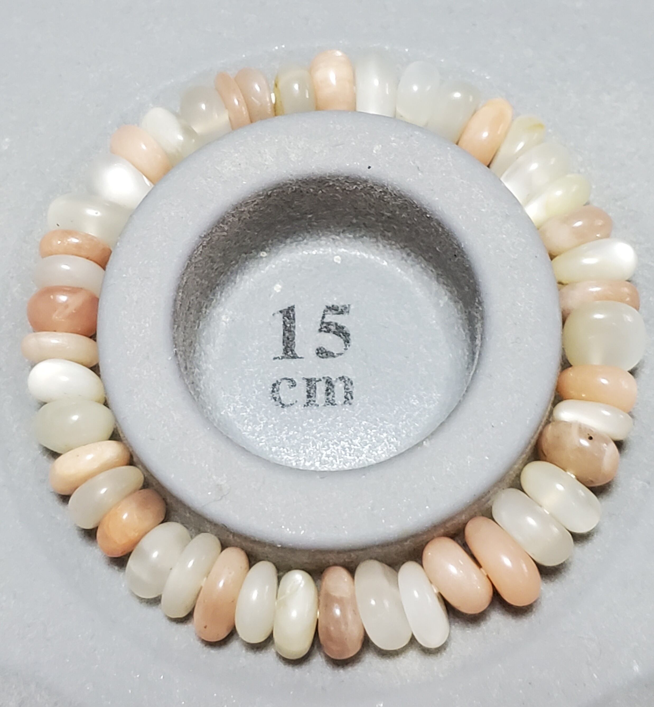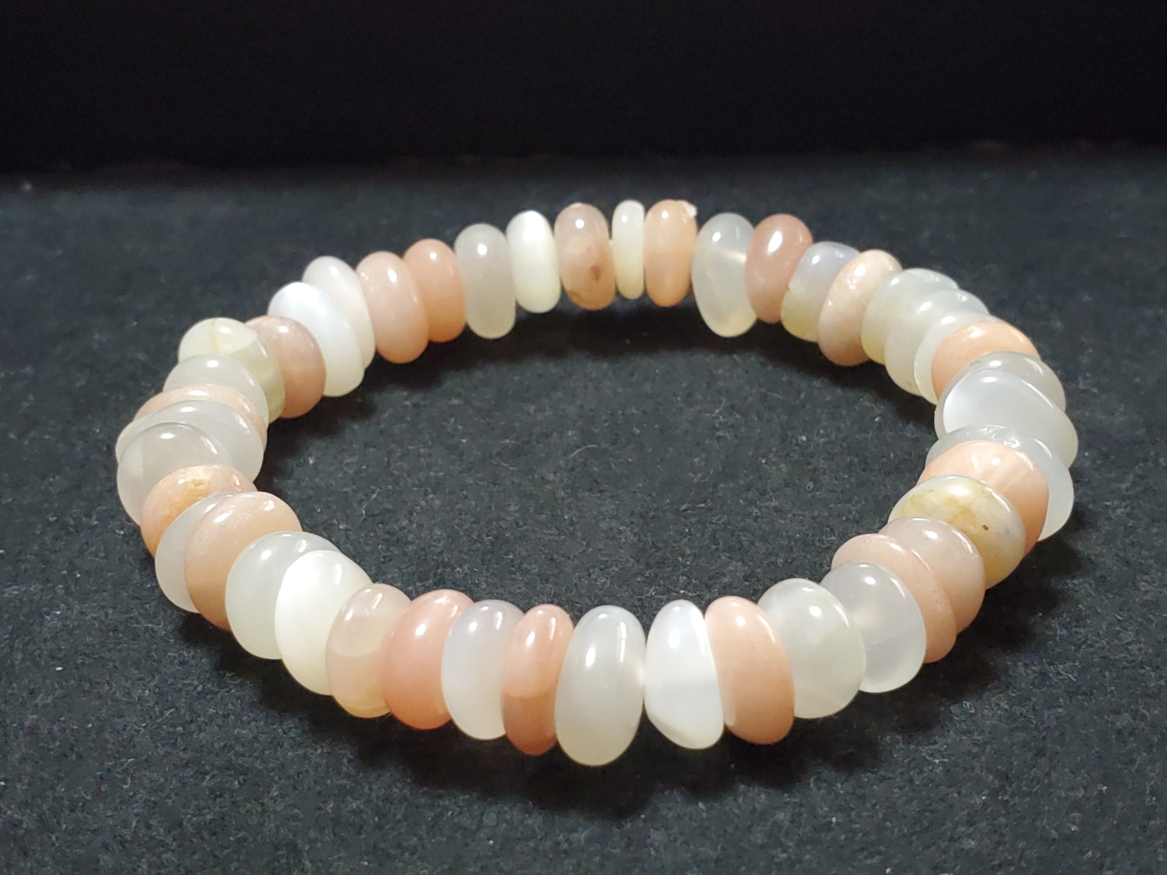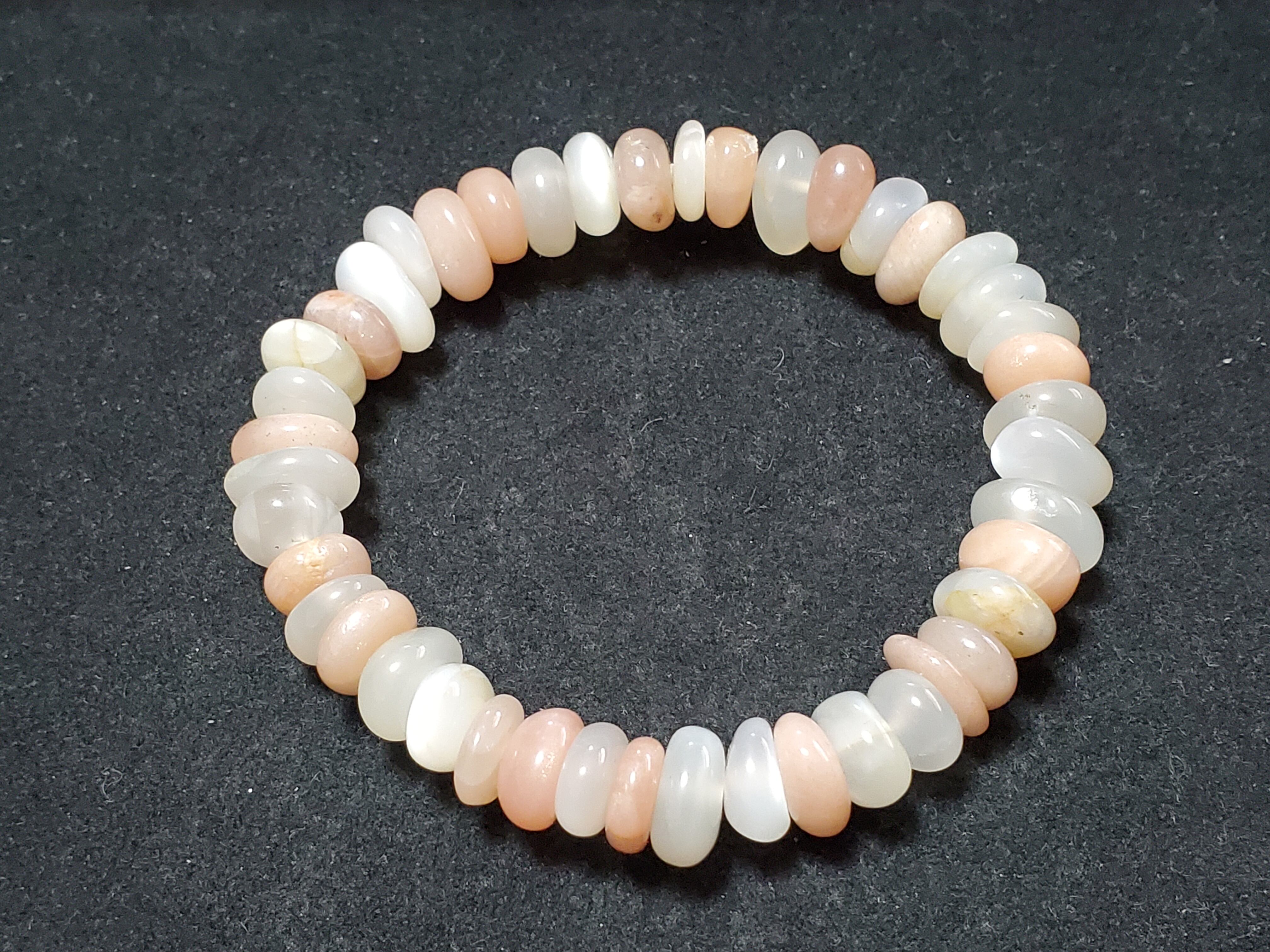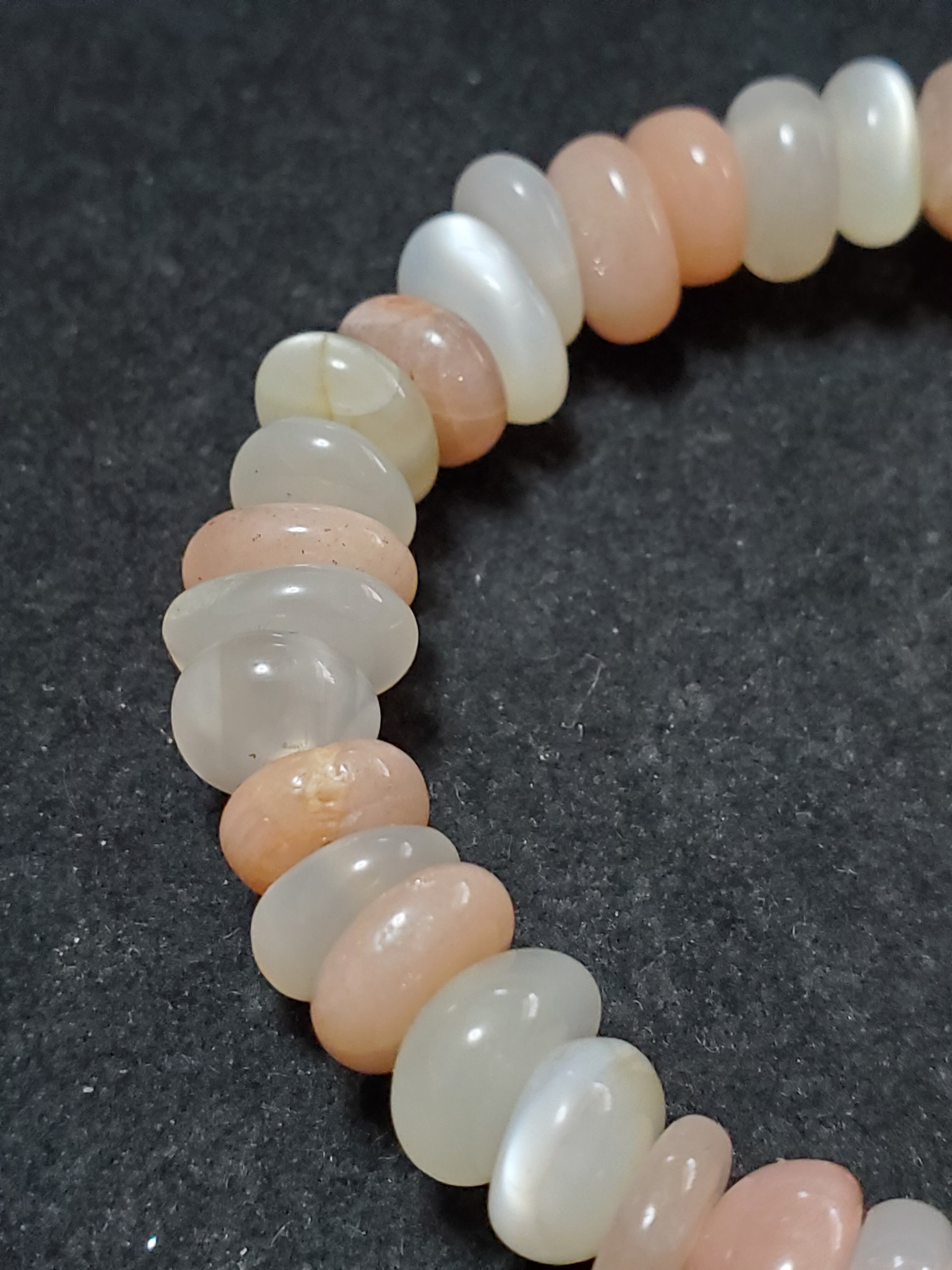 ミックスムーンストーンのタンブルブレスレットです。内径は16.5cmです。