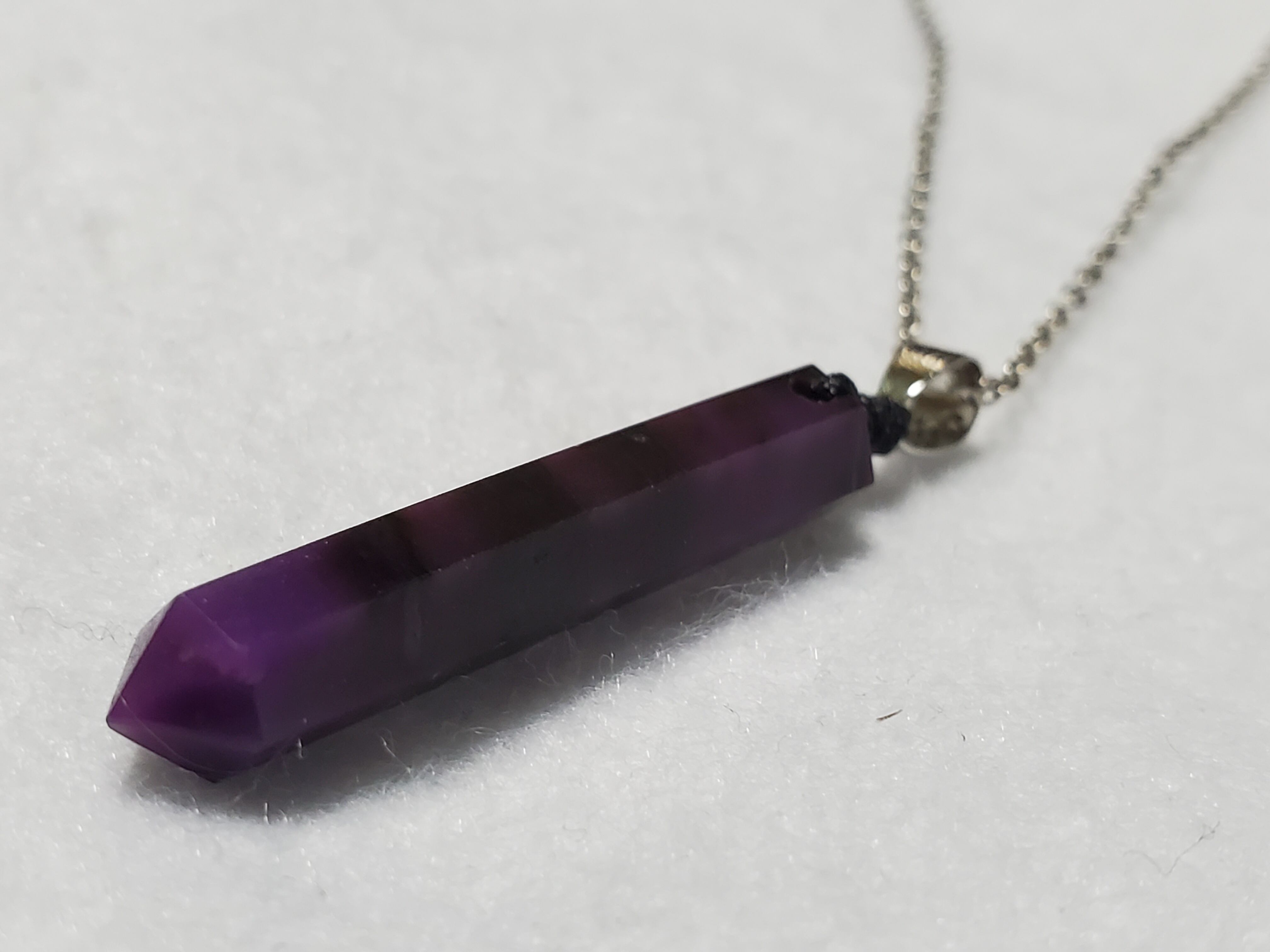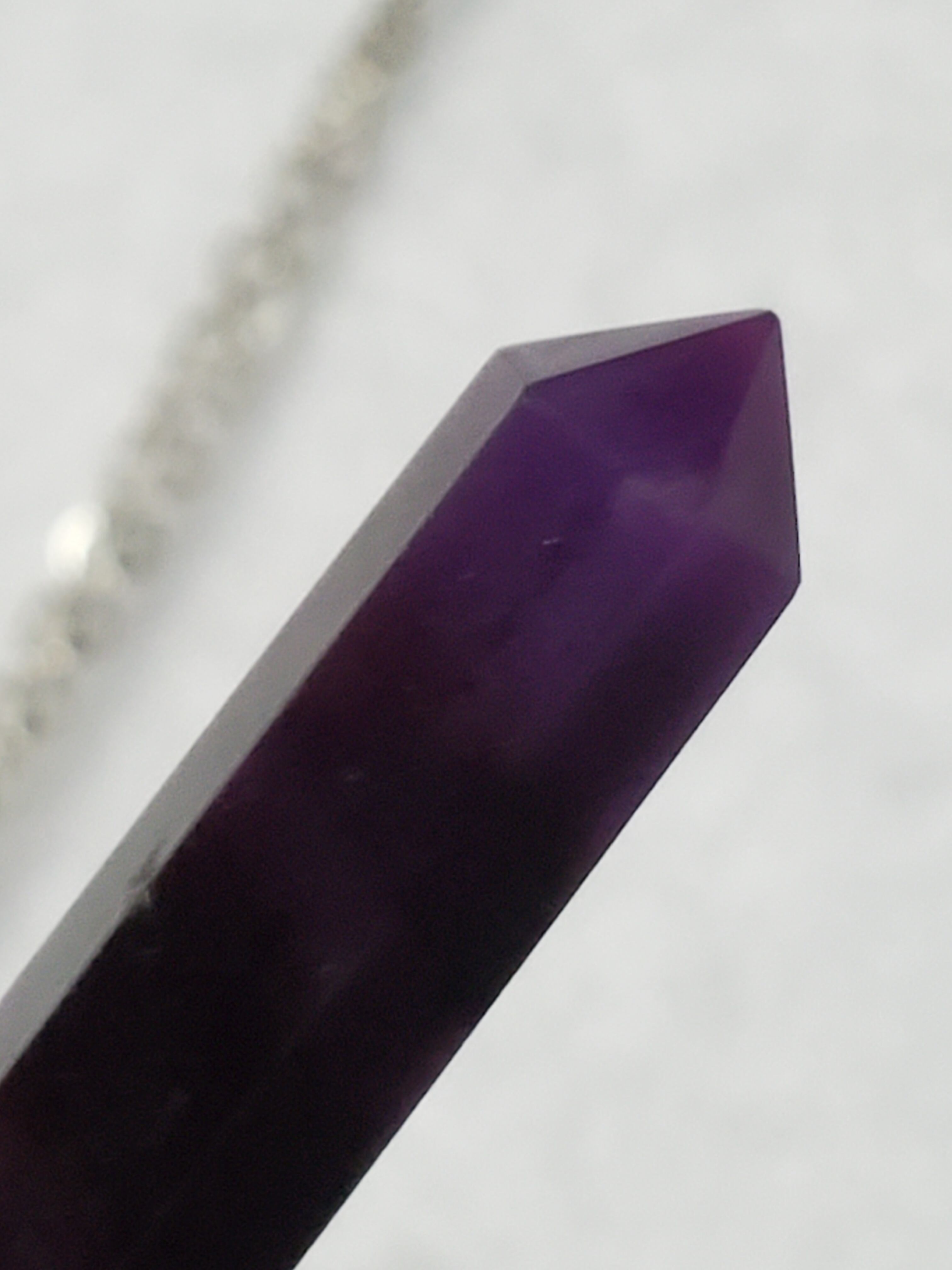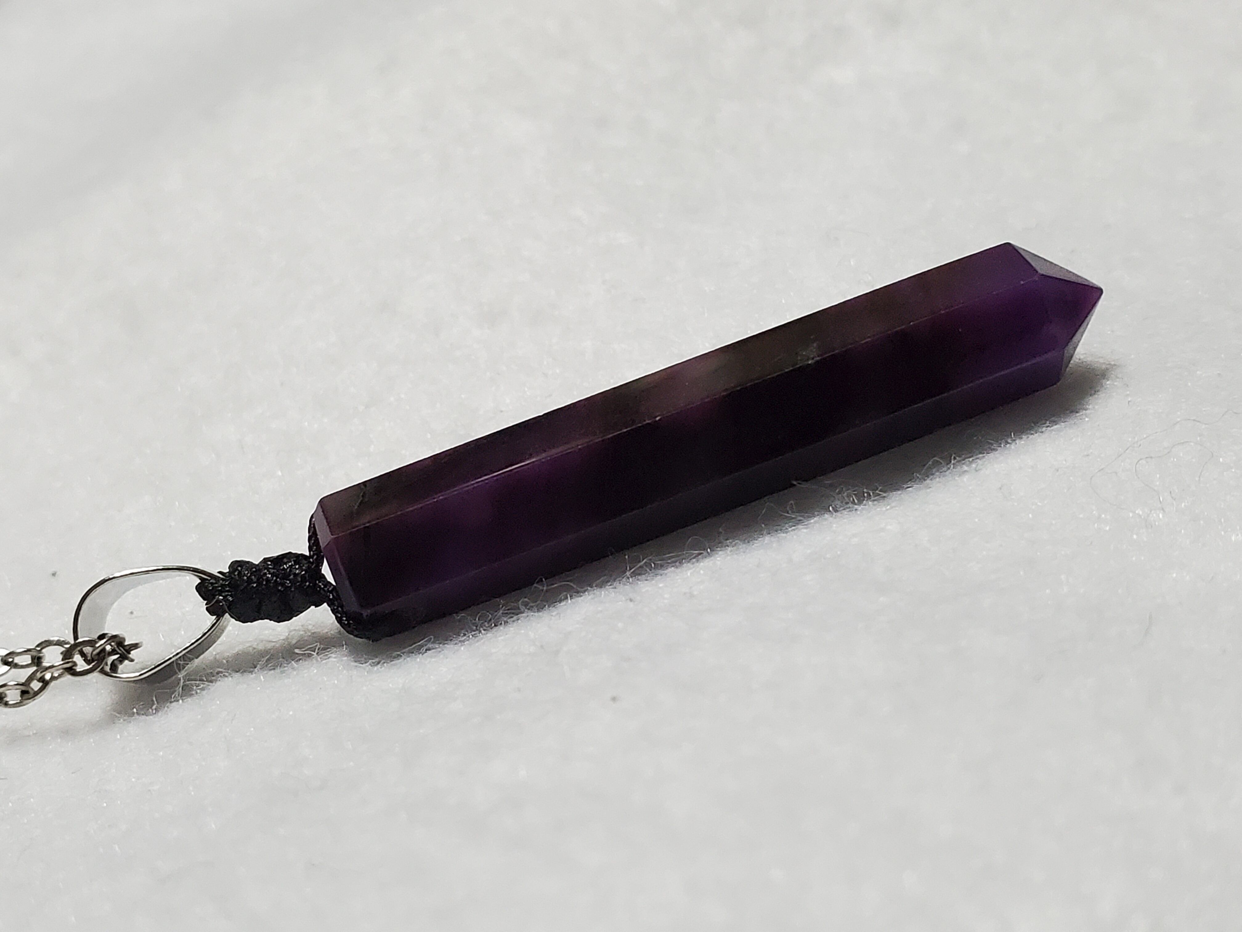 スギライトは結晶形になることは極めて稀で、時には様々な他鉱物を内包しながら不規則な塊状を形成します。そのため、真っ黒に近いものから艶のある鈍色、灰色、うぐいす色、赤紫、紫、ピンクなど、様々な色彩を持っています。アクセサリーとして人気が高いのは、やはり美しい紫色や希少なピンク色のものですが、スギライトのパワーは、この、色によって少しずつ波長の違うパワーが共振してこそ強く発揮されるのではないかと思います。
