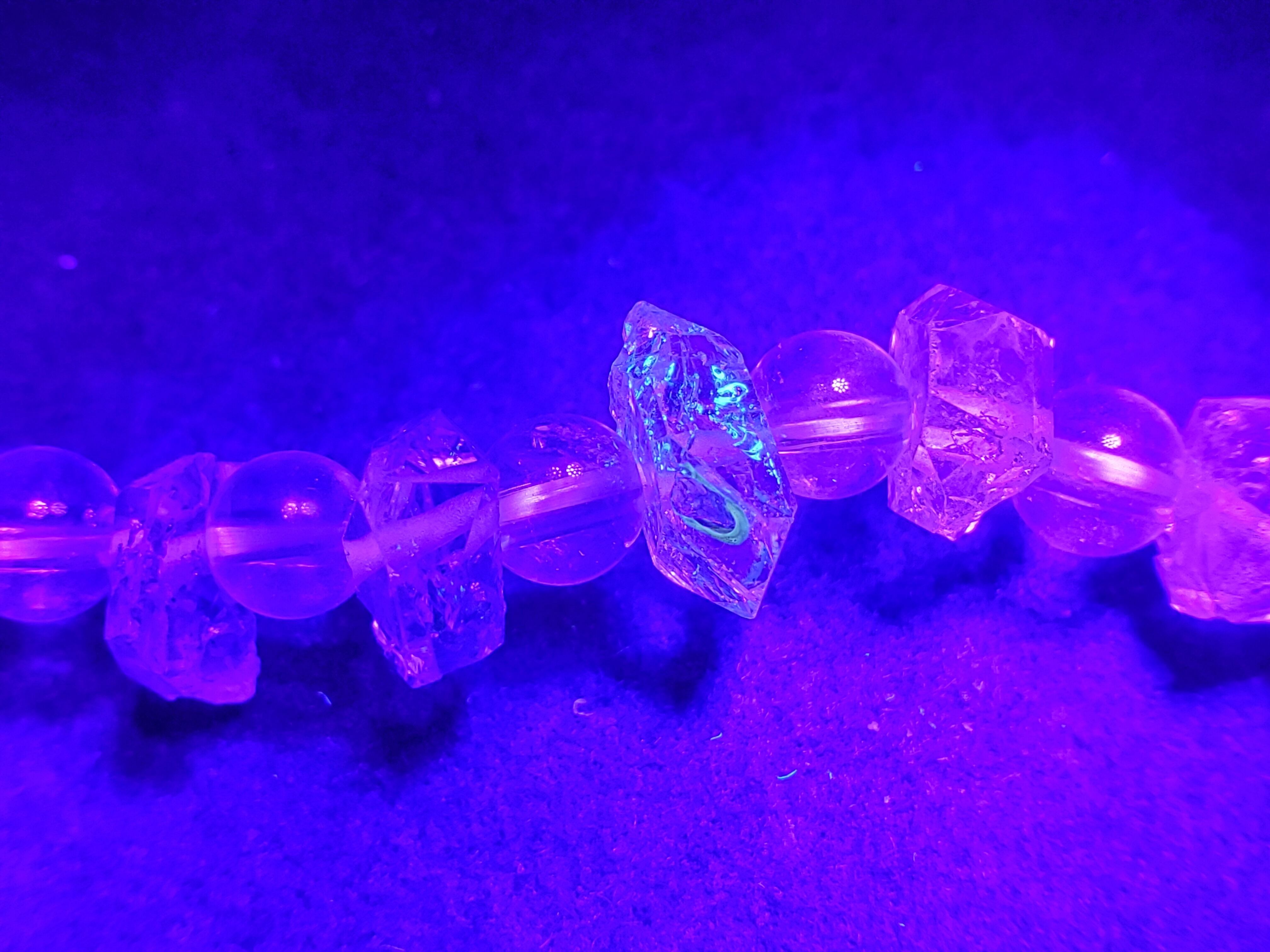 なんとその石油分は紫外線やブラックライトなどが当たる事により蛍光発色する性質を持っておりとても神秘的で幻想的な発色をするので必見です!