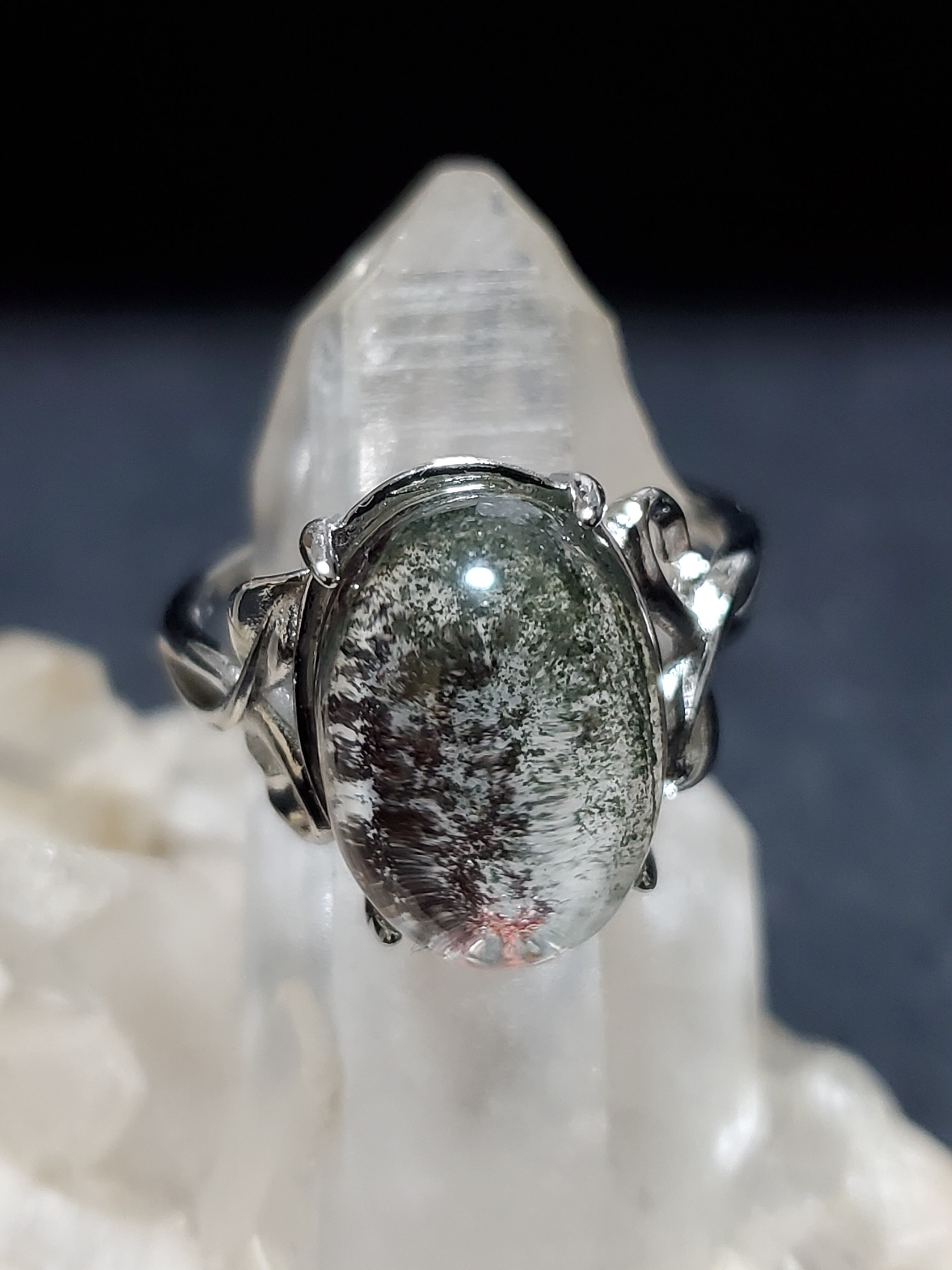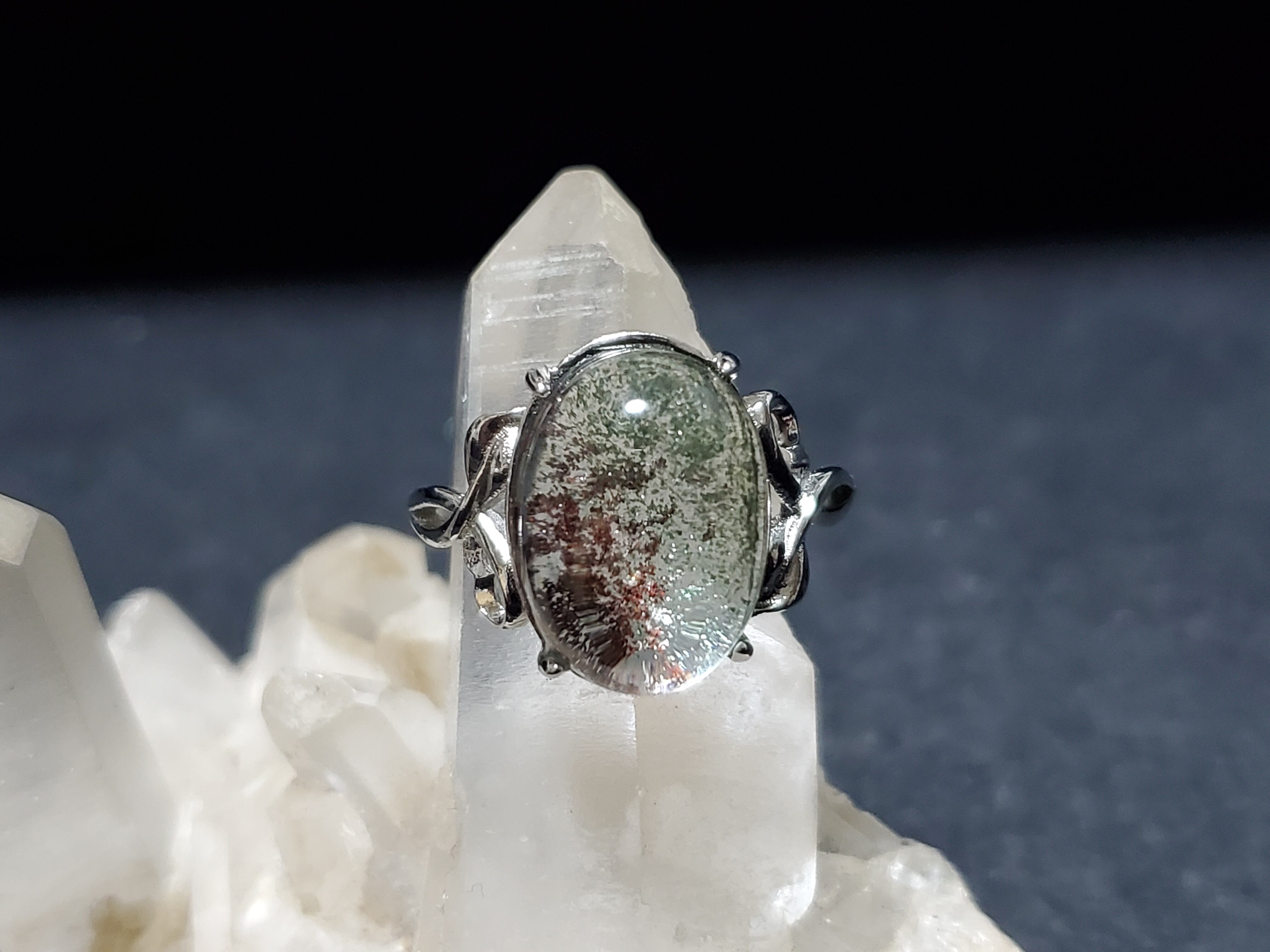 この天然石は、水晶が形成される過程で、緑や茶色の鉱物や泥岩を巻き込みながら結晶した水晶です。水晶の中に自然の風景が閉じ込められたようにも見えるため、「庭園水晶」「苔入り水晶」とも呼ばれています。石の中に見える風景は実に様々で、内包物の状態や色によって、山や川、草原、林などを連想させてくれます。