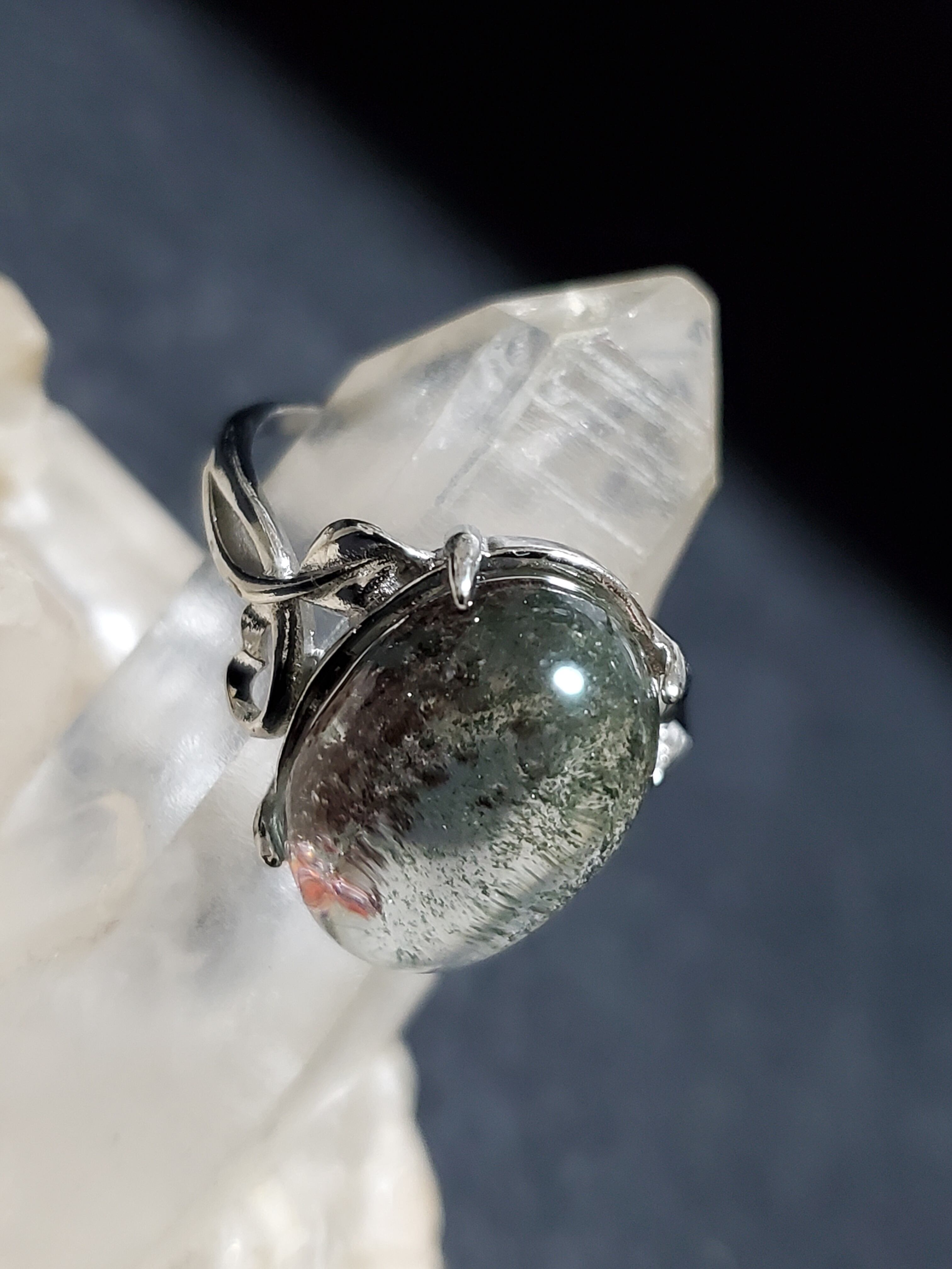 ひとくくりにガーデンクォーツといっても、その表情や種類は様々です。茶色い内包物が含まれるもの、緑色の内包物が含まれるもの、その両方が含まれるもの、さらにファントムが見られるものもあります。ファントムとは、水晶が成長していく過程で地殻変動などのショックが加わり、水晶の成長が一時的に停止した際に、その表面に別の元素が付着し、さらにその後長い年月を経て、水晶が再び成長を始めたために、結晶の中に斜めや三角、山型の像が模様として残る現象を言います。ファントムタイプのガーデンクォーツは、自らの成長の記憶を内部に刻み込んでいるため、持ち主の潜在能力を引き出し、成長を促してくれると伝えられています。