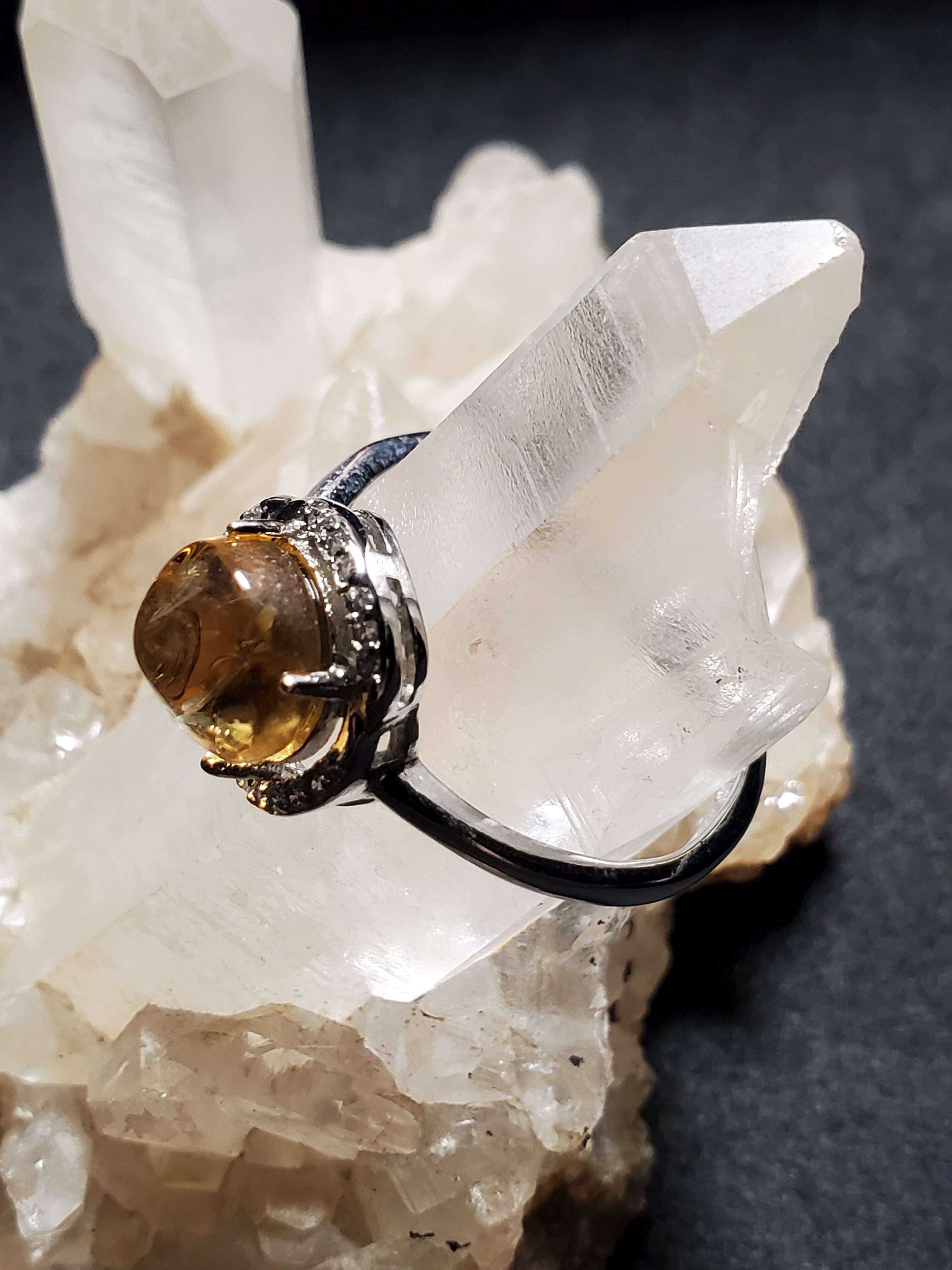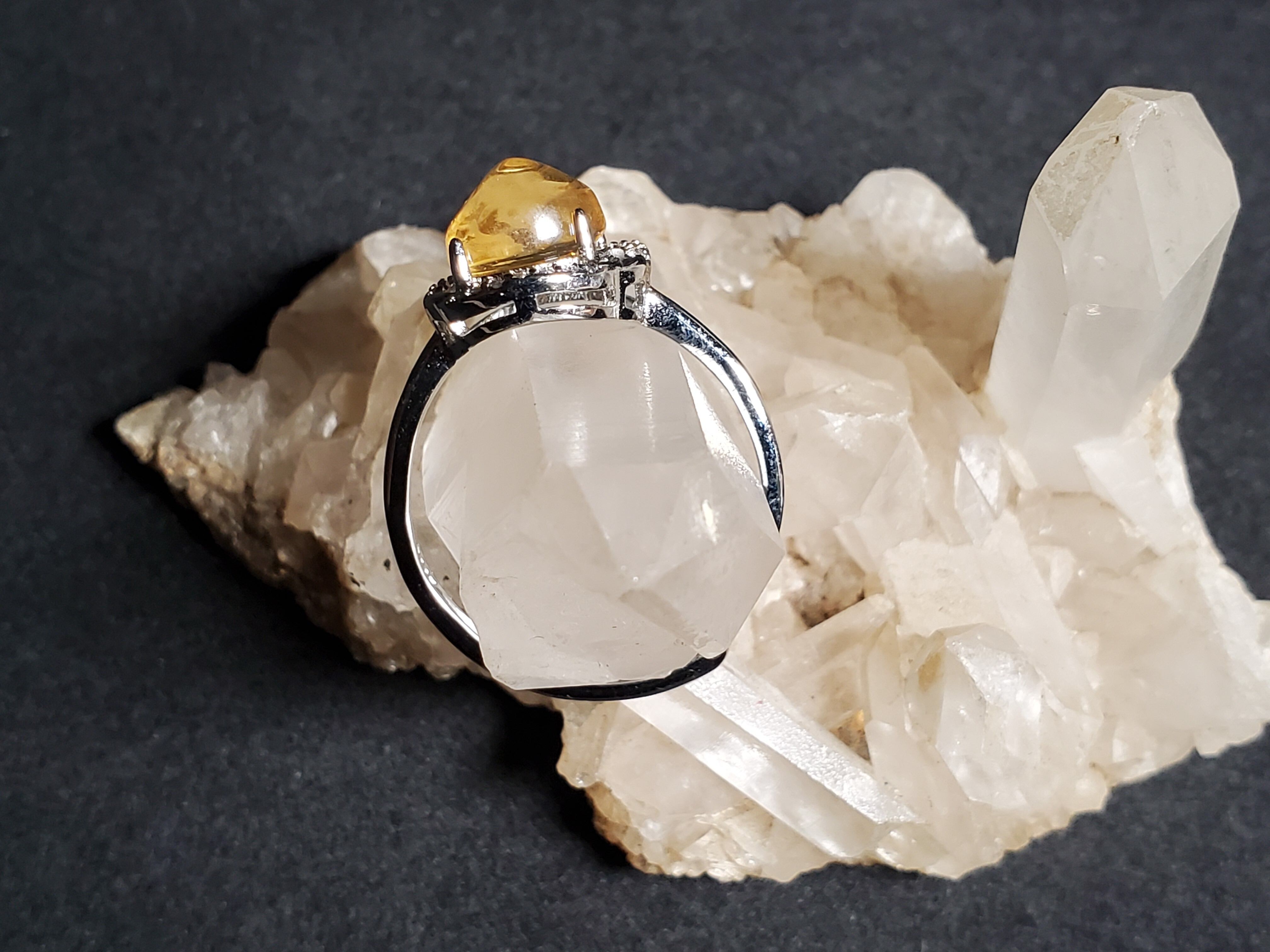 シトリンの中にはアメジストが混在した「アメトリン」や、スモーキークォーツが混ざった物もありますが、これらは熱処理や放射線処理で、石を部分的に変化させた物であることが多いようです。天然シトリンが希少であると同時に、天然のアメトリンも大変希少な存在だといえるでしょう。