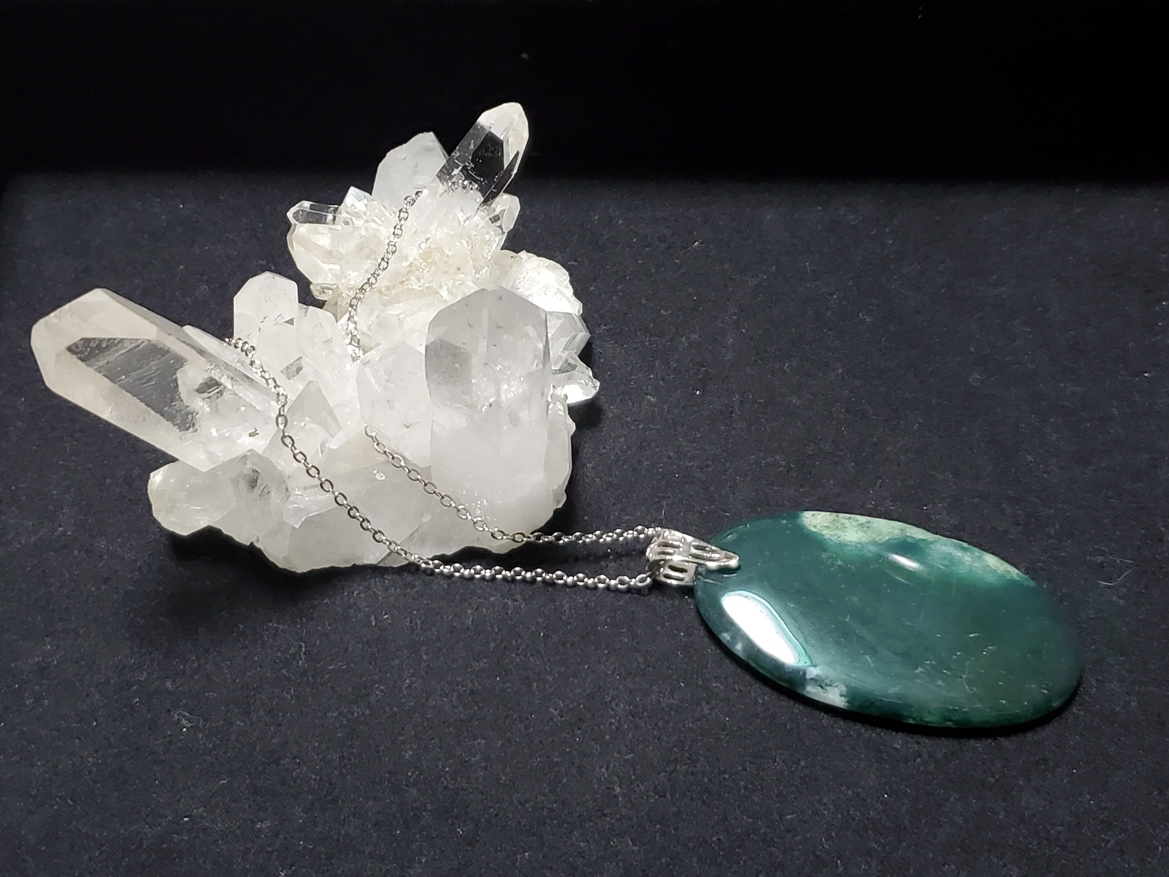 瑪瑙(めのう)の中に緑色の内包物が含まれることで、まるで苔のように見えます。