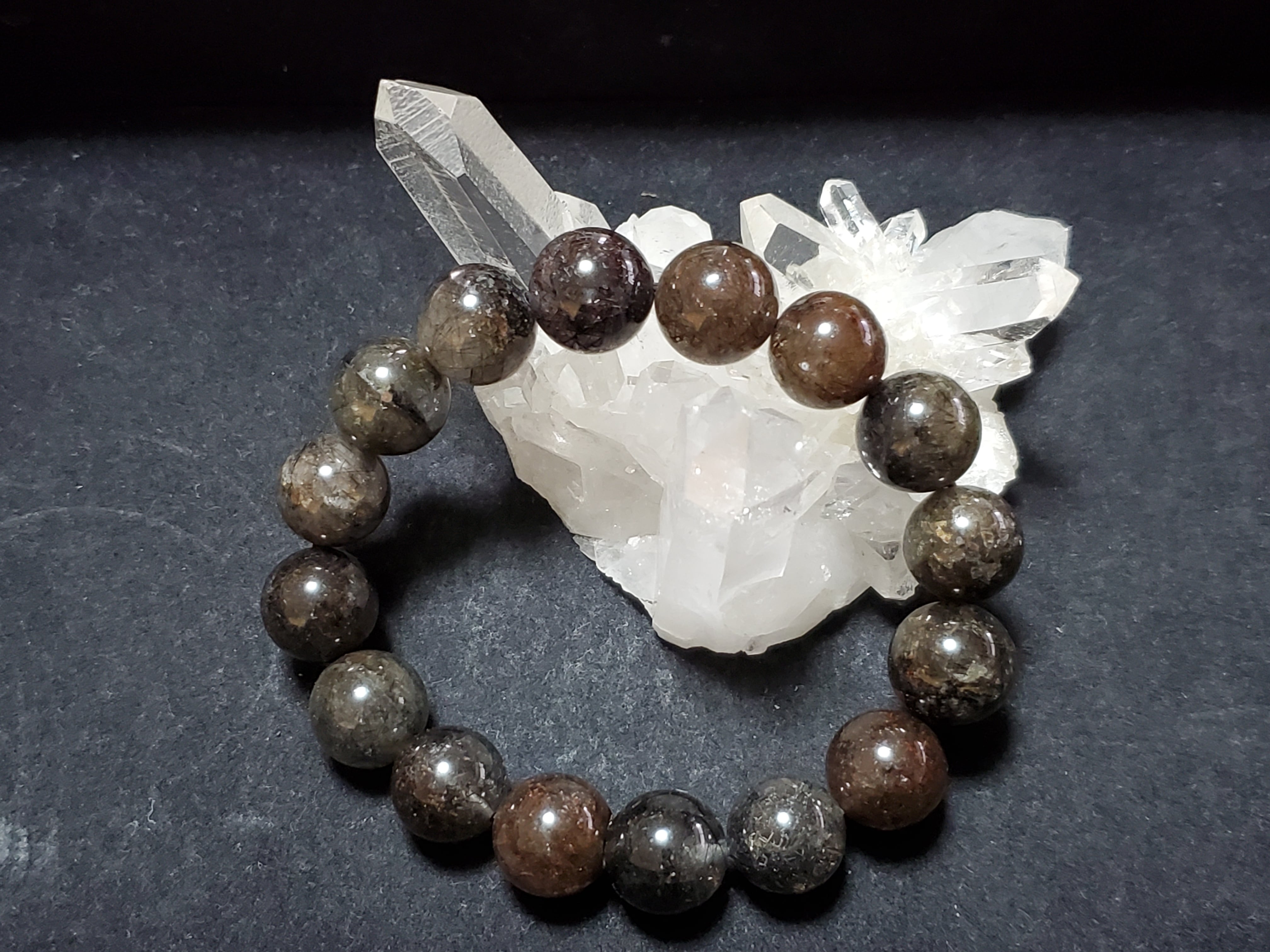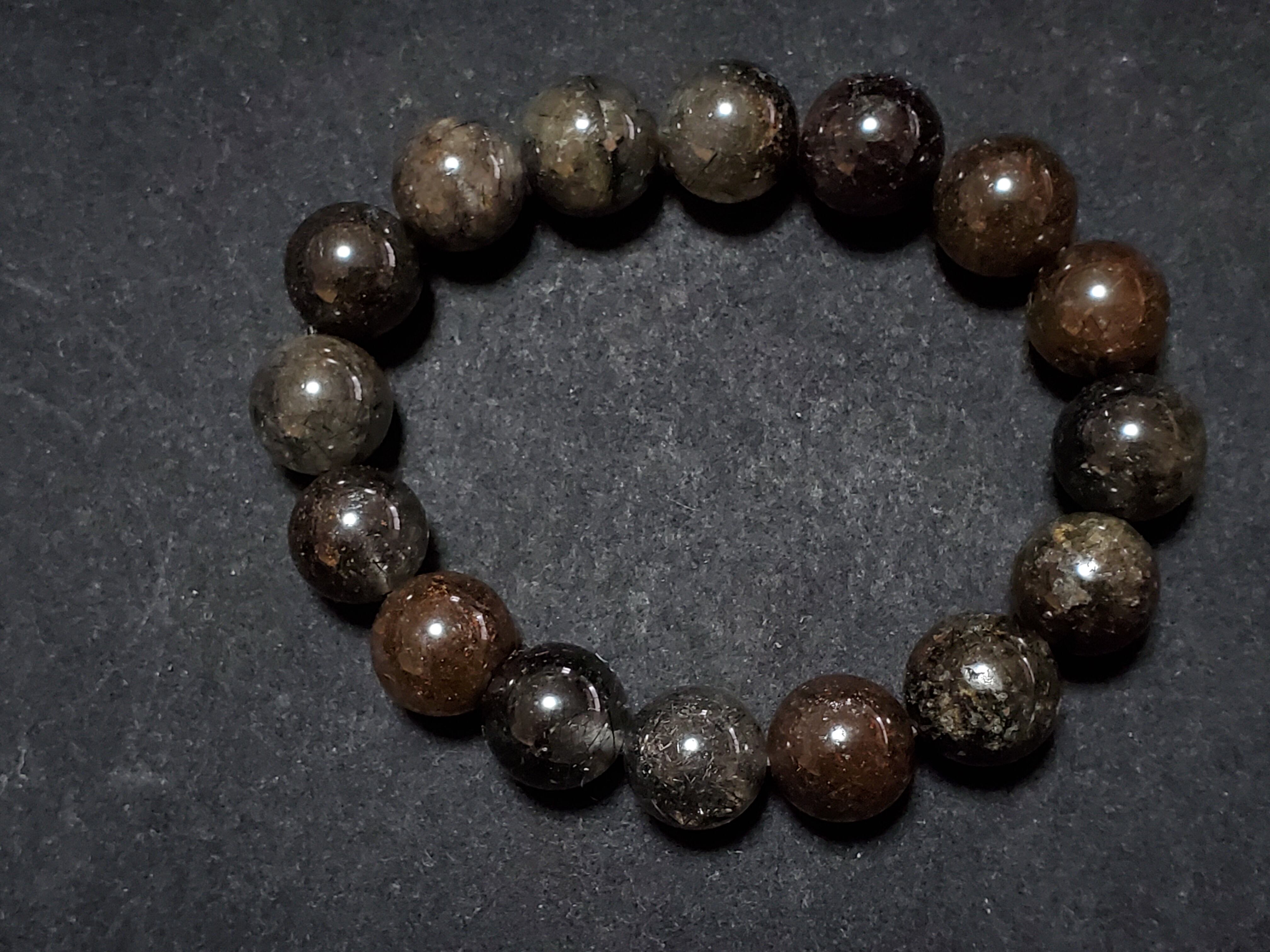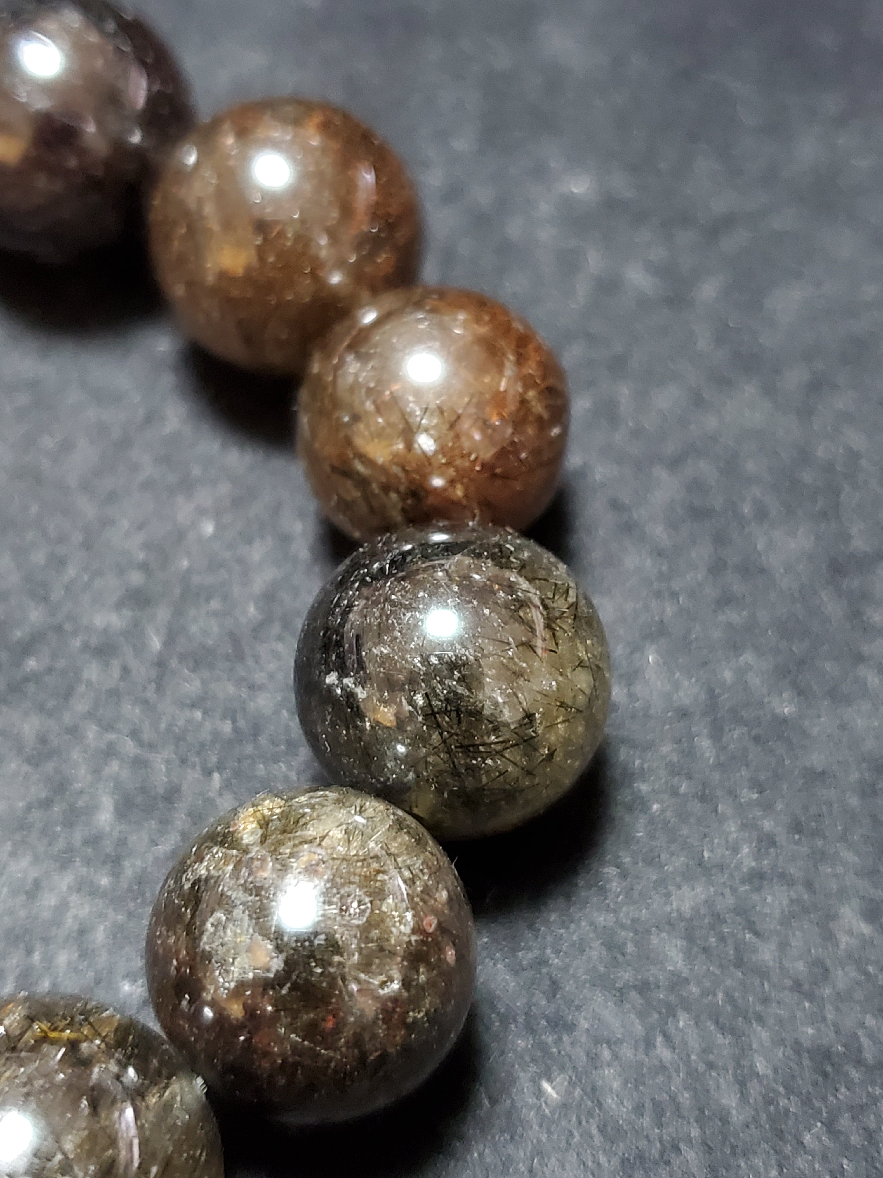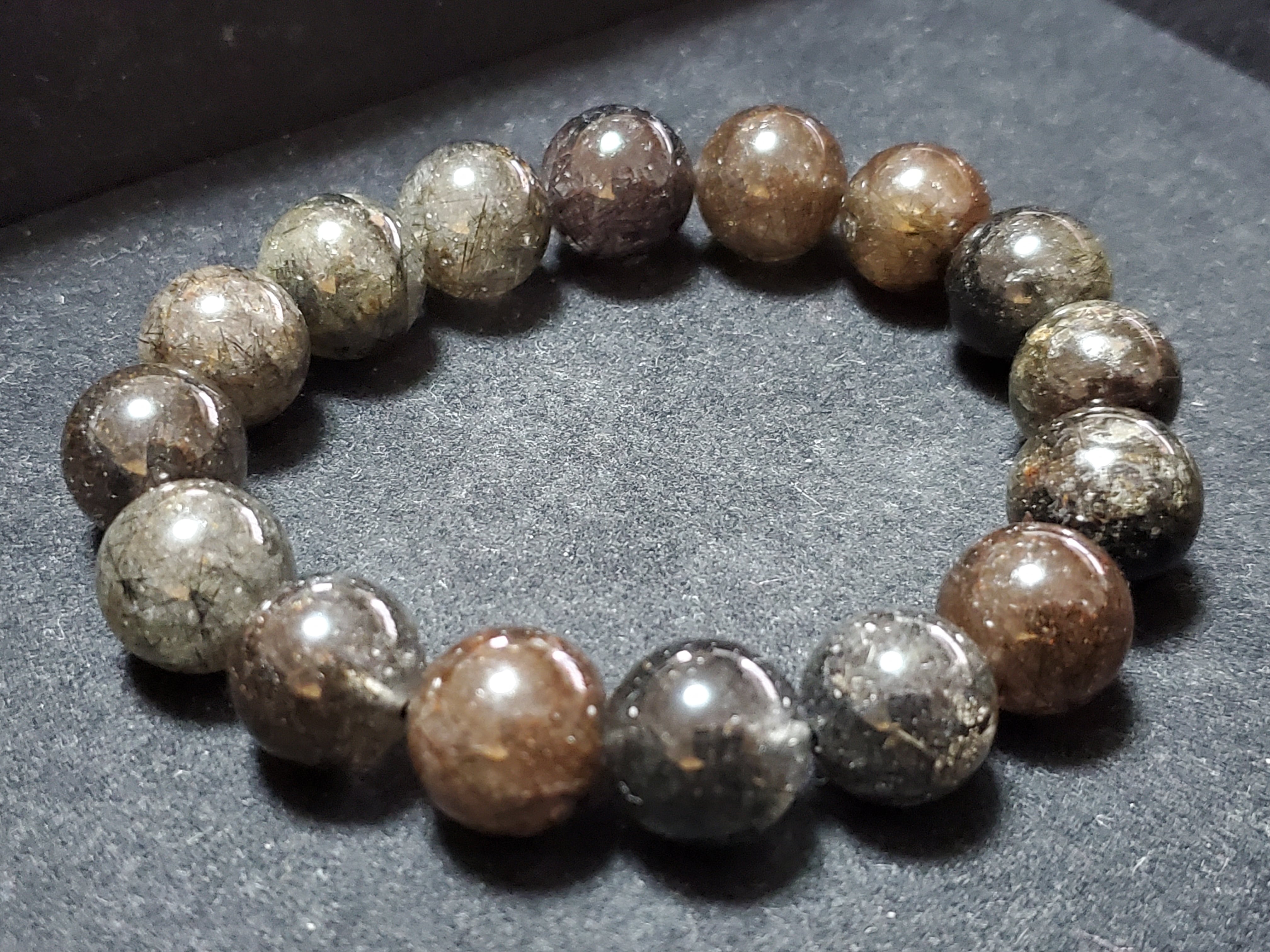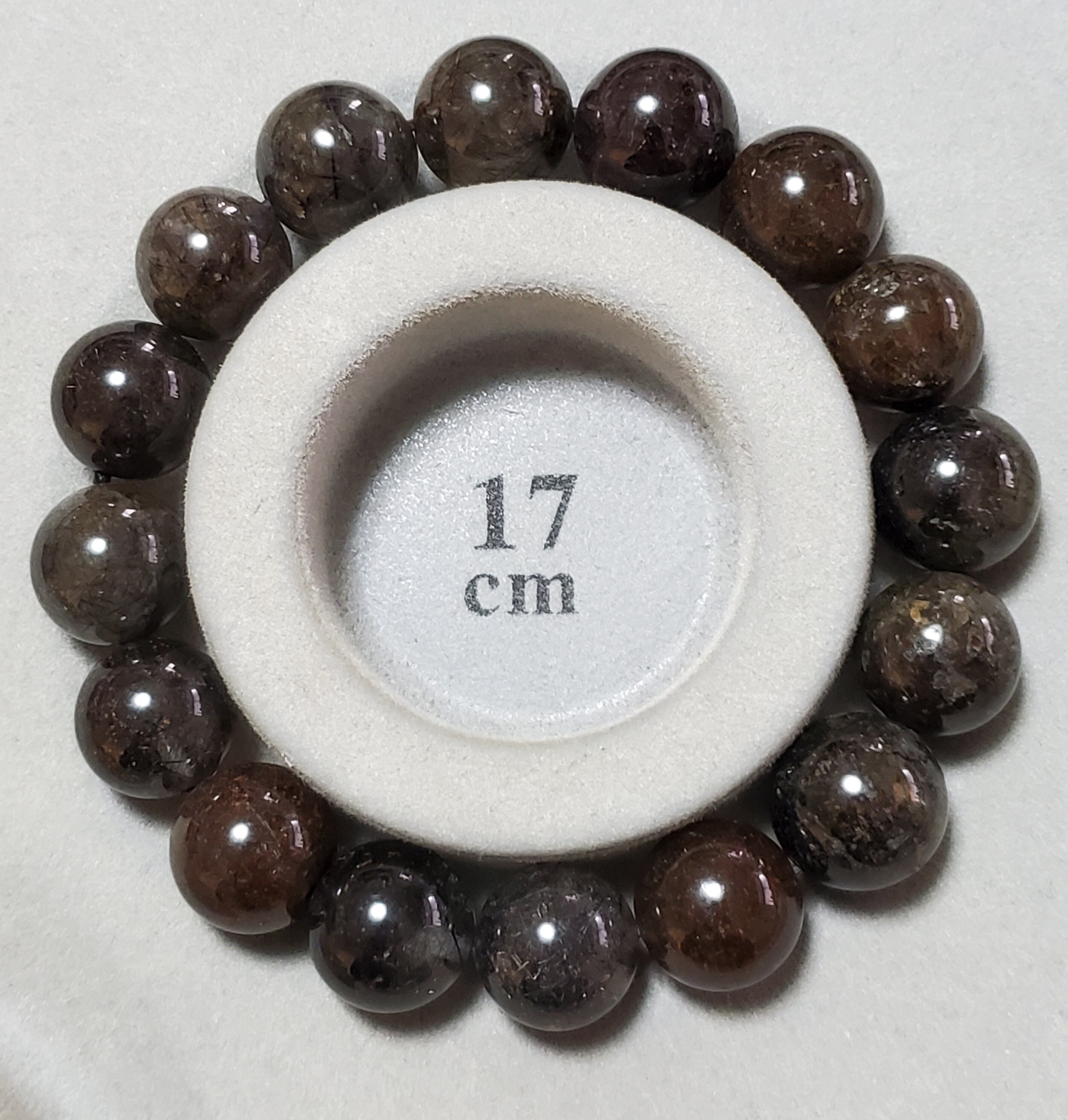 14㎜のブラックルチルガーデンクォーツのブレスレットです。内径は、約17㎝です。