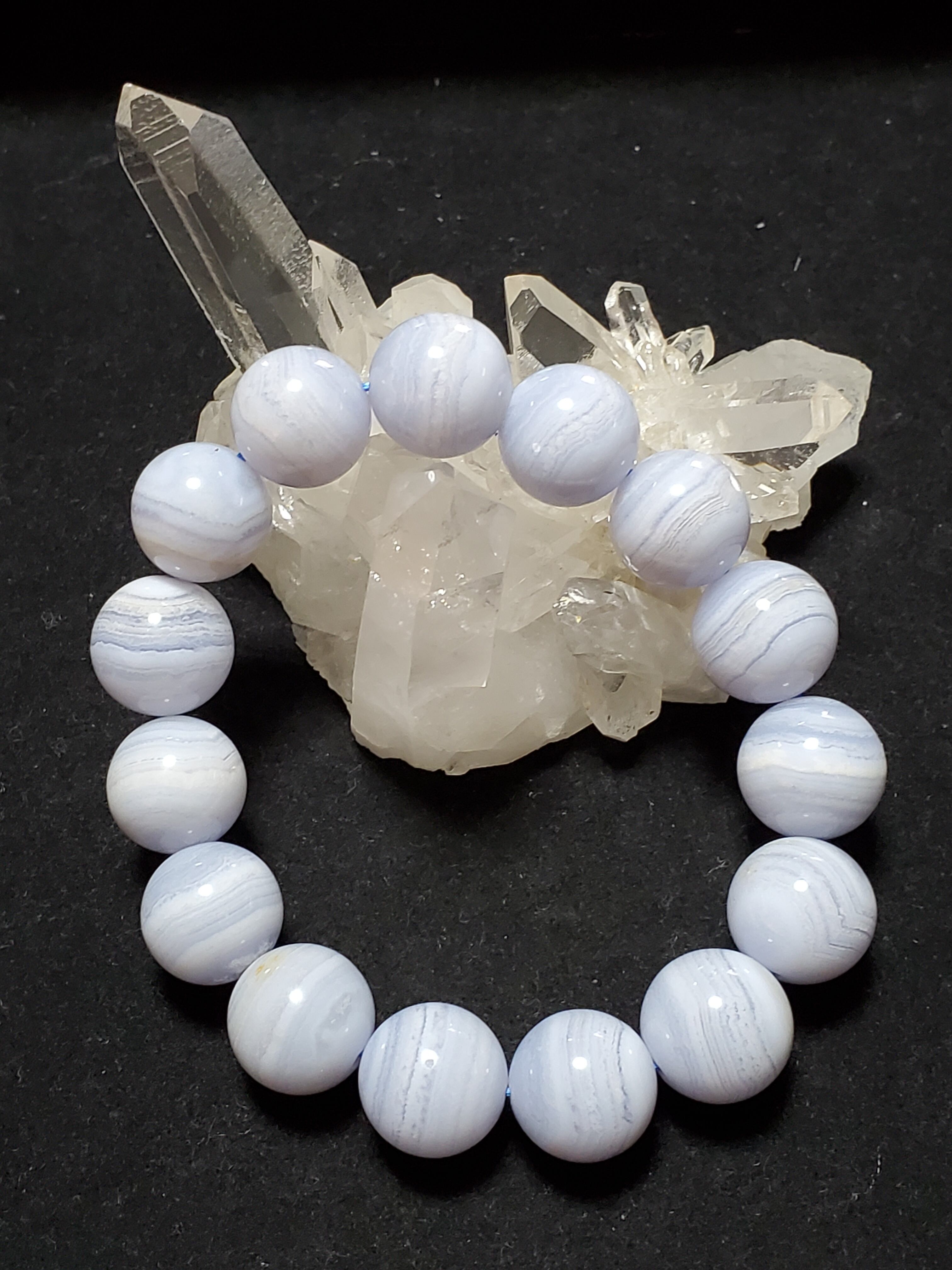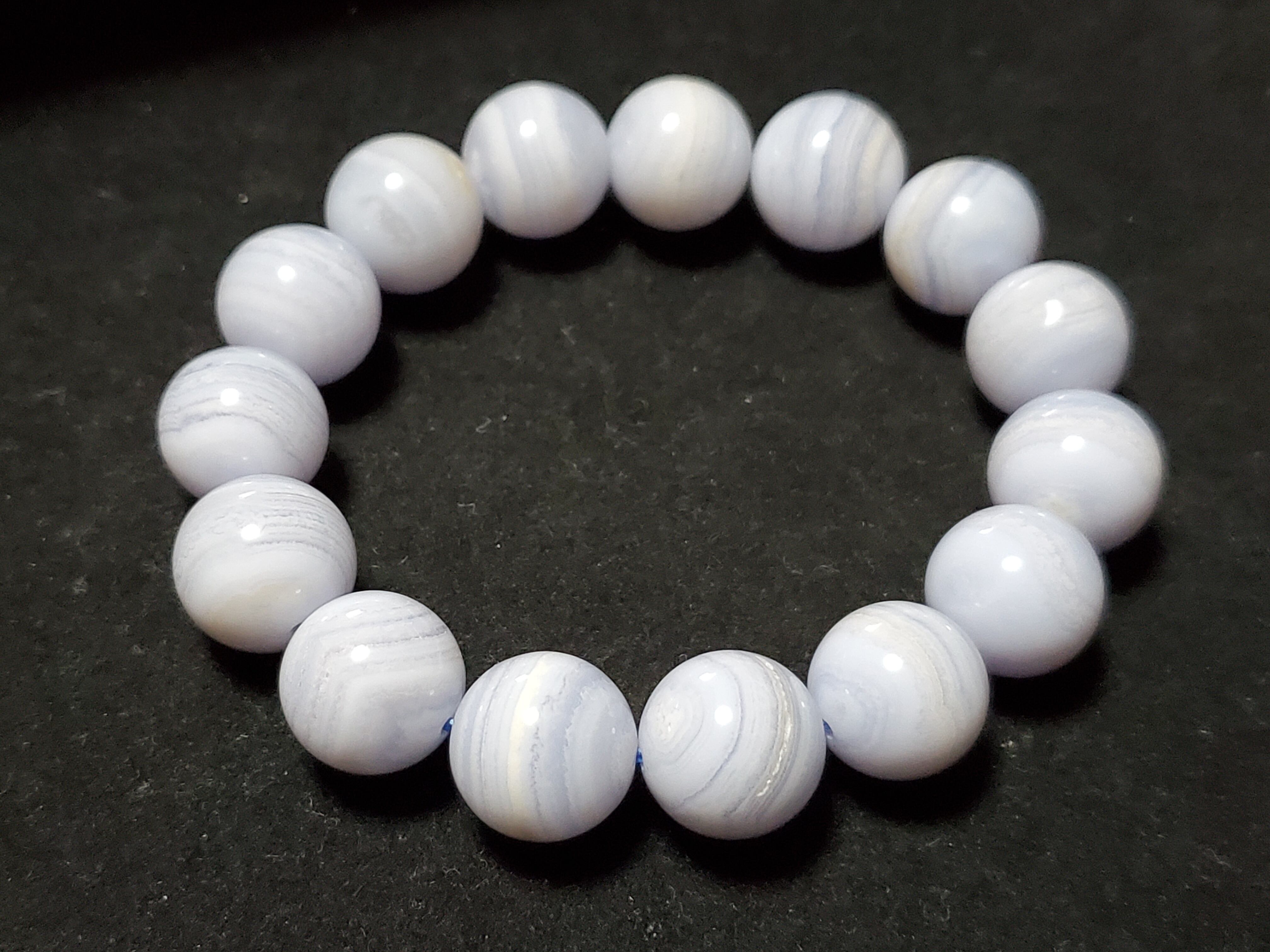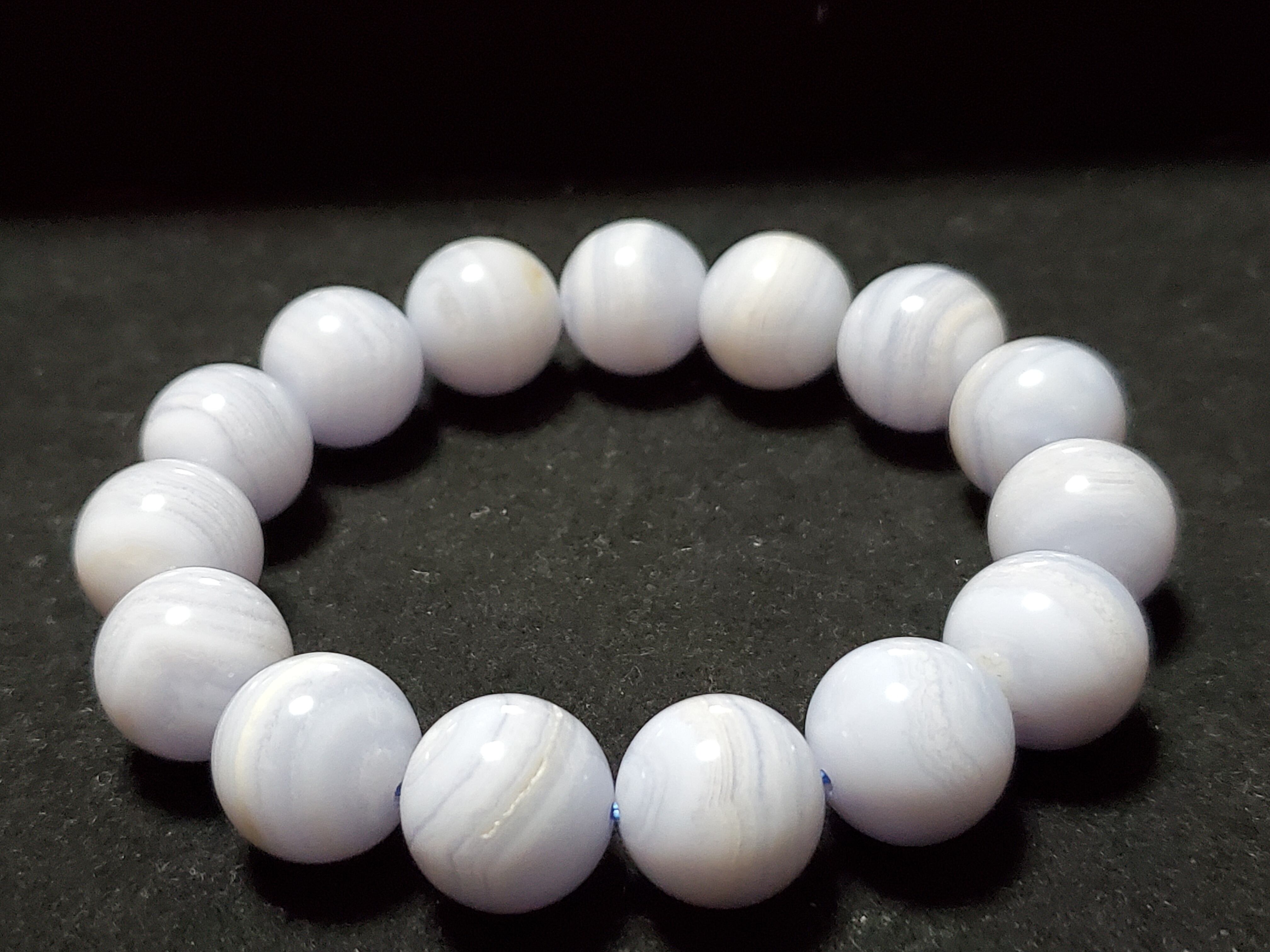 ブルーレースは、古来より危険を回避するお守りとして、人々の身近にある存在でした。チベットでは、この石の美しい模様を蓮の花に例えて、「神の石」として崇めていたそうです。控えめで清潔感のあるブルーレースは、持ち主をリラックスさせて、心を綺麗にしてくれるようなヒーリング作用があると伝えられています。