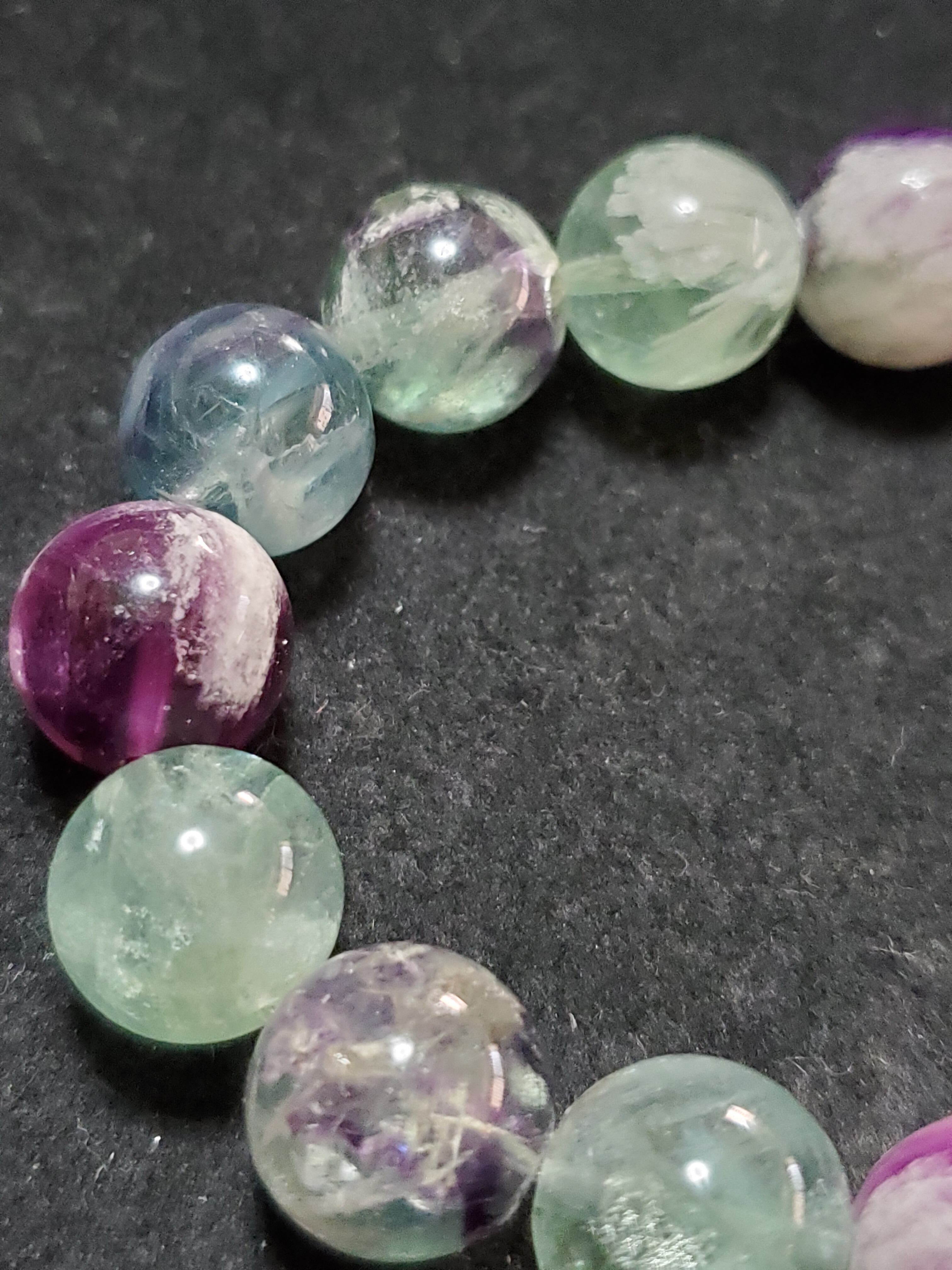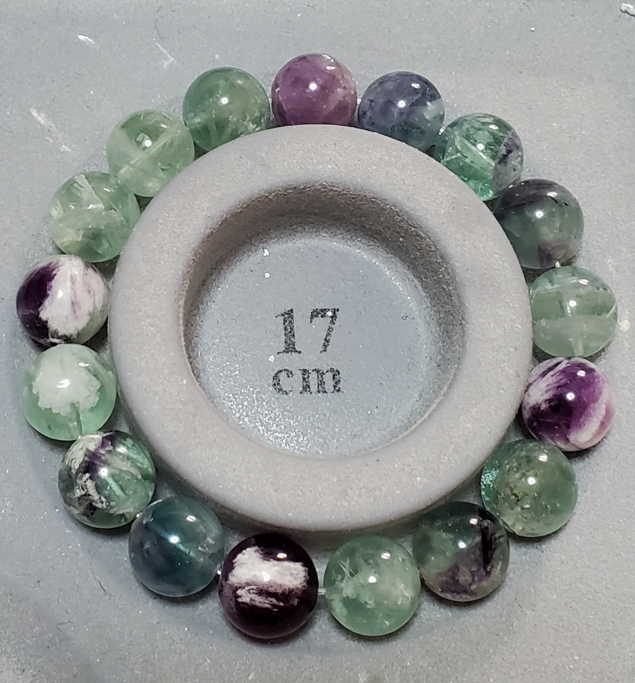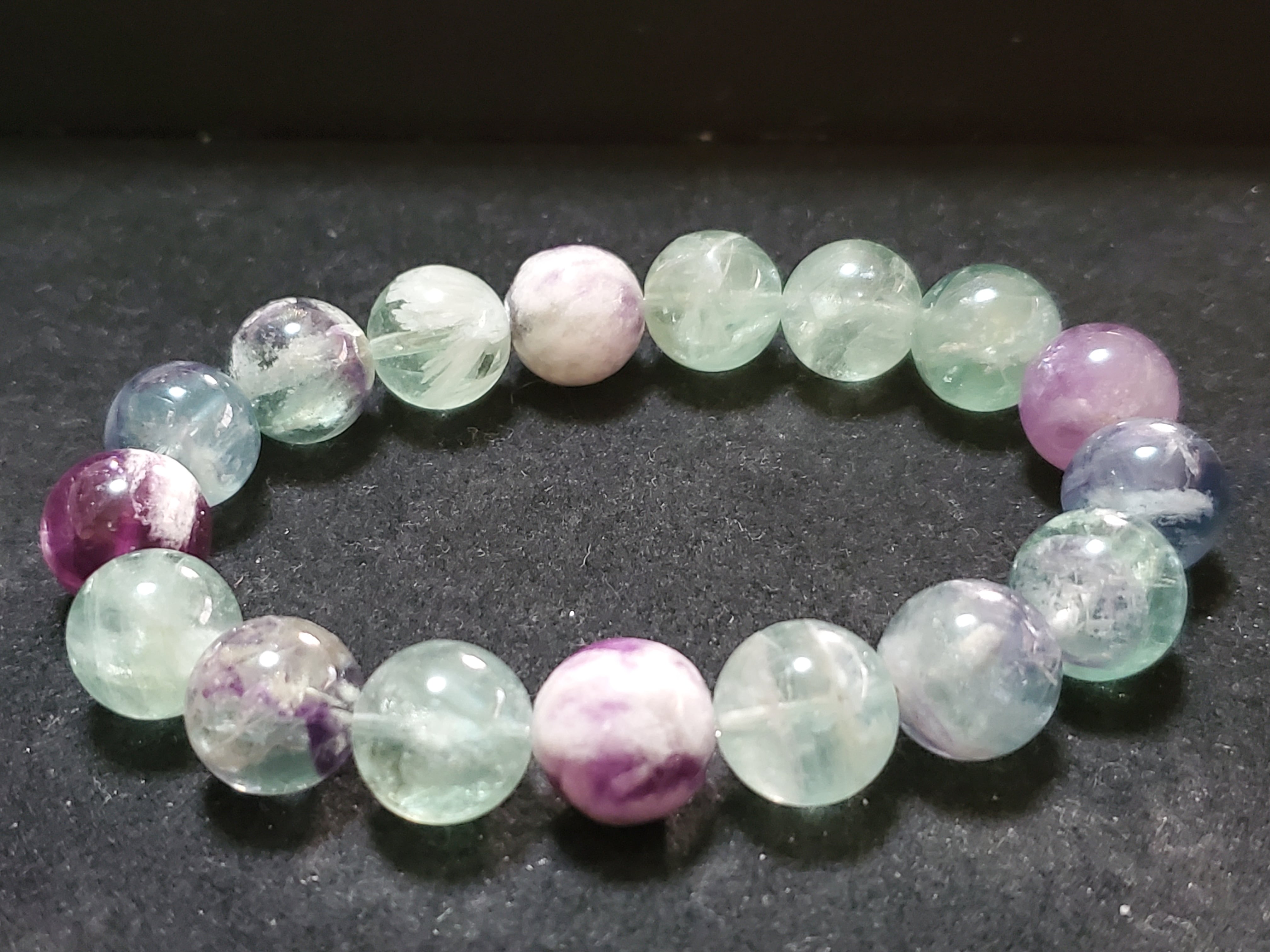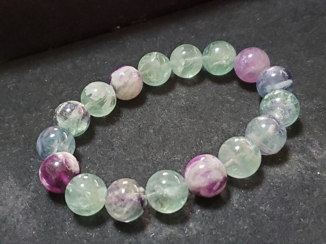 12㎜のエンジェルフェザーフローライトのブレスレットです。内径は、約16㎝です。