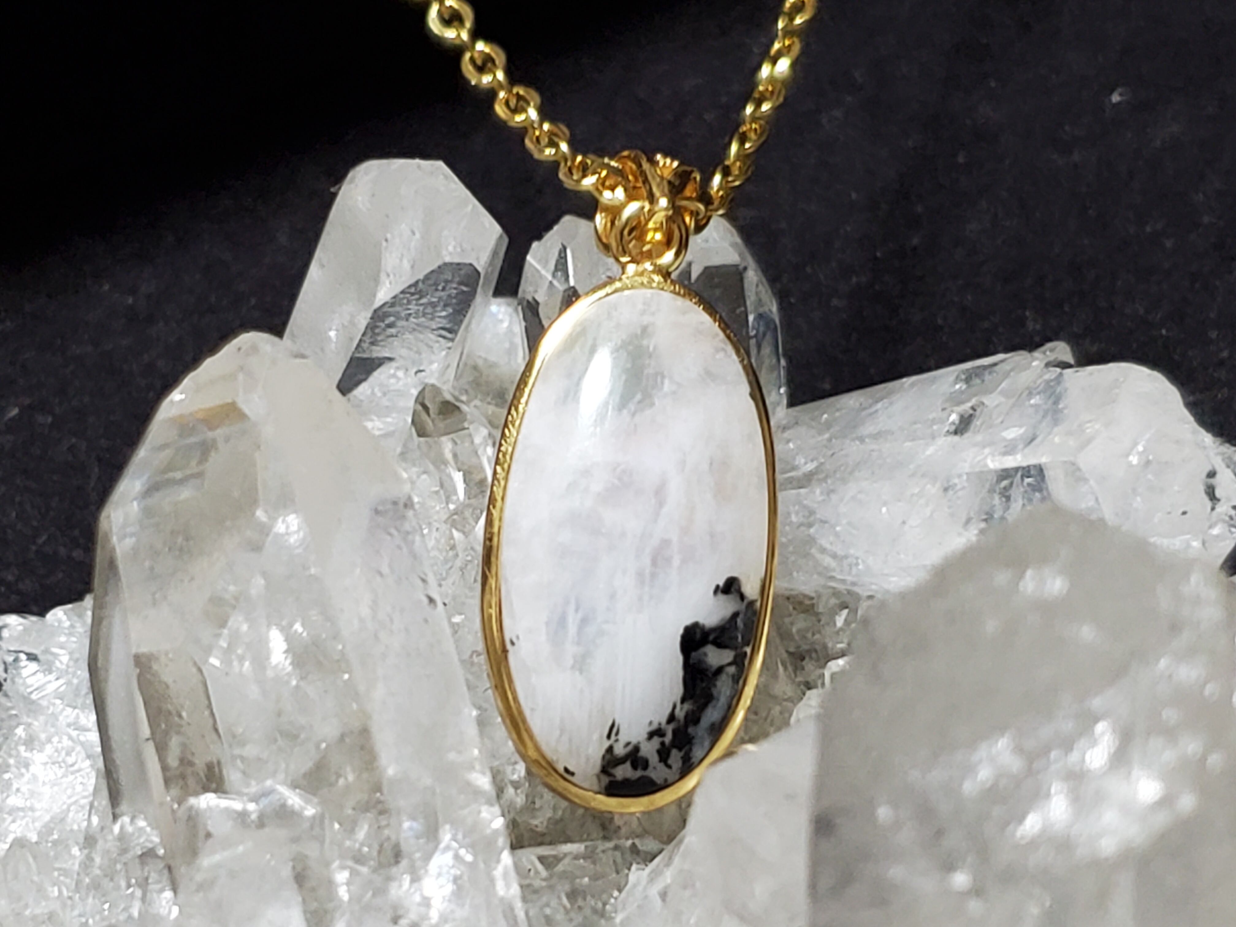 また、「勘が鋭くなる」「危険を察知する」「進むべき道を示してくれる」といった伝承が多く残っており、予知や透視、占いなどの儀式に用いられてきました。陰陽に照らし合わせるならば、月は陰、つまり影や無意識を表しています。ムーンストーンは持ち主の無意識の部分に働きかけ、潜在能力を引き出し、インスピレーションをもたらしてくれるといわれています。