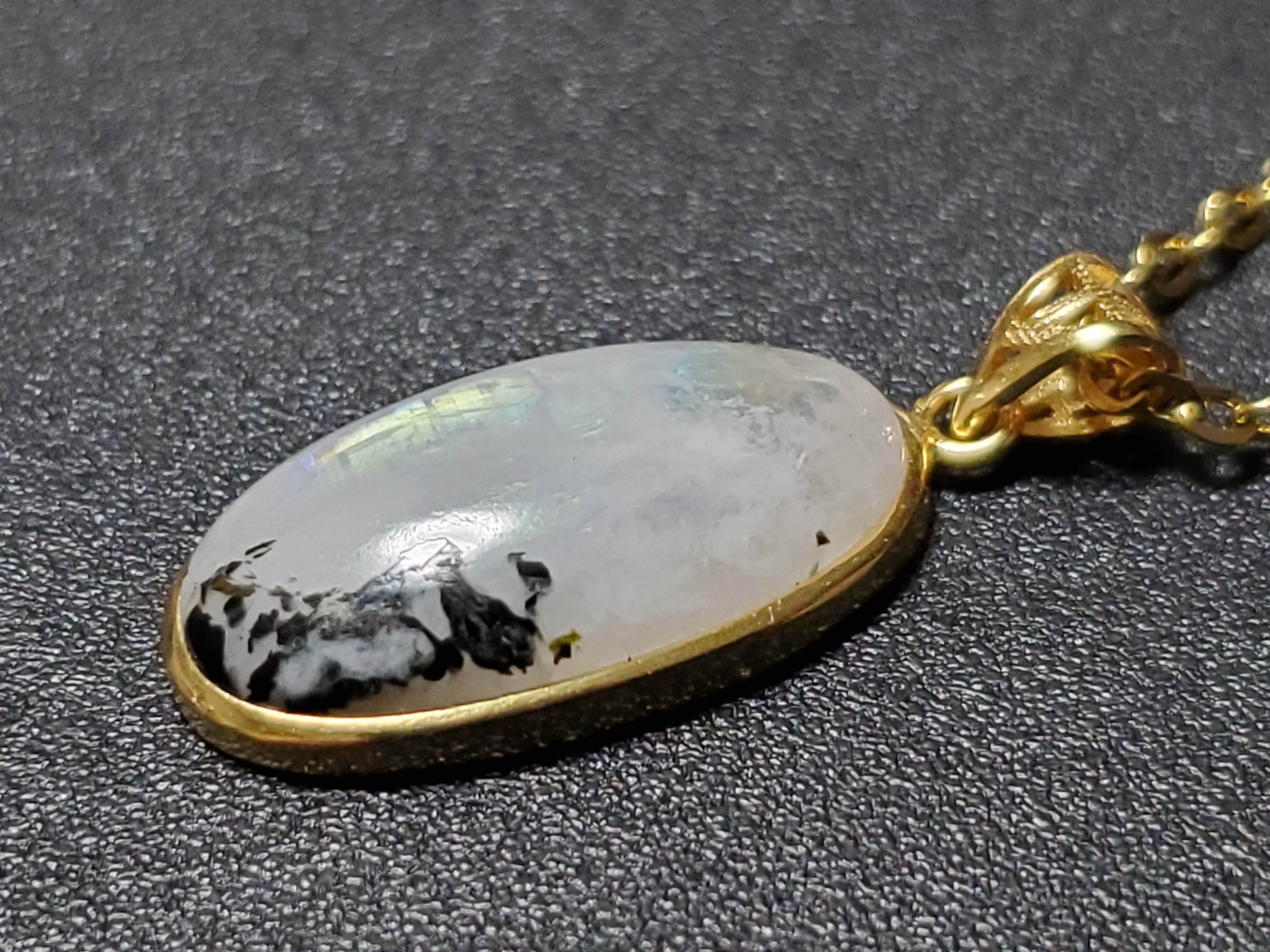 黒いのは、黒雲母(バイオタイト)で、ムーンストーンと共生している黒と白のコントラストが綺麗なムーンストーンになります。