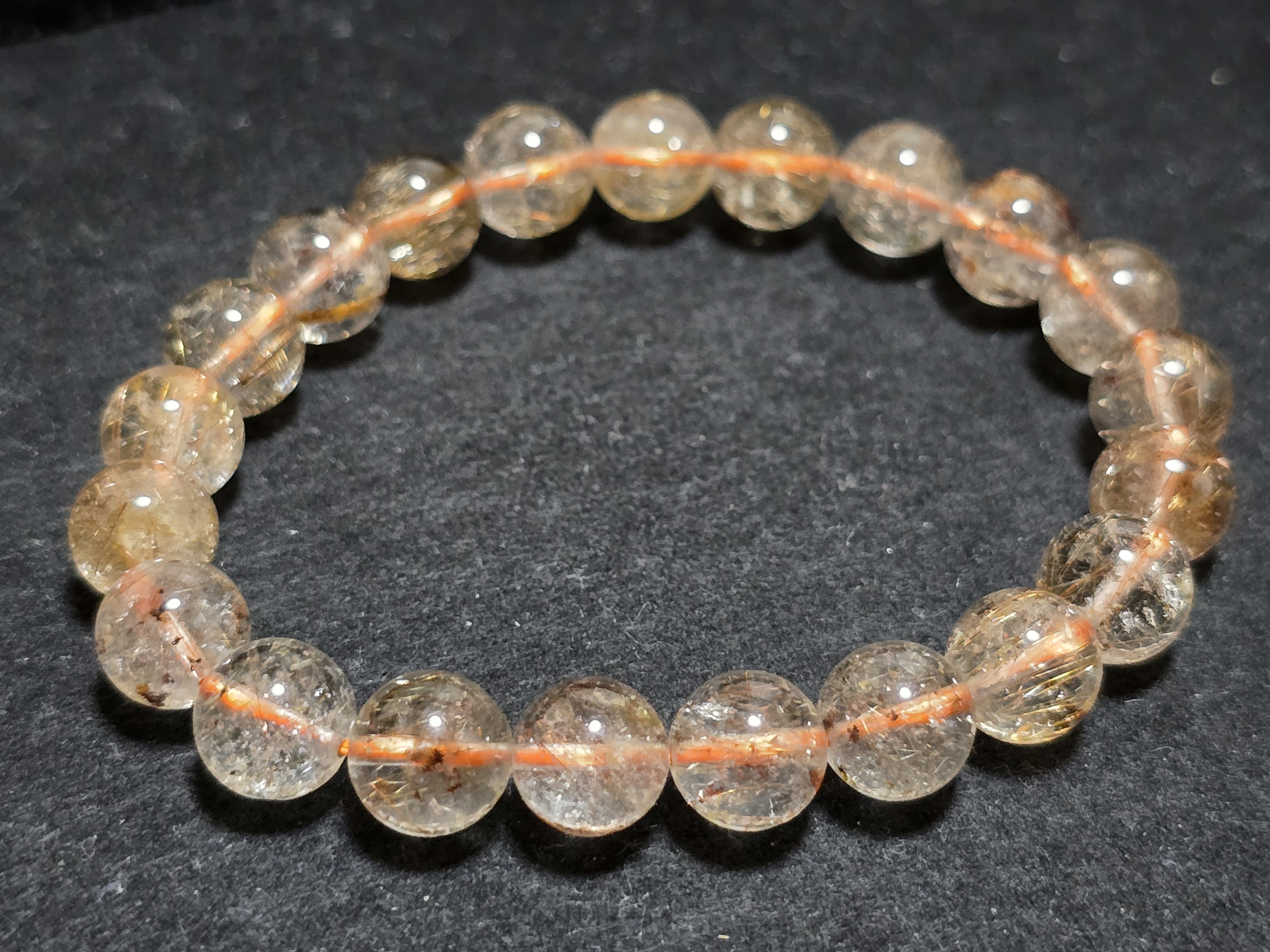 9㎜のガーデンルチルクォーツのブレスレットです。内径は、約16㎝です。