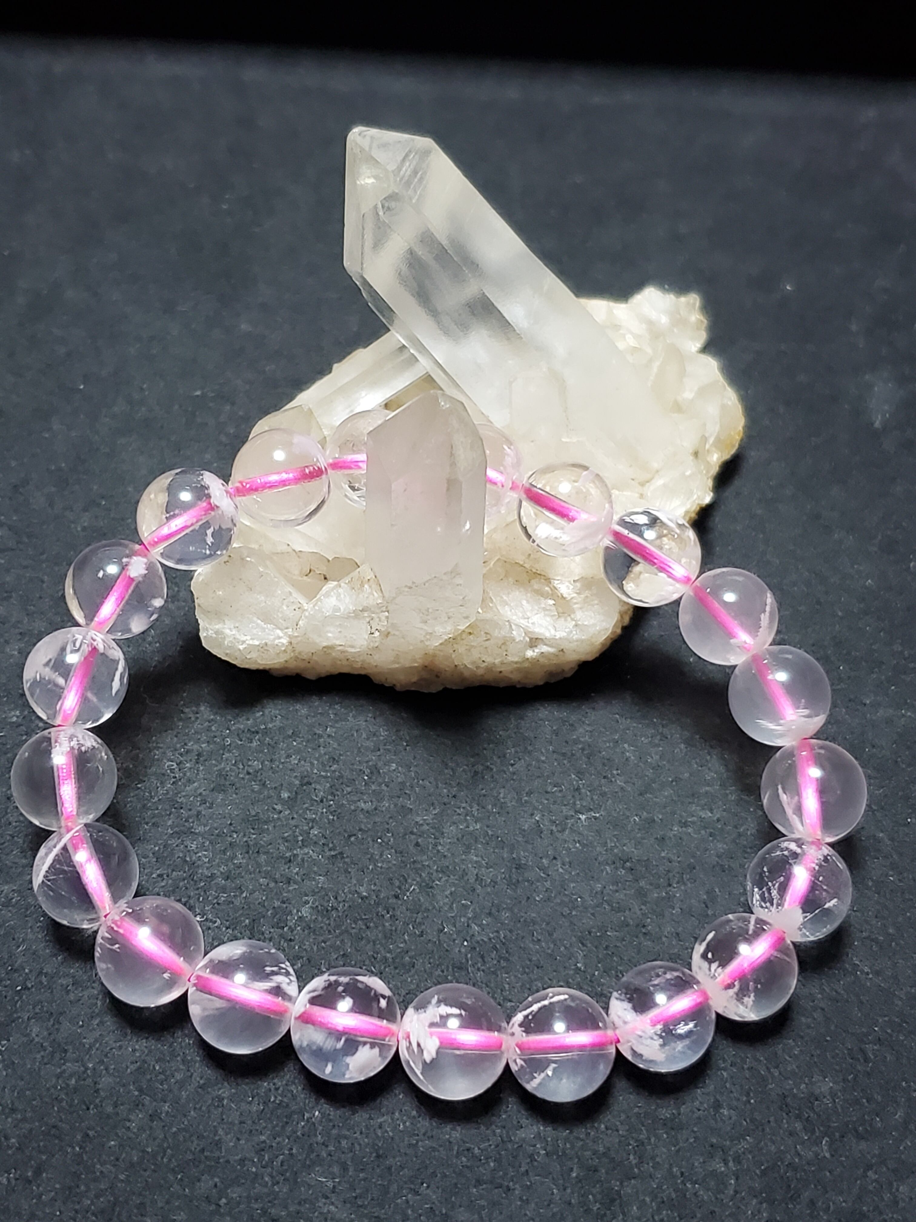 9㎜のセリサイトインローズクォーツのブレスレットです。