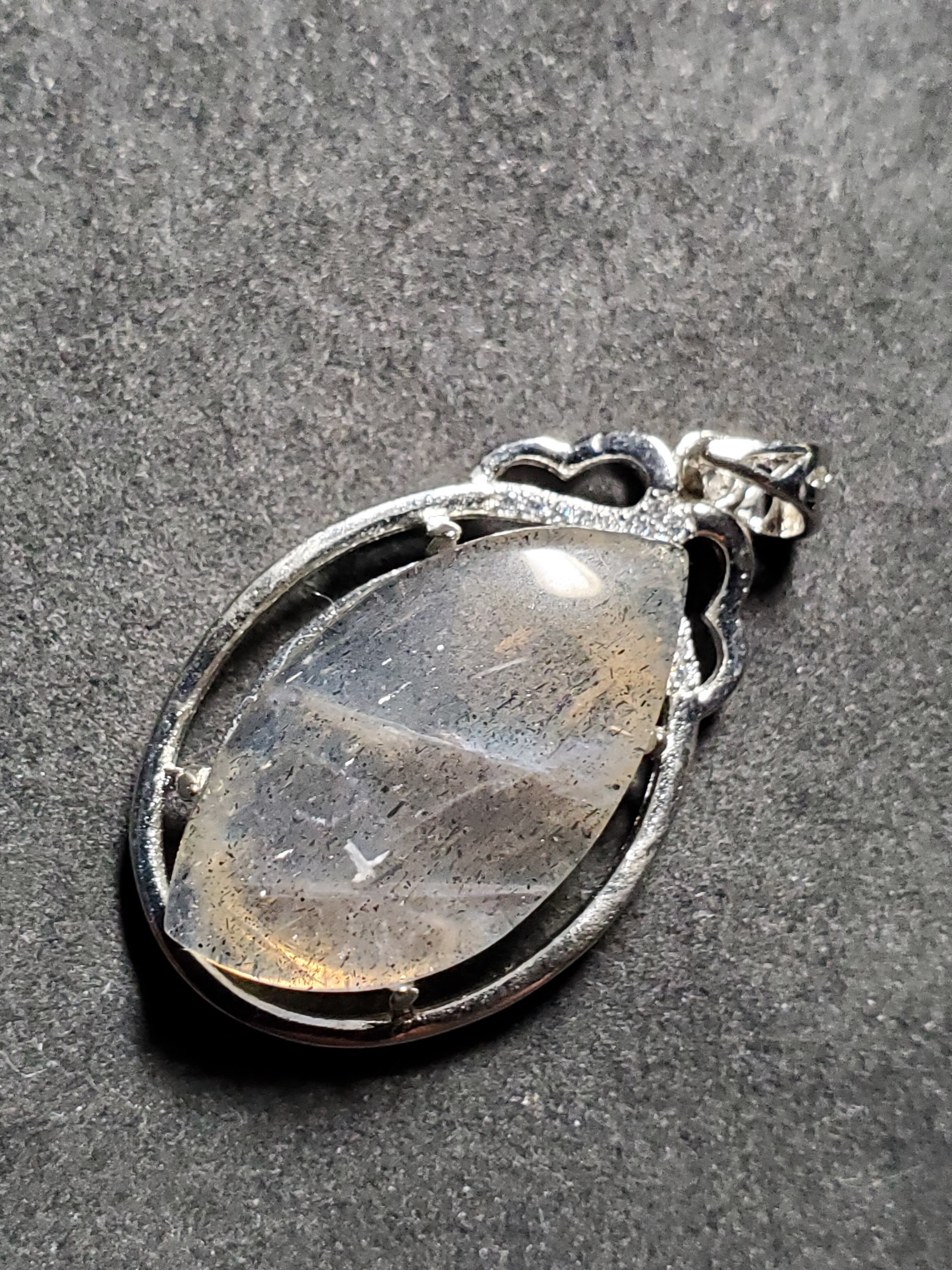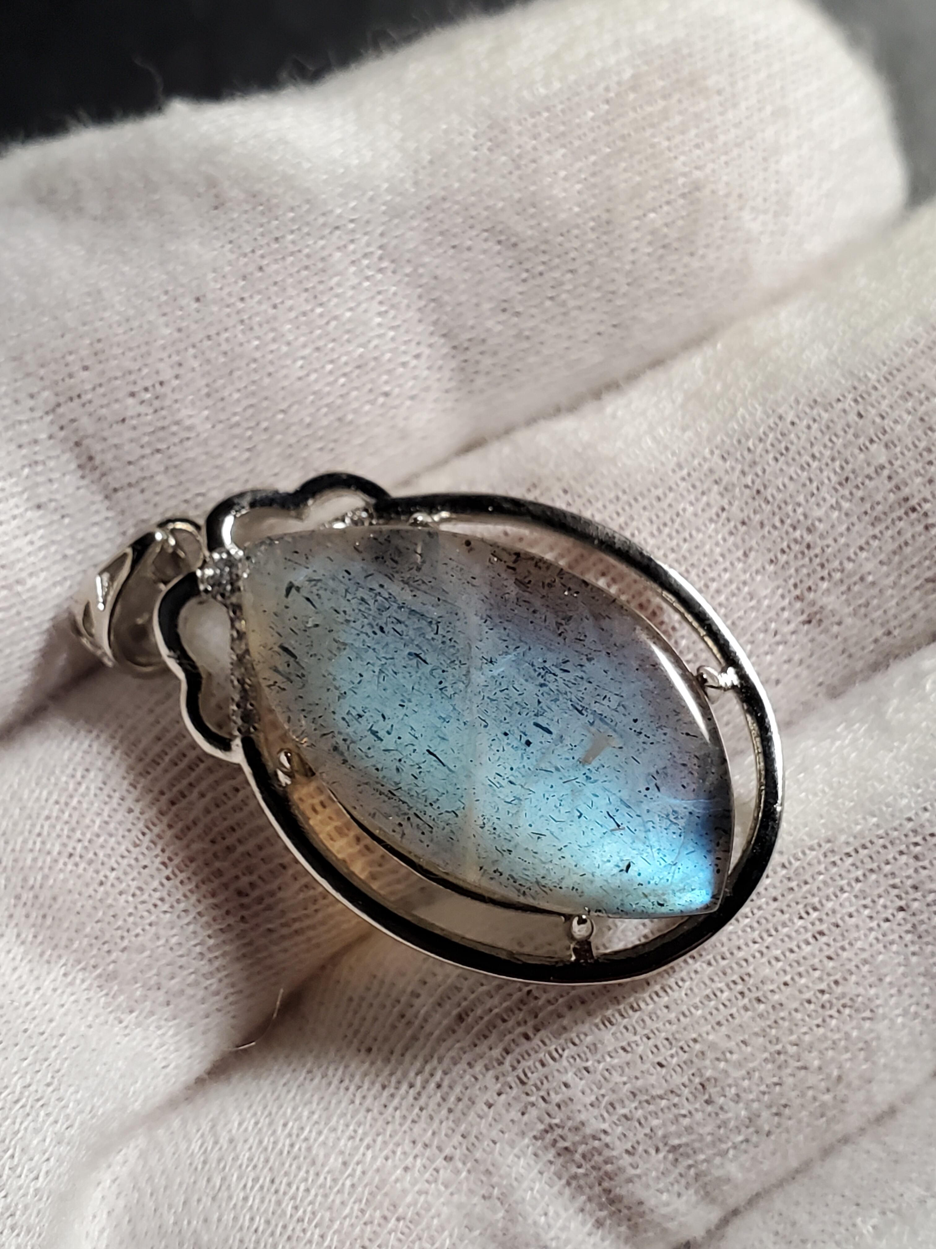 一見地味な色あいの石ですが、光の加減や見る角度によって、ブルー、グリーン、ゴールド、イエロー、ピンクなど、様々な色の輝きを見ることができます。まるで蝶の羽のような、美しく強い輝きこそがラブラドライトの魅力といえるでしょう。この独特の輝きは「ラブラドレッセンス(ラブラドルの光)」と呼ばれています。