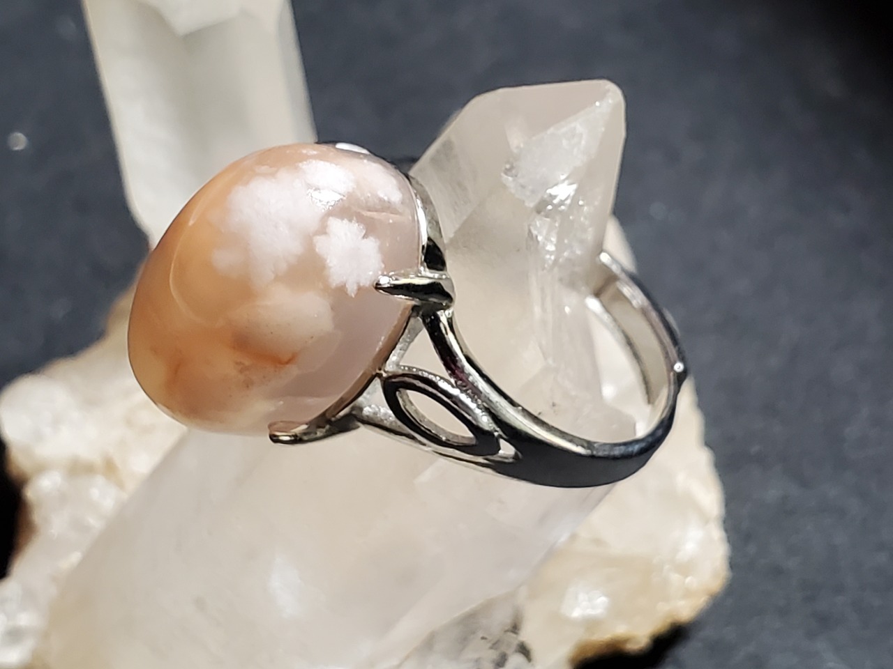 桜メノウは、淡い透明感のあるピンクのアゲードの中にまるで桜の花が咲いてるかのように見えるパワーストーンです。
